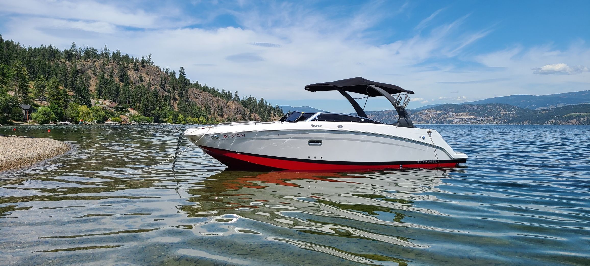 PLEASE CONTACT SHAYNE ELLIOT - KELOWNA YACHT SALES - 1-833-829-2248 EXT 3002 Powered with a MerCruiser 350 MAG MPI Bravo III drive with 680 Hours of run-time. The helm features Garmin GPS and fis