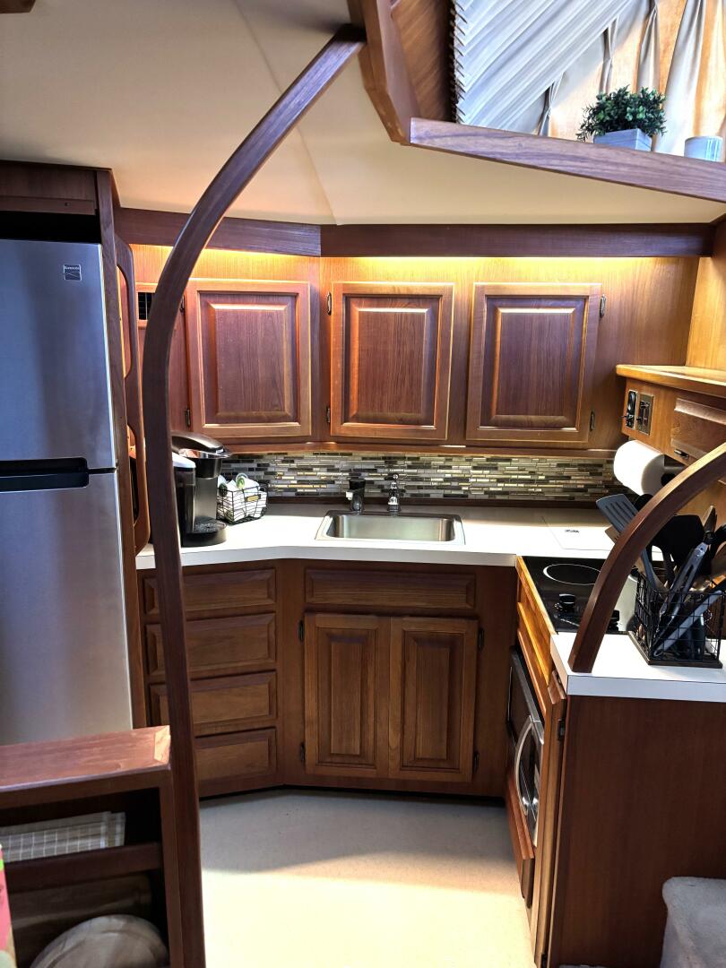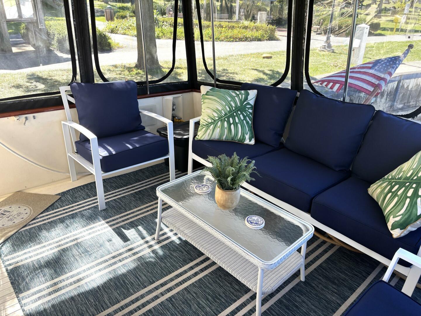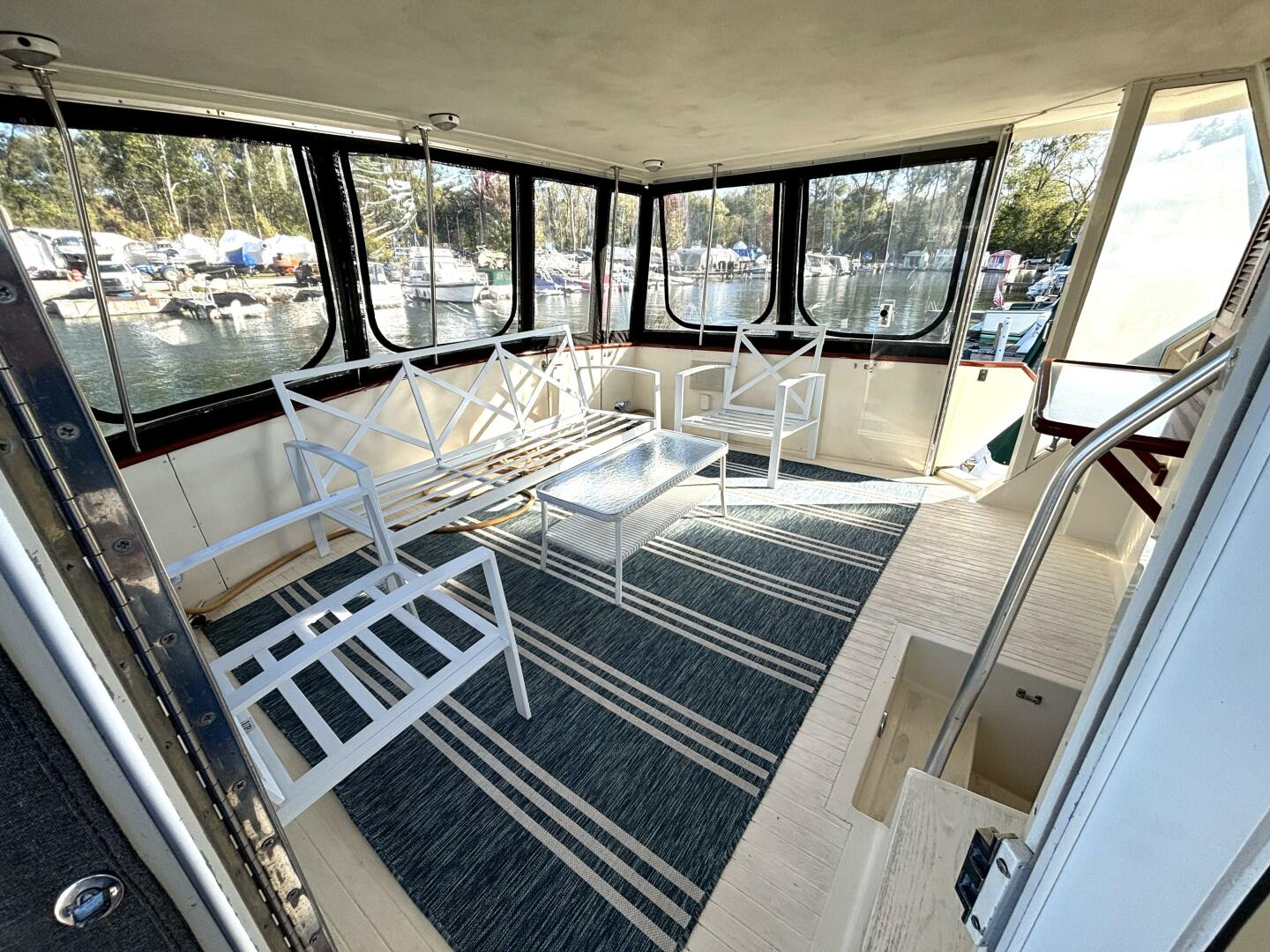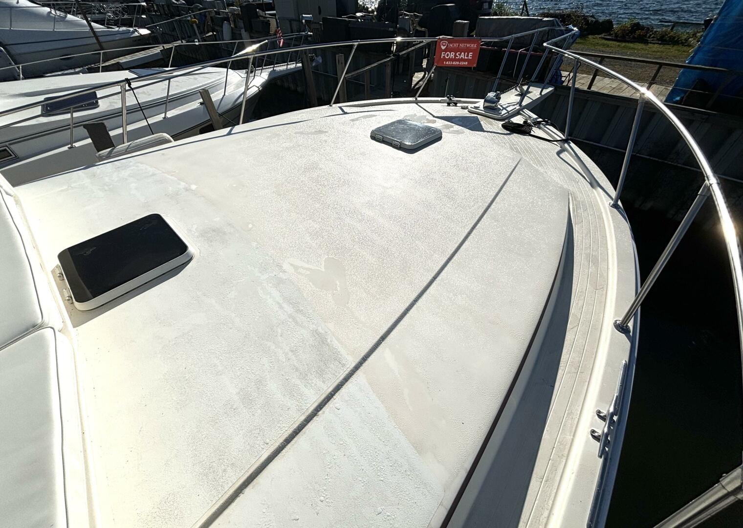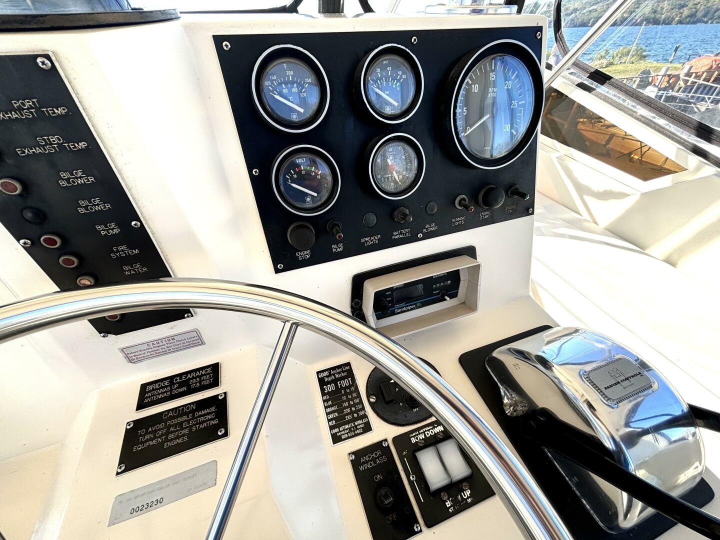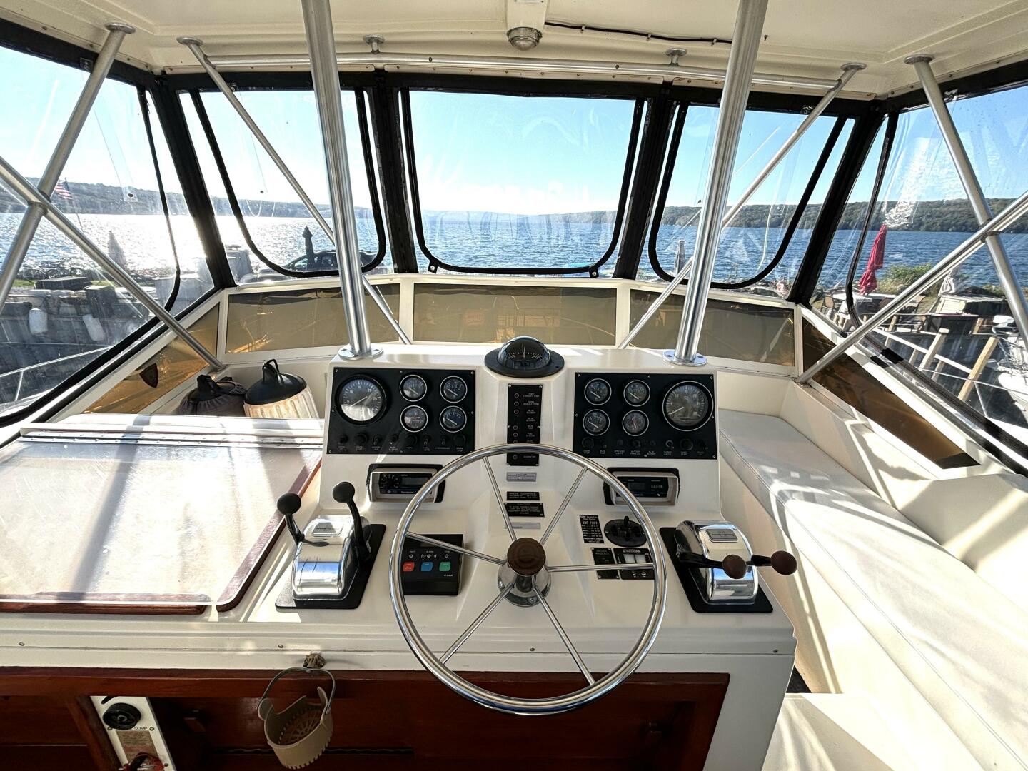 This gorgeous condition Viking 44 Motor Yacht is full of character, charm and openness, which is perfect to be utilized as a live aboard vessel, a looper boat, or simply a well appointed day cruiser! You will love the open concept and how much room there is aboard, all the way from the massive, fully covered and enclosed aft deck with all new canvas and Strataglass, to the giant salon and galley encompassing the full 15' beam of the vessel. With plenty of room for entertaining, there are also sleeping accommodations for up to 8! She is a double cabin setup, with the master stateroom consisting of queen size walk-around bed, full wall dresser with drawers, cabinet storage, full length hanging lockers and a master head with stall shower and electric toilet. The forward stateroom has upper and lower berths, also with a hanging locker, storage drawers and a dressing seat with quilted cushions. Additional sleeping arrangements can be made from the dinette that converts into another bed as well as the L-shaped lounge convertible sofa in the salon. The forward head provides all your guests with another stall shower and electric toilet for use. The galley is fully equipped with a refrigerator and freezer, sink, garbage disposal, microwave, a newly implemented ceramic cooktop with teak trim (2023), and plenty of cabinetry and counter space. Back outside, you will find the huge aft deck, complete with outdoor furniture, a beautifully refinished wooden dropdown bar, and access to the bow, bridge and helm. The bridge and helm are nicely laid out with two lounge seats with vinyl covered foam cushions, adjustable helm and companion seats, full lighted instrumentation, and easy access to your GPS, chartplotters, VHF, radio, etc. The entire bridge is also protected by a hardtop and fully enclosed by the upgraded canvas/isinglass. While this nearly 40 year old vessel is in amazing condition and pride of ownership certainly shows, there have been some recent upgrades and maintenance done as well to blend old build charm with modern day improvements. Recent improvements include but are not limited to new aft deck cushions (2025), new transmission cables (2025), all new canvas and Strataglass (2024), resurfaced top roof and pulpit (2024), new 4 speaker bluetooth stereo (2023), reinforced foredeck and Lewmar power windless, new freshwater pump and new hot water heater. All this is powered by twin Detroit Diesels (Model 6-71 TI) that are running strong and are known for their durability and reliability. Come check out this beauty today and experience the exquisite woodworking rarely found in boats anymore, the ability to move freely around both inside and out, and the pride of ownership of a Viking Motor Yacht that you will be hard pressed to find one nicer!