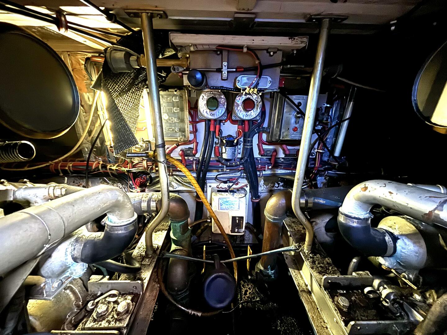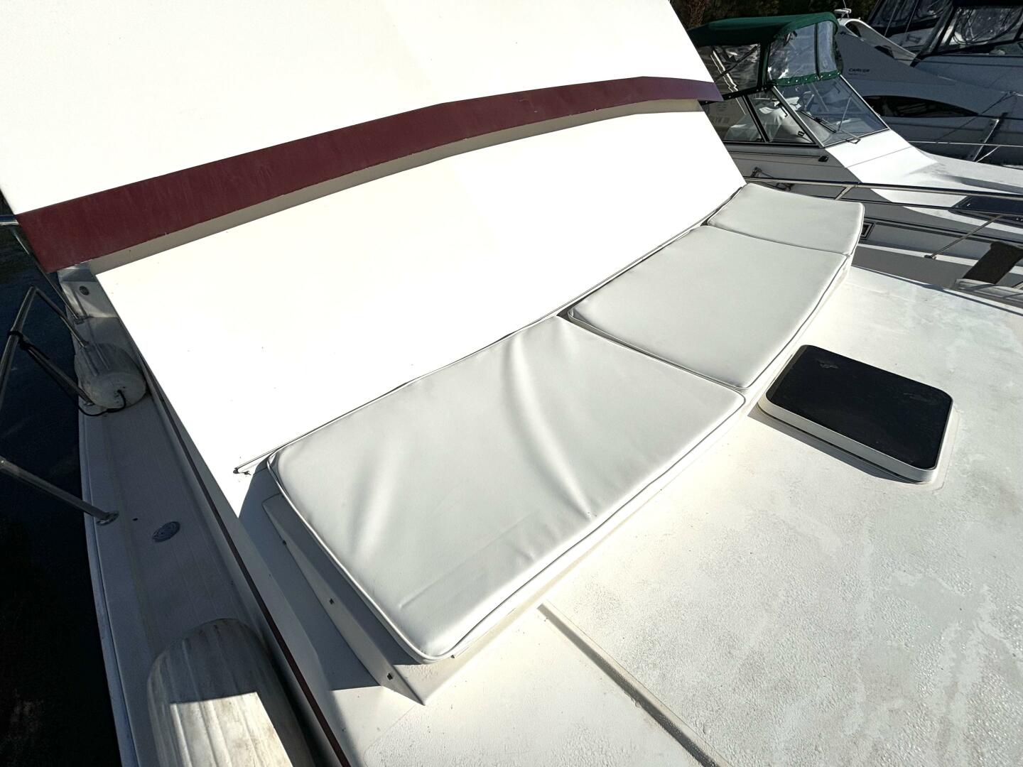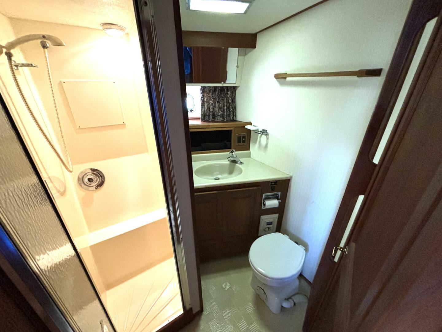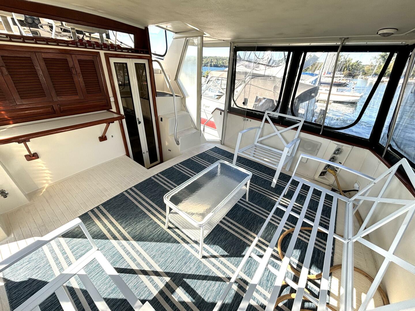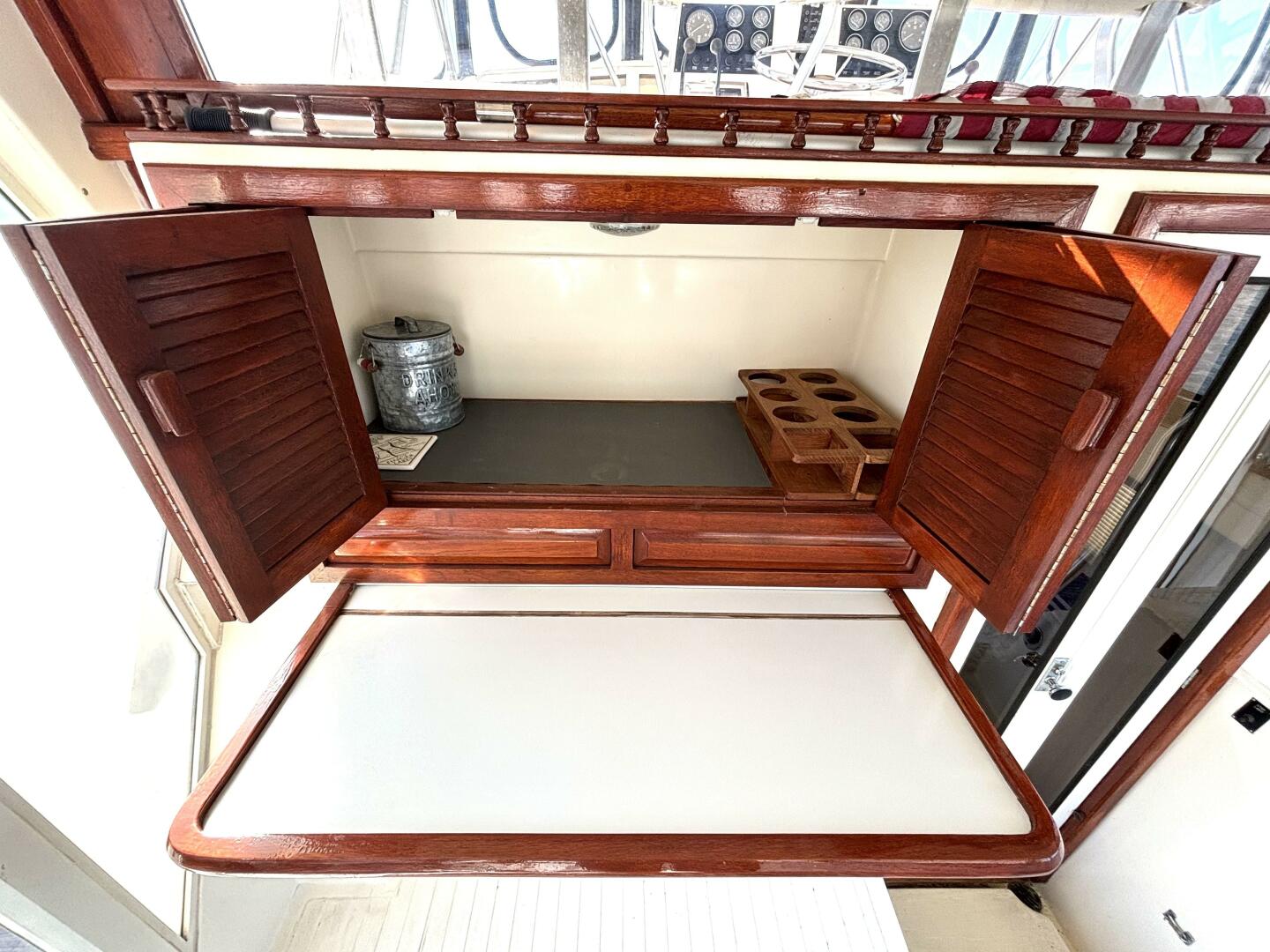 This gorgeous condition Viking 44 Motor Yacht is full of character, charm and openness, which is perfect to be utilized as a live aboard vessel, a looper boat, or simply a well appointed day cruiser! You will love the open concept and how much room there is aboard, all the way from the massive, fully covered and enclosed aft deck with all new canvas and Strataglass, to the giant salon and galley encompassing the full 15' beam of the vessel. With plenty of room for entertaining, there are also sleeping accommodations for up to 8! She is a double cabin setup, with the master stateroom consisting of queen size walk-around bed, full wall dresser with drawers, cabinet storage, full length hanging lockers and a master head with stall shower and electric toilet. The forward stateroom has upper and lower berths, also with a hanging locker, storage drawers and a dressing seat with quilted cushions. Additional sleeping arrangements can be made from the dinette that converts into another bed as well as the L-shaped lounge convertible sofa in the salon. The forward head provides all your guests with another stall shower and electric toilet for use. The galley is fully equipped with a refrigerator and freezer, sink, garbage disposal, microwave, a newly implemented ceramic cooktop with teak trim (2023), and plenty of cabinetry and counter space. Back outside, you will find the huge aft deck, complete with outdoor furniture, a beautifully refinished wooden dropdown bar, and access to the bow, bridge and helm. The bridge and helm are nicely laid out with two lounge seats with vinyl covered foam cushions, adjustable helm and companion seats, full lighted instrumentation, and easy access to your GPS, chartplotters, VHF, radio, etc. The entire bridge is also protected by a hardtop and fully enclosed by the upgraded canvas/isinglass. While this nearly 40 year old vessel is in amazing condition and pride of ownership certainly shows, there have been some recent upgrades and maintenance done as well to blend old build charm with modern day improvements. Recent improvements include but are not limited to new aft deck cushions (2025), new transmission cables (2025), all new canvas and Strataglass (2024), resurfaced top roof and pulpit (2024), new 4 speaker bluetooth stereo (2023), reinforced foredeck and Lewmar power windless, new freshwater pump and new hot water heater. All this is powered by twin Detroit Diesels (Model 6-71 TI) that are running strong and are known for their durability and reliability. Come check out this beauty today and experience the exquisite woodworking rarely found in boats anymore, the ability to move freely around both inside and out, and the pride of ownership of a Viking Motor Yacht that you will be hard pressed to find one nicer!