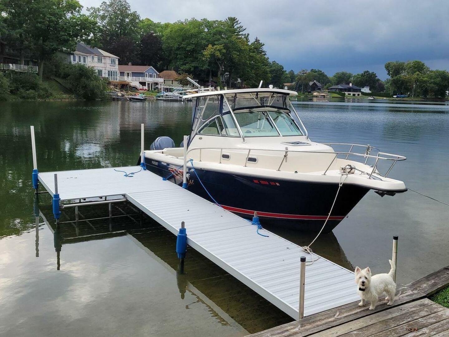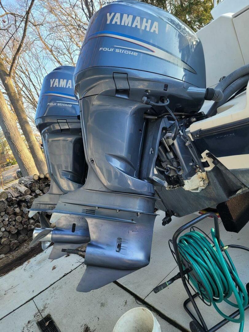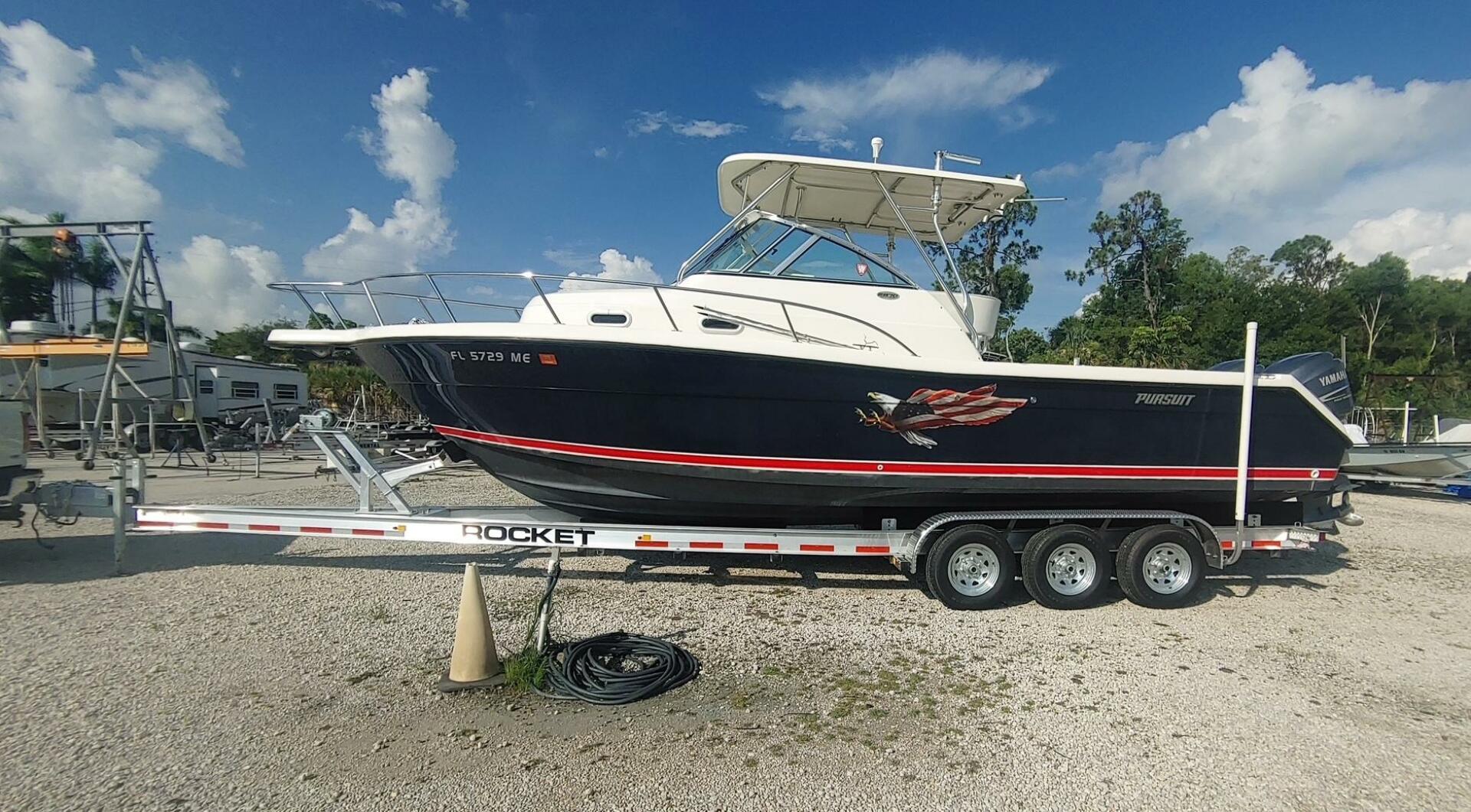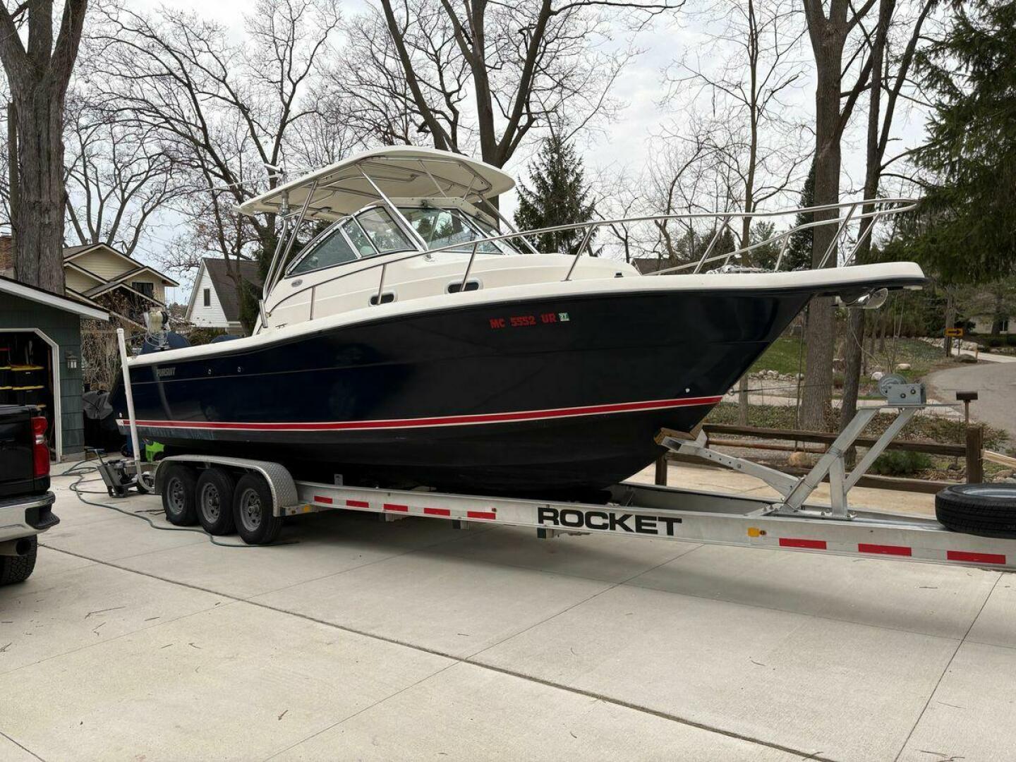 Beautiful, freshwater Pursuit 2870 ready to take you out on the big water for a day of fishing or cruising! Well equipped with 13 rod holders and two 15' Rupp Outriggers. Loaded with additional conveniences such as a removable bait cutting table, circulating live well, as well as two separated insulated fish boxes. Stay overnight easily with a comfortable V-berth, full head, refrigerator, sink and microwave (new in the box). This Pursuit has been extremely well cared and yes, EVERYTHING works as it should! Recent maintenance to the twin Yamaha 225 four stroke engines includes new thermostats, propellers, cooling pumps, lower unit on starboard engine, and trim seals. The Pursuit brand has an outstanding reputation for ride quality and overall construction and these cost thousands more new. If you are looking to step up to a well-built walkaround that you can be proud to own, this is the one! With the purchase of this boat includes a full Isinglass enclosure, Glomate gas stove (never used and new in the box) as well as a tri-axle Rocket trailer (2021). Seller is motivated! Bring offers! Price includes delivery from MI!
