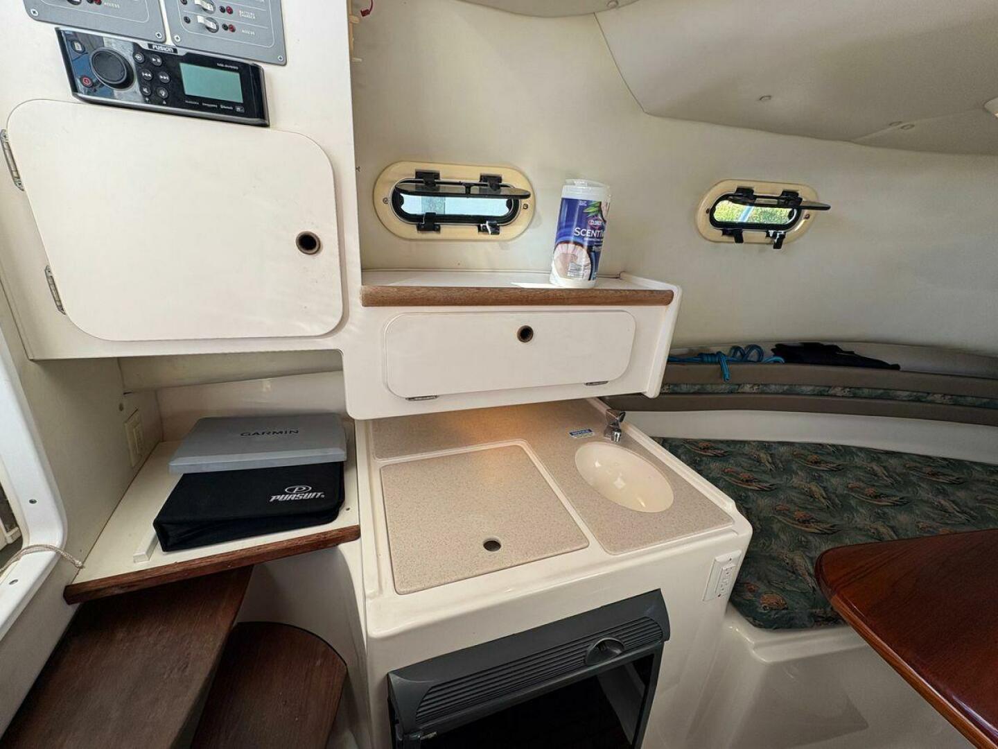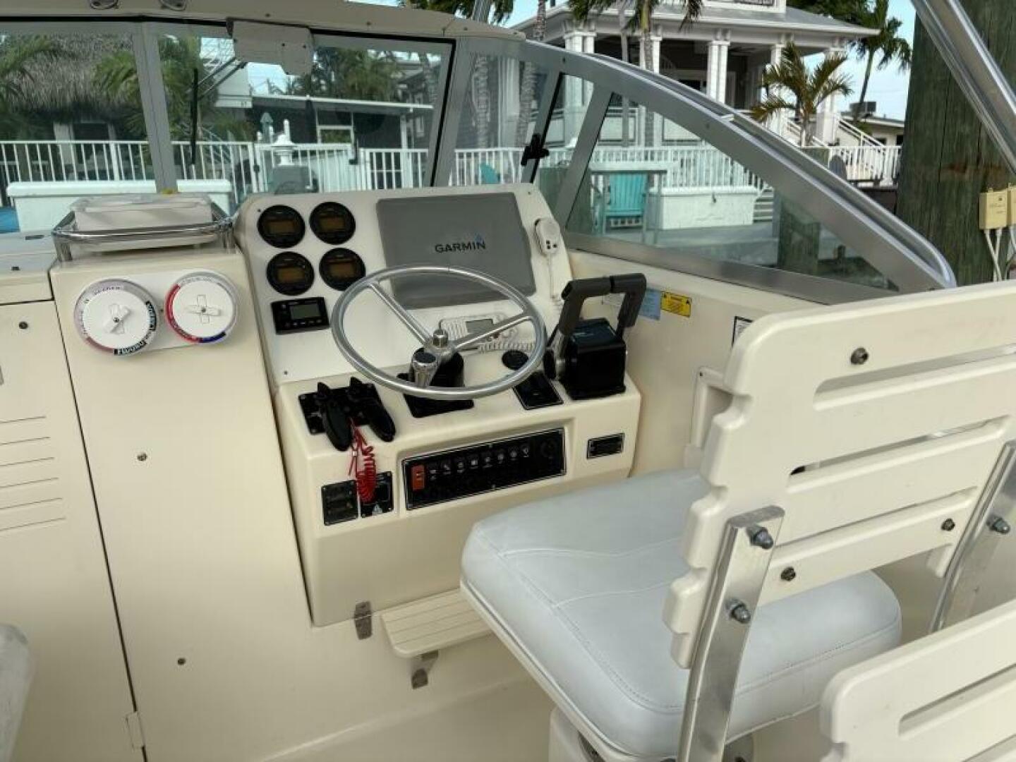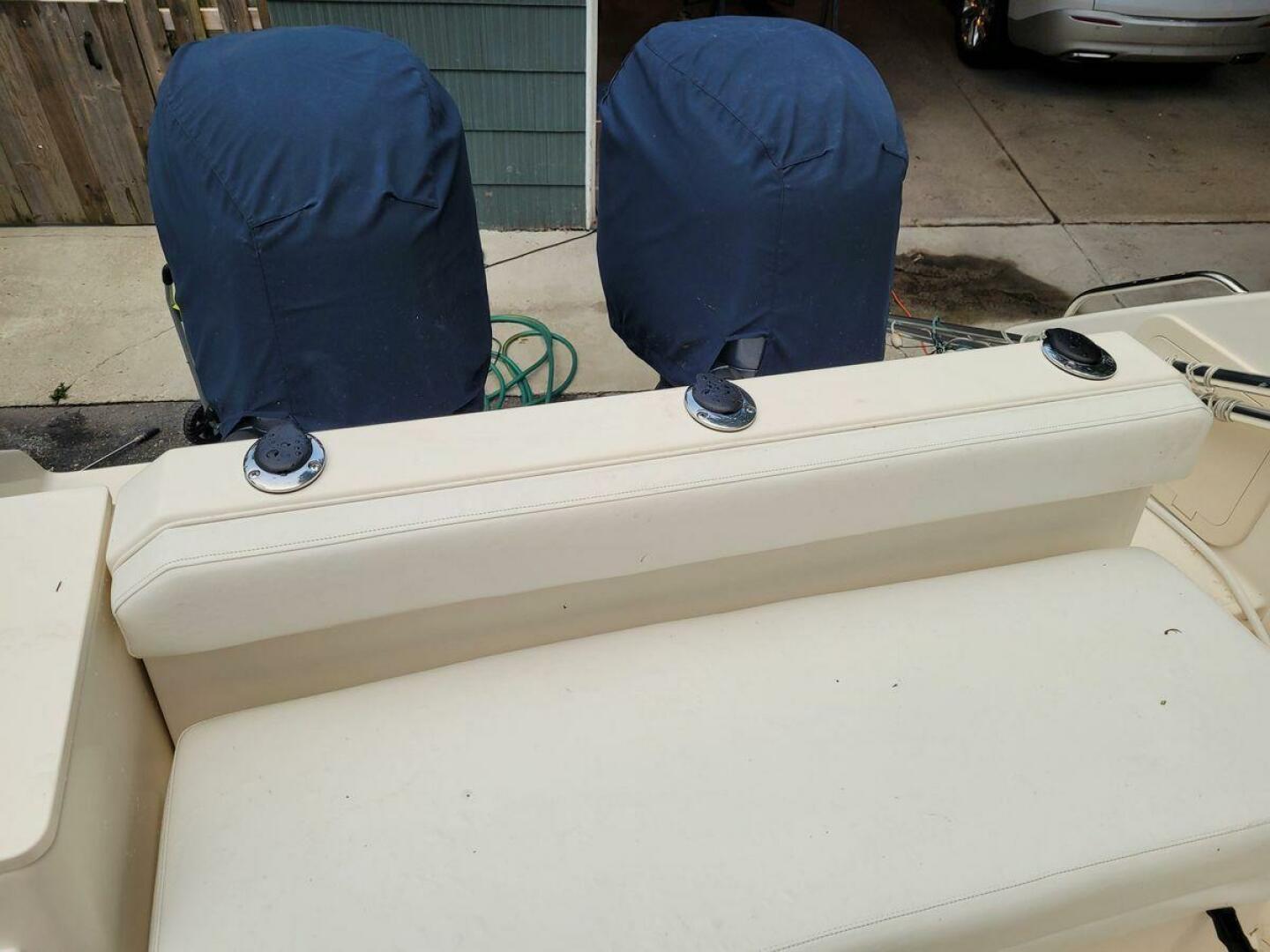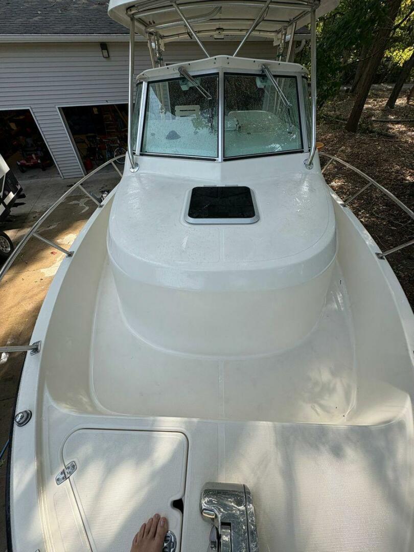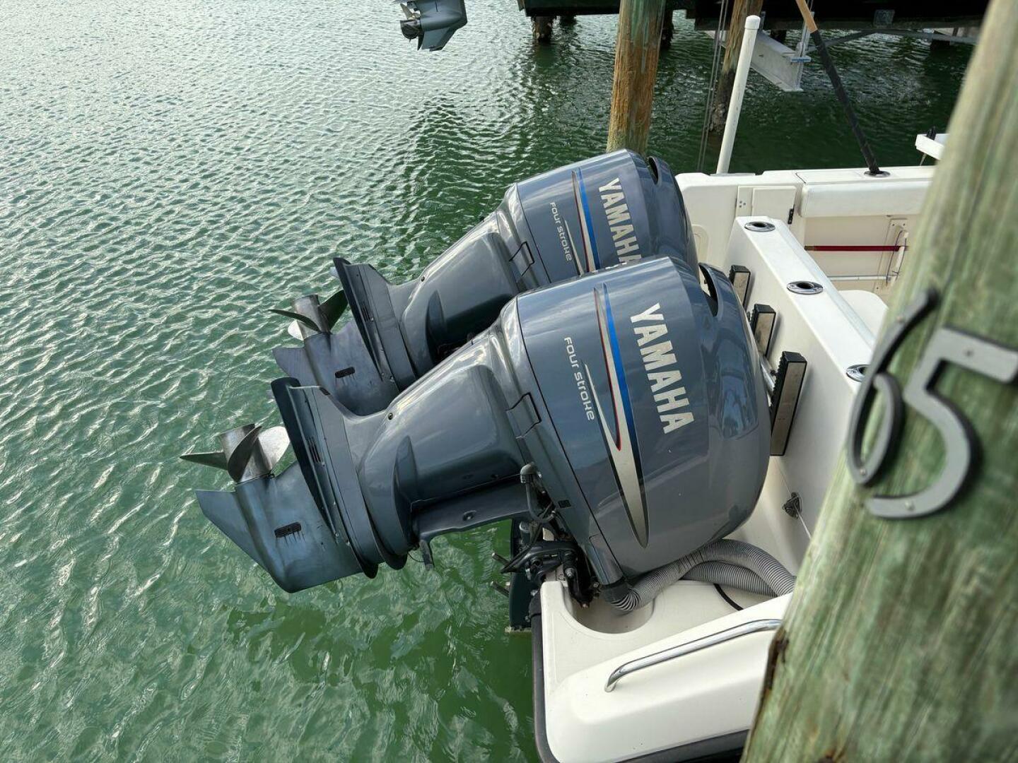 Beautiful, freshwater Pursuit 2870 ready to take you out on the big water for a day of fishing or cruising! Well equipped with 13 rod holders and two 15' Rupp Outriggers. Loaded with additional conveniences such as a removable bait cutting table, circulating live well, as well as two separated insulated fish boxes. Stay overnight easily with a comfortable V-berth, full head, refrigerator, sink and microwave (new in the box). This Pursuit has been extremely well cared and yes, EVERYTHING works as it should! Recent maintenance to the twin Yamaha 225 four stroke engines includes new thermostats, propellers, cooling pumps, lower unit on starboard engine, and trim seals. The Pursuit brand has an outstanding reputation for ride quality and overall construction and these cost thousands more new. If you are looking to step up to a well-built walkaround that you can be proud to own, this is the one! With the purchase of this boat includes a full Isinglass enclosure, Glomate gas stove (never used and new in the box) as well as a tri-axle Rocket trailer (2021). Seller is motivated! Bring offers! Price includes delivery from MI!