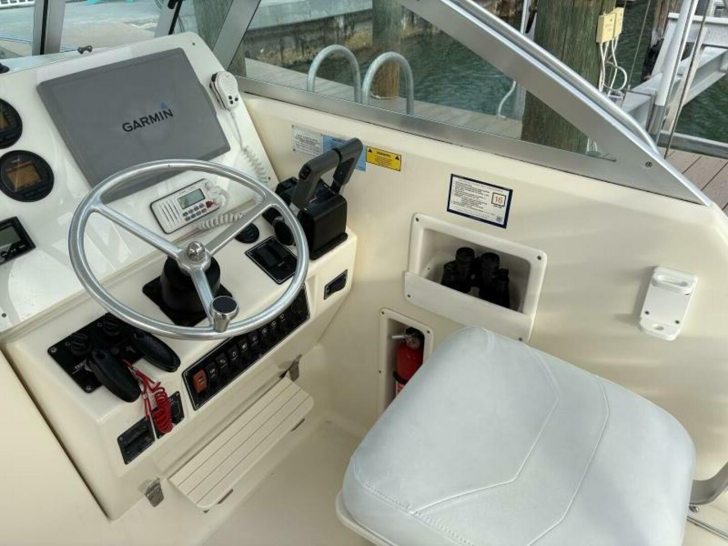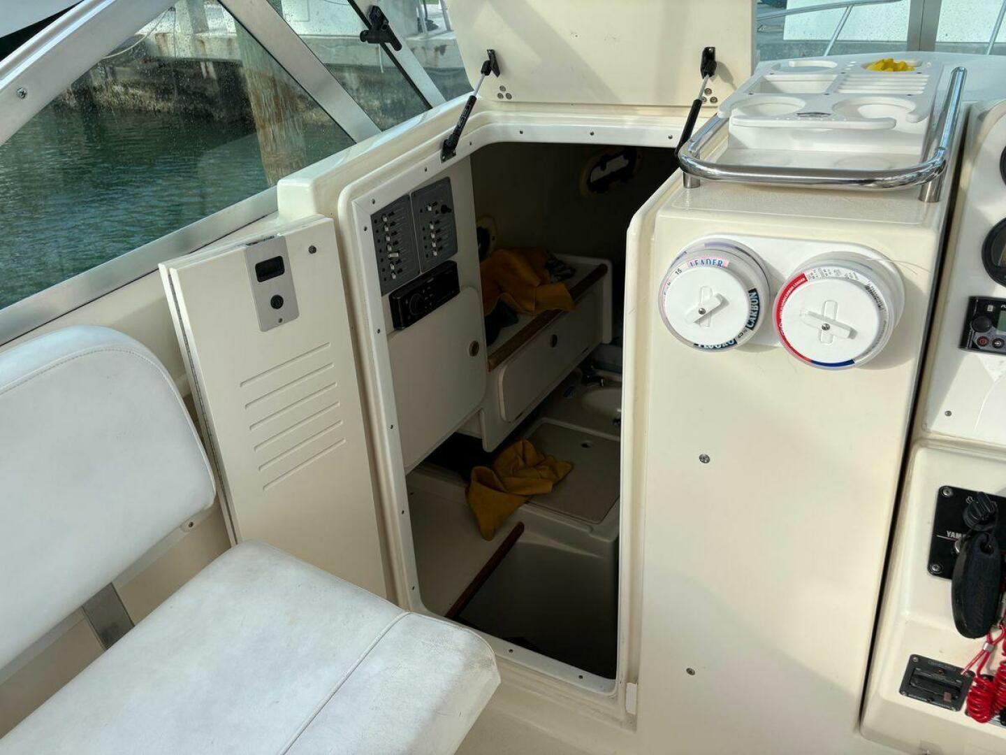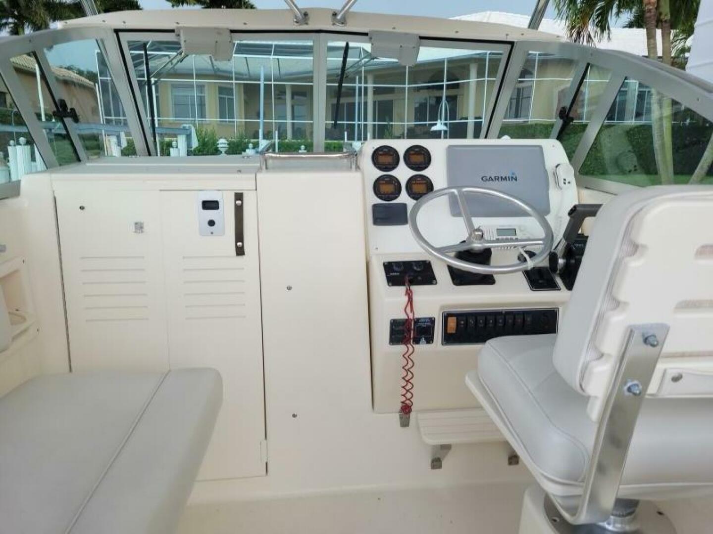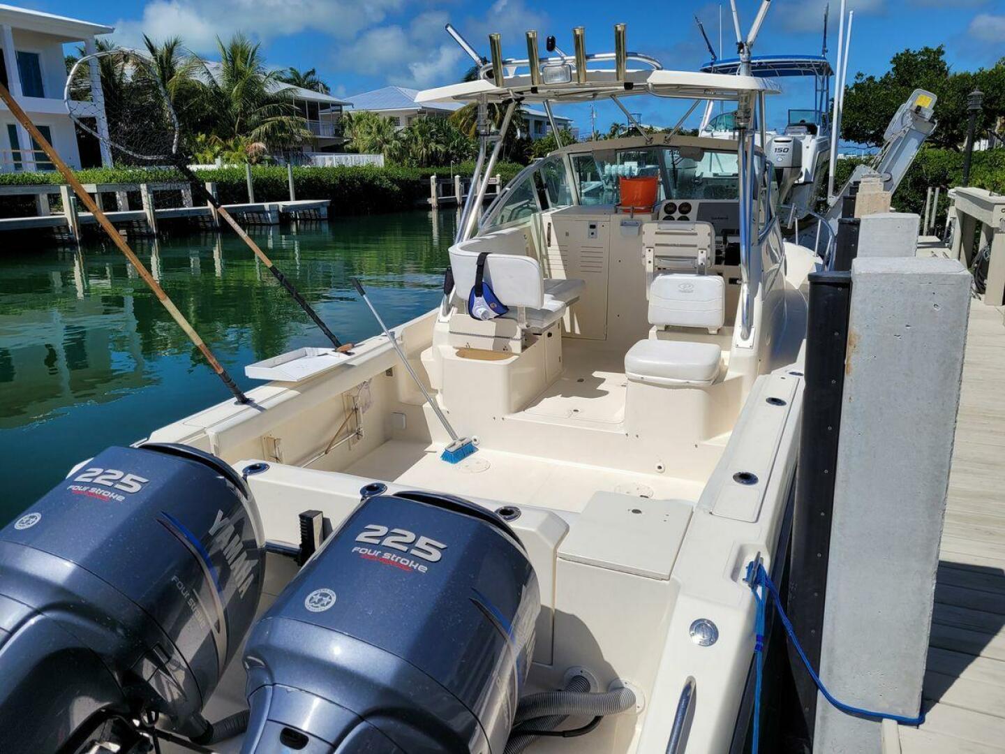 Beautiful, freshwater Pursuit 2870 ready to take you out on the big water for a day of fishing or cruising! Well equipped with 13 rod holders and two 15' Rupp Outriggers. Loaded with additional conveniences such as a removable bait cutting table, circulating live well, as well as two separated insulated fish boxes. Stay overnight easily with a comfortable V-berth, full head, refrigerator, sink and microwave (new in the box). This Pursuit has been extremely well cared and yes, EVERYTHING works as it should! Recent maintenance to the twin Yamaha 225 four stroke engines includes new thermostats, propellers, cooling pumps, lower unit on starboard engine, and trim seals. The Pursuit brand has an outstanding reputation for ride quality and overall construction and these cost thousands more new. If you are looking to step up to a well-built walkaround that you can be proud to own, this is the one! With the purchase of this boat includes a full Isinglass enclosure, Glomate gas stove (never used and new in the box) as well as a tri-axle Rocket trailer (2021). Seller is motivated! Bring offers! Price includes delivery from MI!