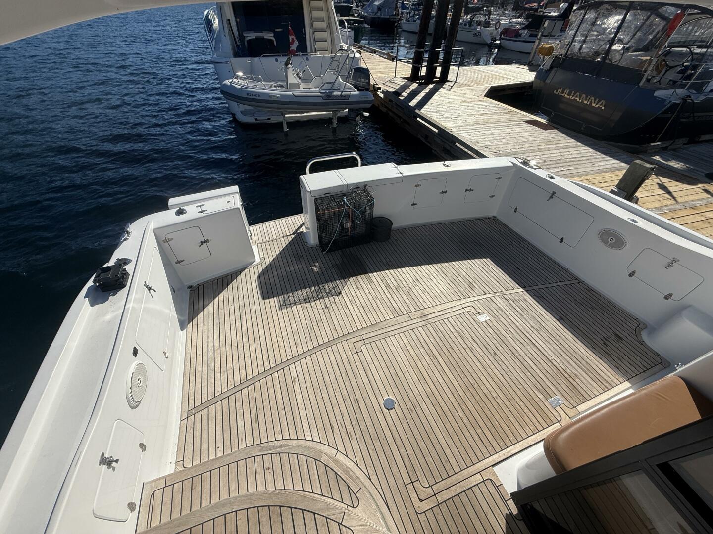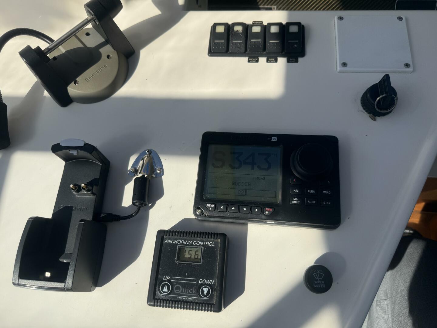 Topside, the extended teak cockpit is a standout feature—expansive, well-appointed, and perfect for entertaining or serious cruising. A Steelhead Marine SM800R davit system handles the AB 12AL inflatable tender with a 2017 Yamaha F25LWHC 25 horsepower outboard. The Maxwell windlass paired with a Rocna 40 anchor provides dependable ground tackle, while wide walkarounds and a large swim platform enhance safety and usability.