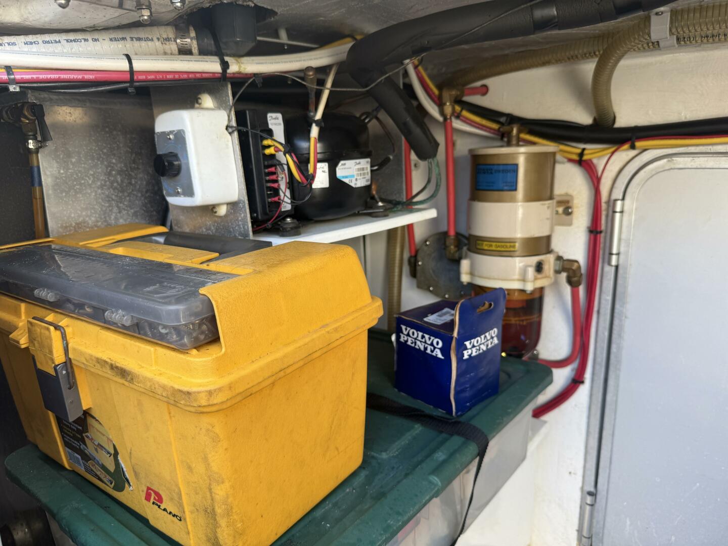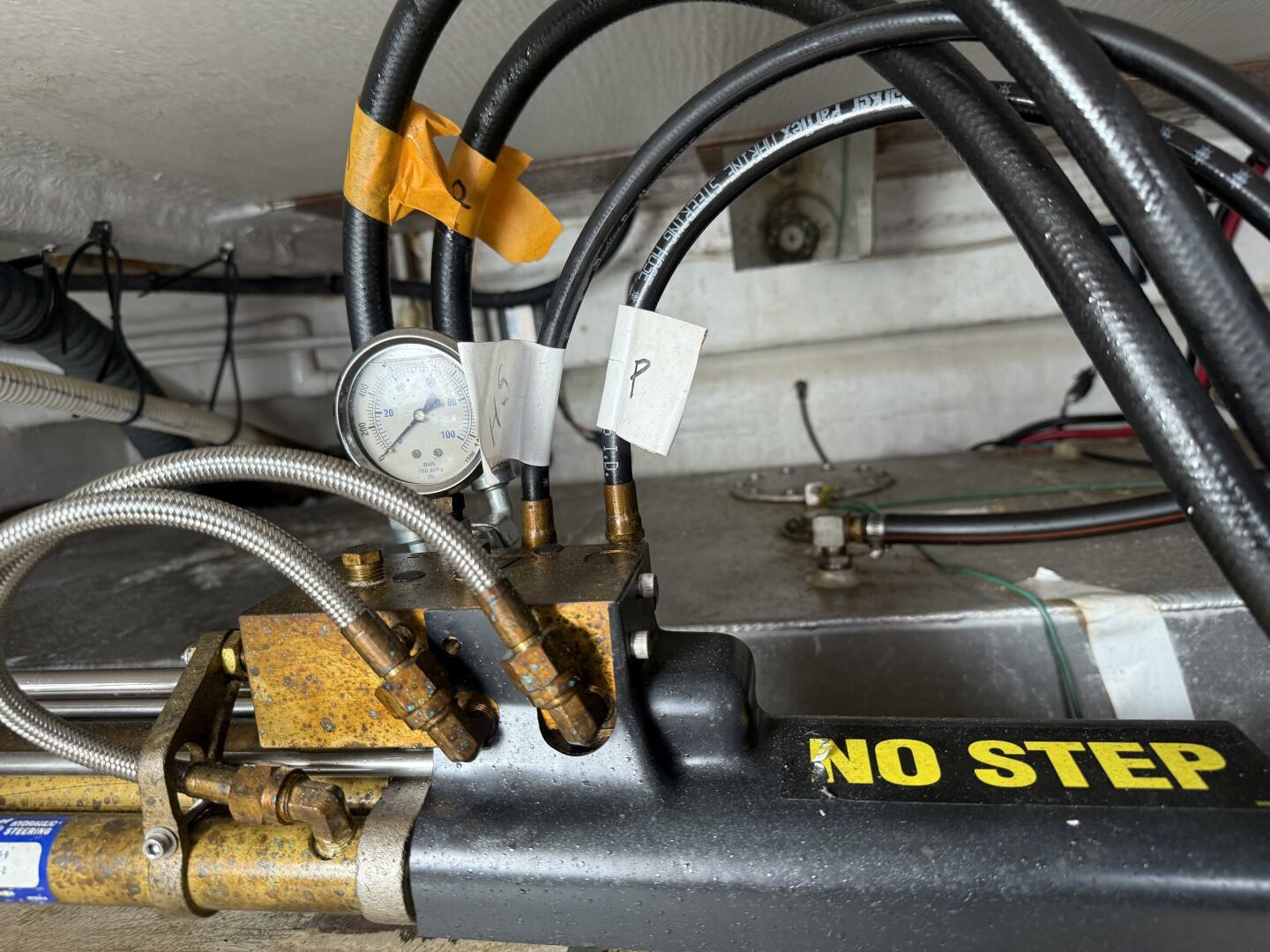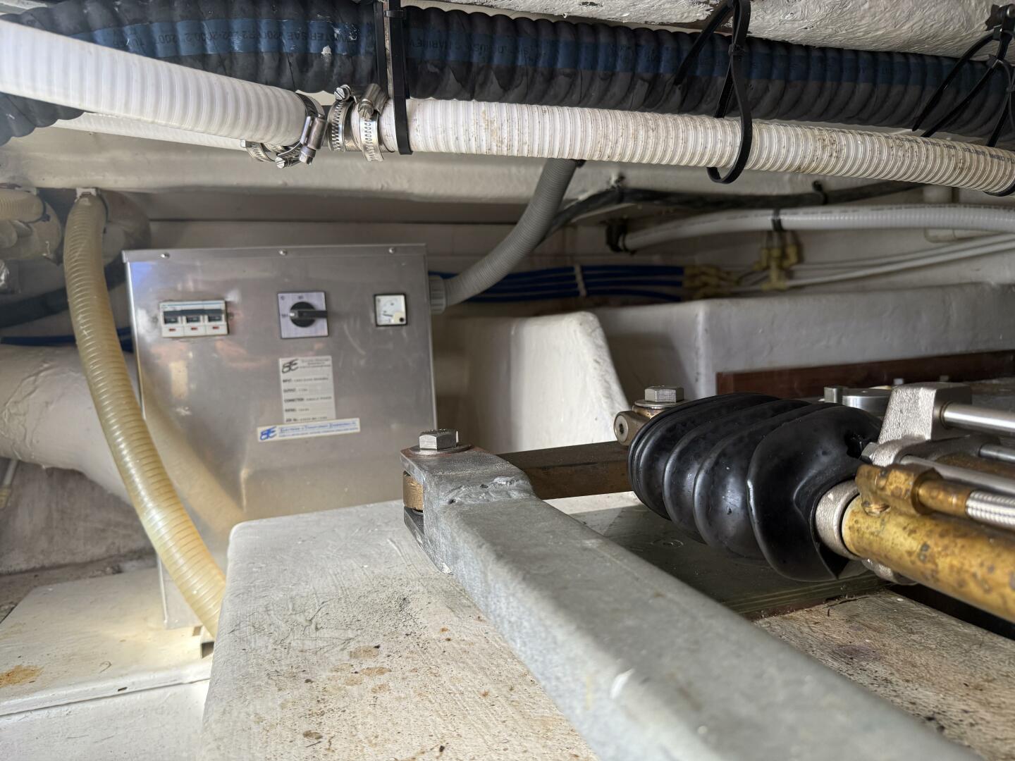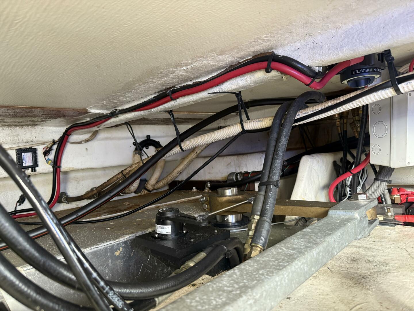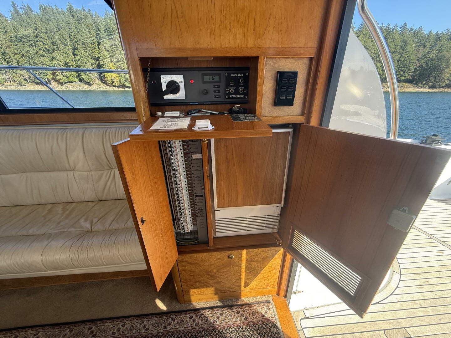 Power comes from twin Volvo Penta TAMD74EDC diesels rated at 480 horsepower each, mated to Twin Disc MG5075A marine transmissions. These electronically controlled, fly-by-wire engines deliver smooth acceleration, excellent maneuverability, and cruising efficiency in the 20 to 22 knot range. The SeaStar hydraulic steering, SidePower bow and stern thrusters, and Westerbeke 12.5 BTDA generator round out a thoroughly capable mechanical system designed for reliability.