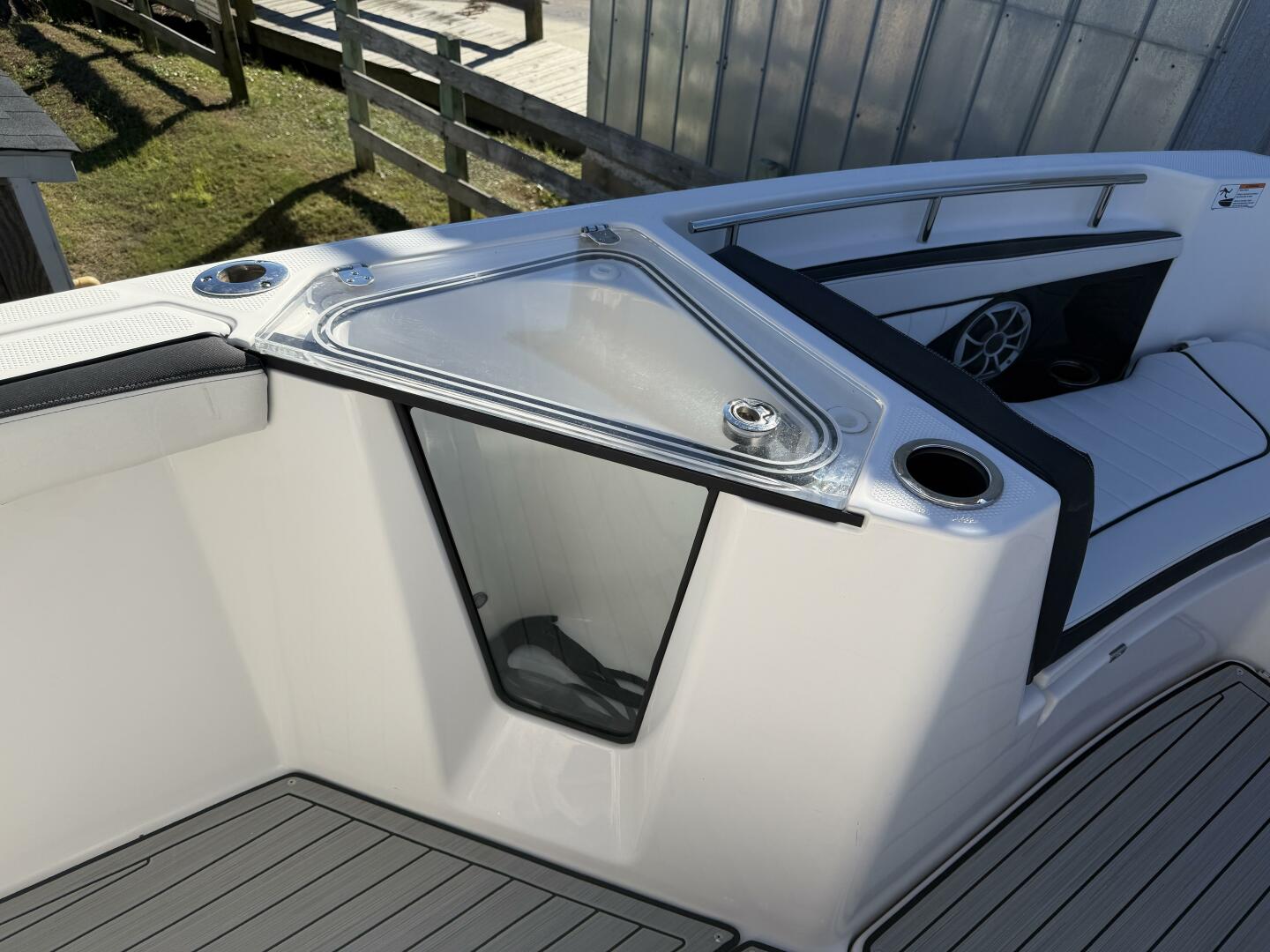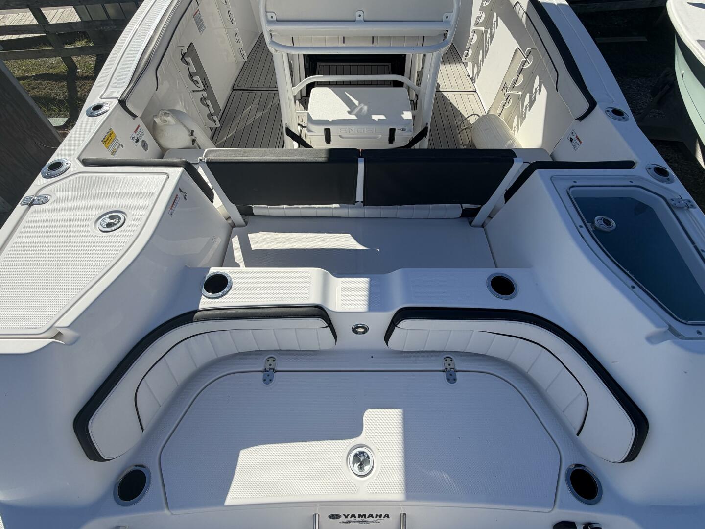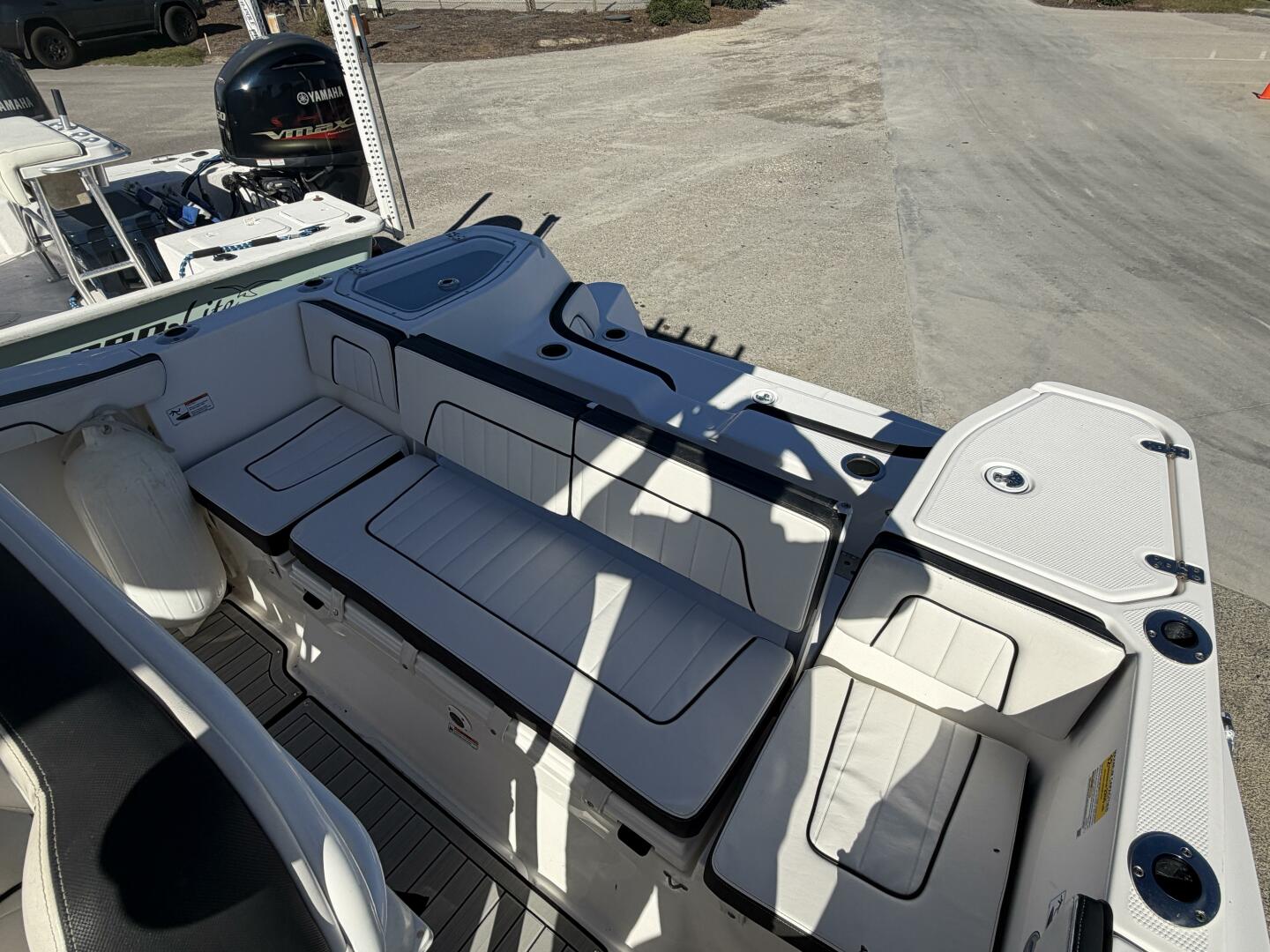 Regular maintenance and attentive care mean the electronics (including a 12″ Simrad display and 7″ Connext touchscreen), fiberglass hard‑top with LED lighting and integrated speakers, and the fishing‑ready layout (insulated fish box, transparent livewell, storage pods) are all in great shape, making this boat a turnkey opportunity for your next adventure.