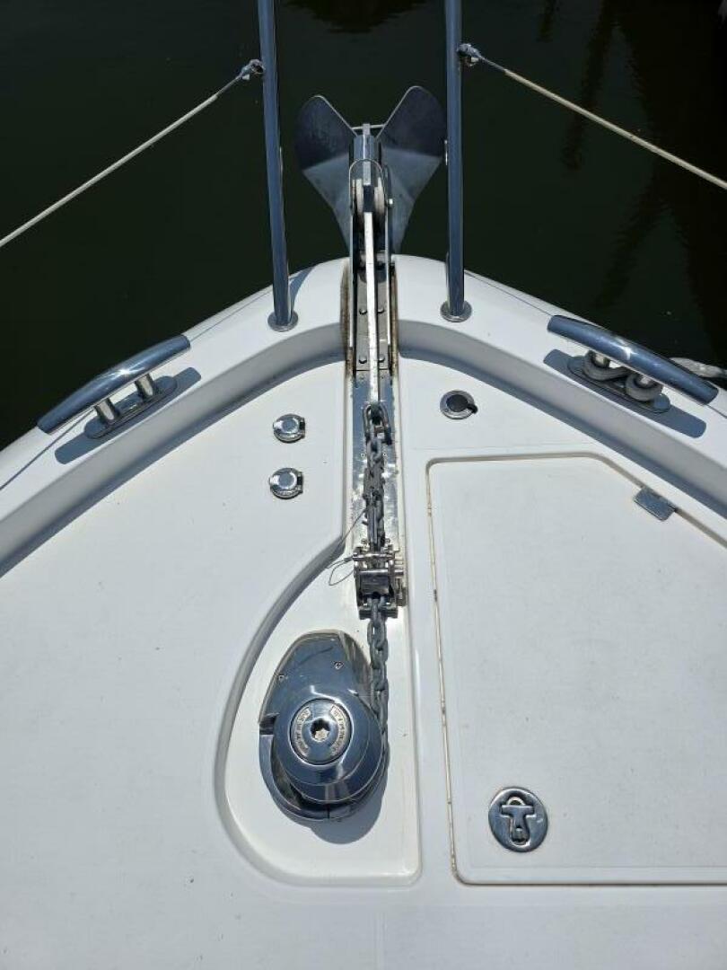 - Signal mast with radar scanner, GPS antennas, masthead and anchor lights, stern navigation light and horn