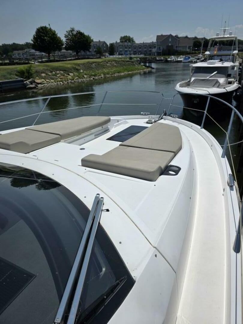 - Sun pad/lounge with cushions and cover recessed into cabin trunk on the foredeck