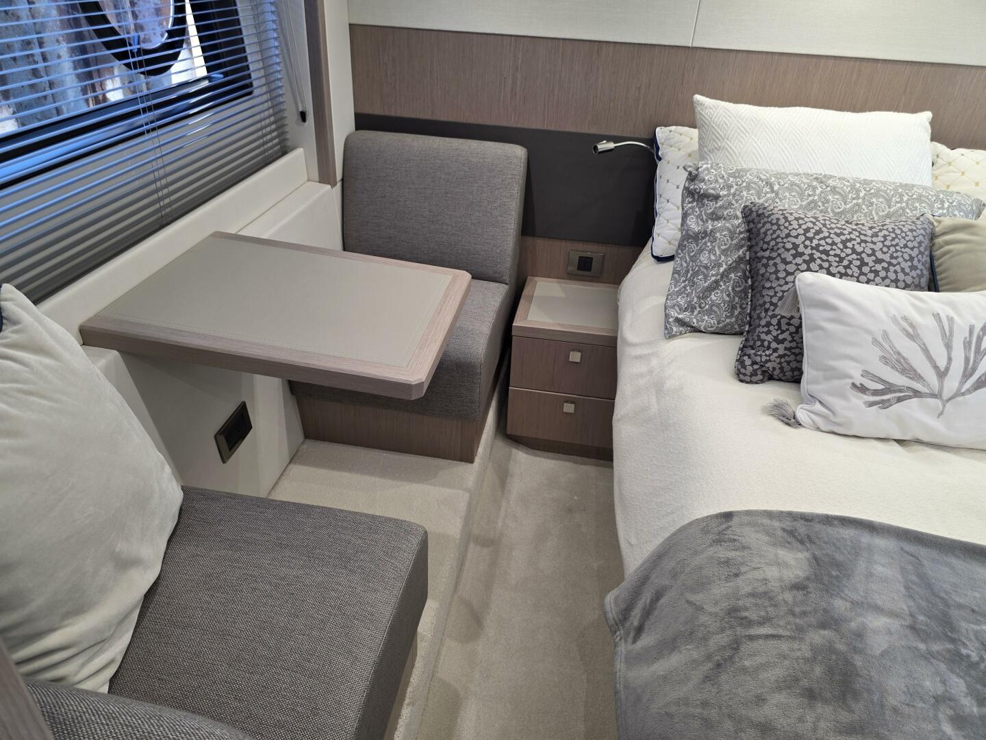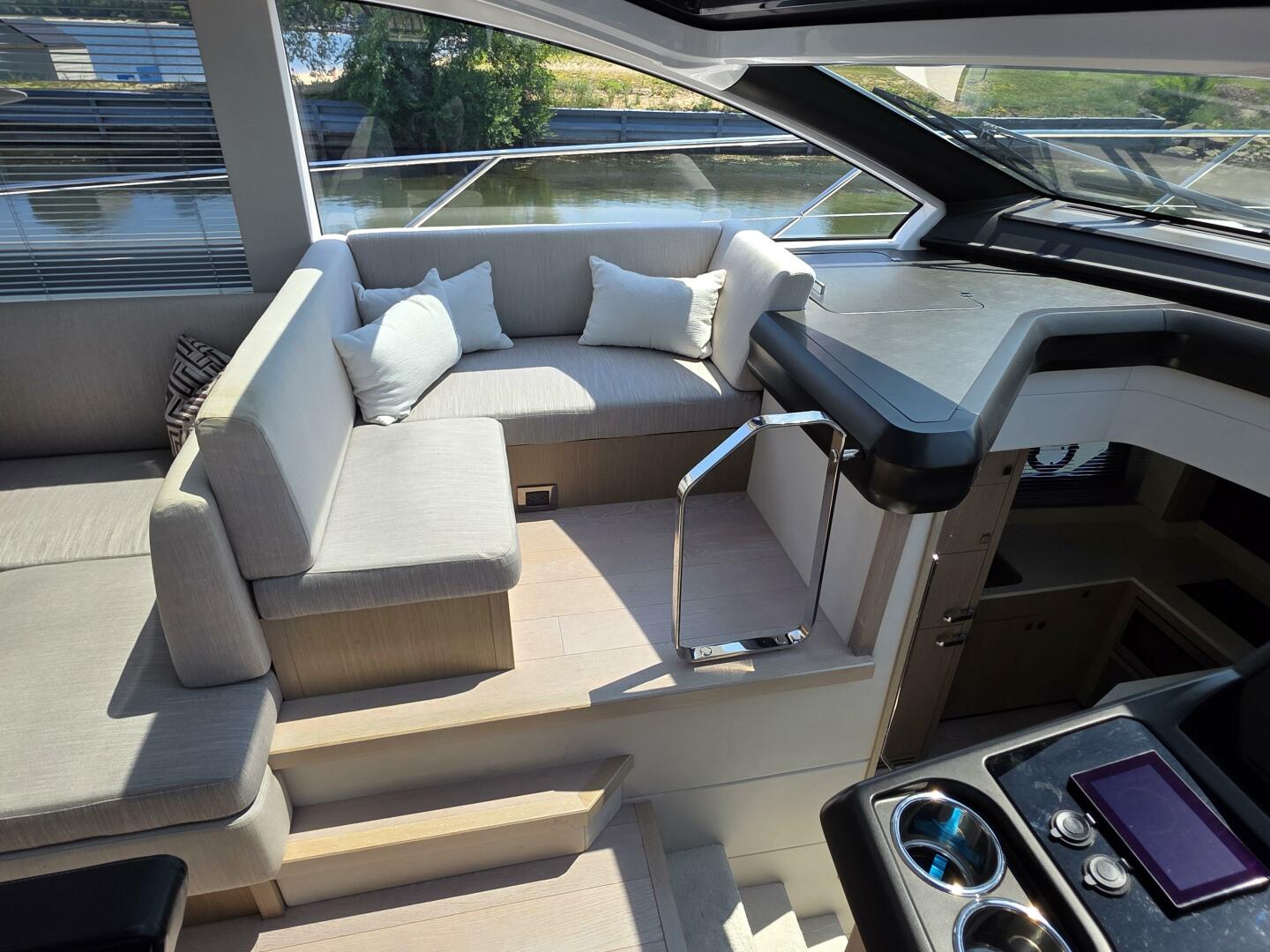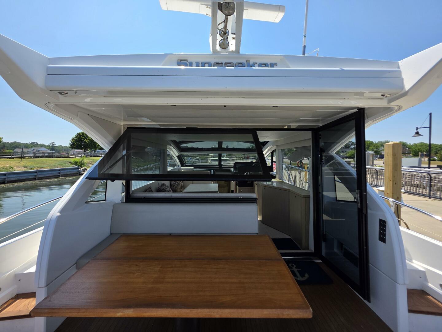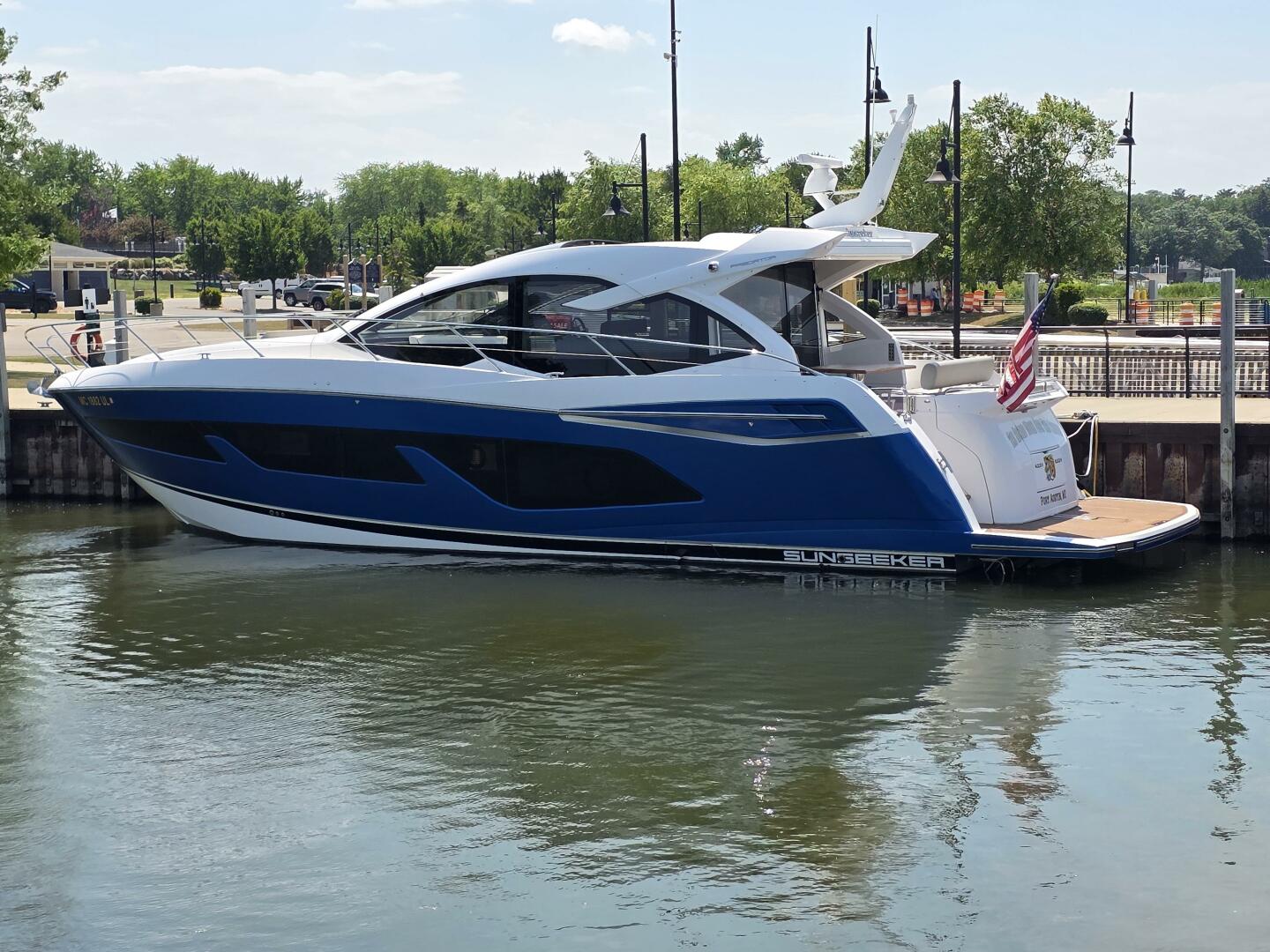 Step aboard the 2019 Sunseeker Predator 50, a luxury performance yacht for sale in Port Austin MI. The options for fun and entertainment are endless, the spacious cockpit features plush seating and a dining area under a retractable sunroof, ideal for open air cruising. Inside, the main salon impresses with elegant finishes, a fully equipped galley, and expansive windows that offer panoramic views and warm light. Below deck, the yacht offers two luxurious staterooms, including a master suite with and en-suite bathroom. There is also a convertible dinette that provides additional sleeping accommodations should the need arise. The hydraulic swim platform at the stern is perfect for easy water access and tender launching. There is also a grill built into the stern garage to so that you can stay close to the action while you grill. This fresh water beauty has been lightly used (360 hrs.) and meticulously maintained. Whether you're cruising the coast or embarking on an offshore adventure, this yacht is designed to provide and exceptional experience. The Predator 50 is not just a yacht; it’s an invitation to create unforgettable memories on the water. If you're seeking a vessel that combines style with exceptional performance, look no further than this 2019 Sunseeker Predator 50.