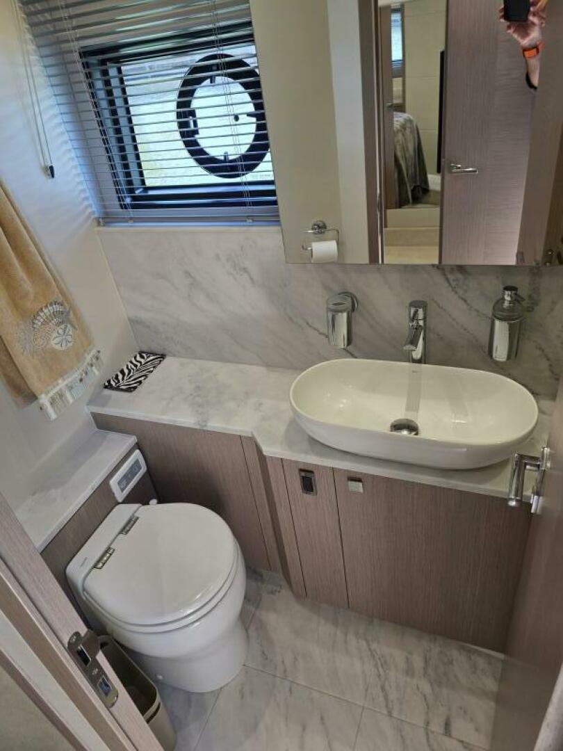- Hand-held shower with hot and cold faucet, dockside water inlet, deck washdown, phone/TV inlet