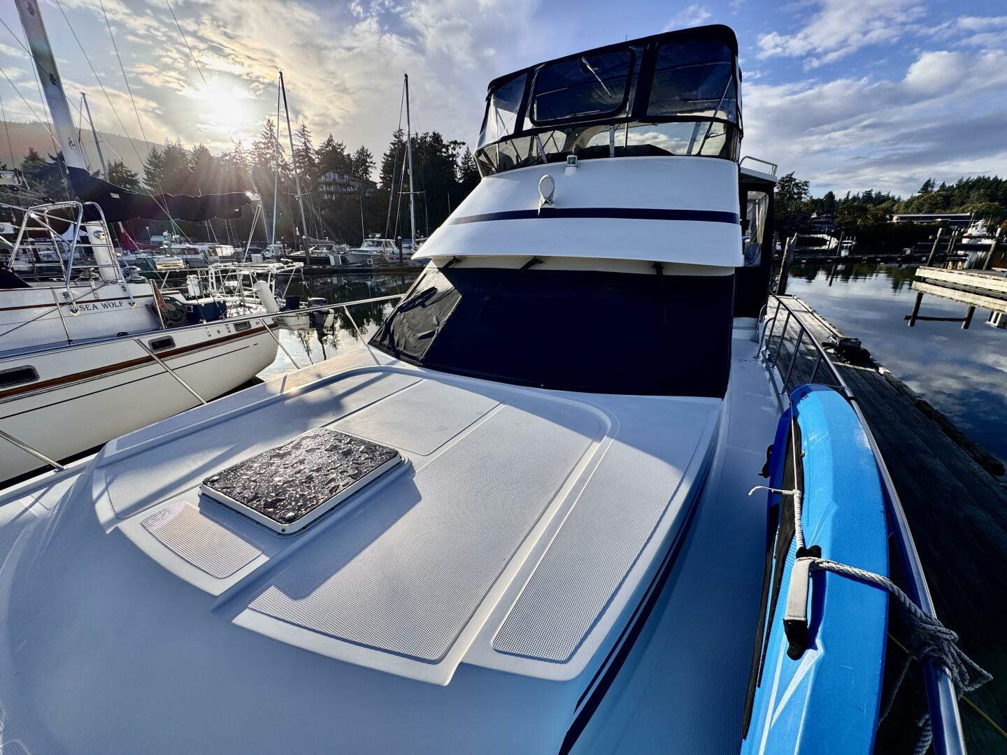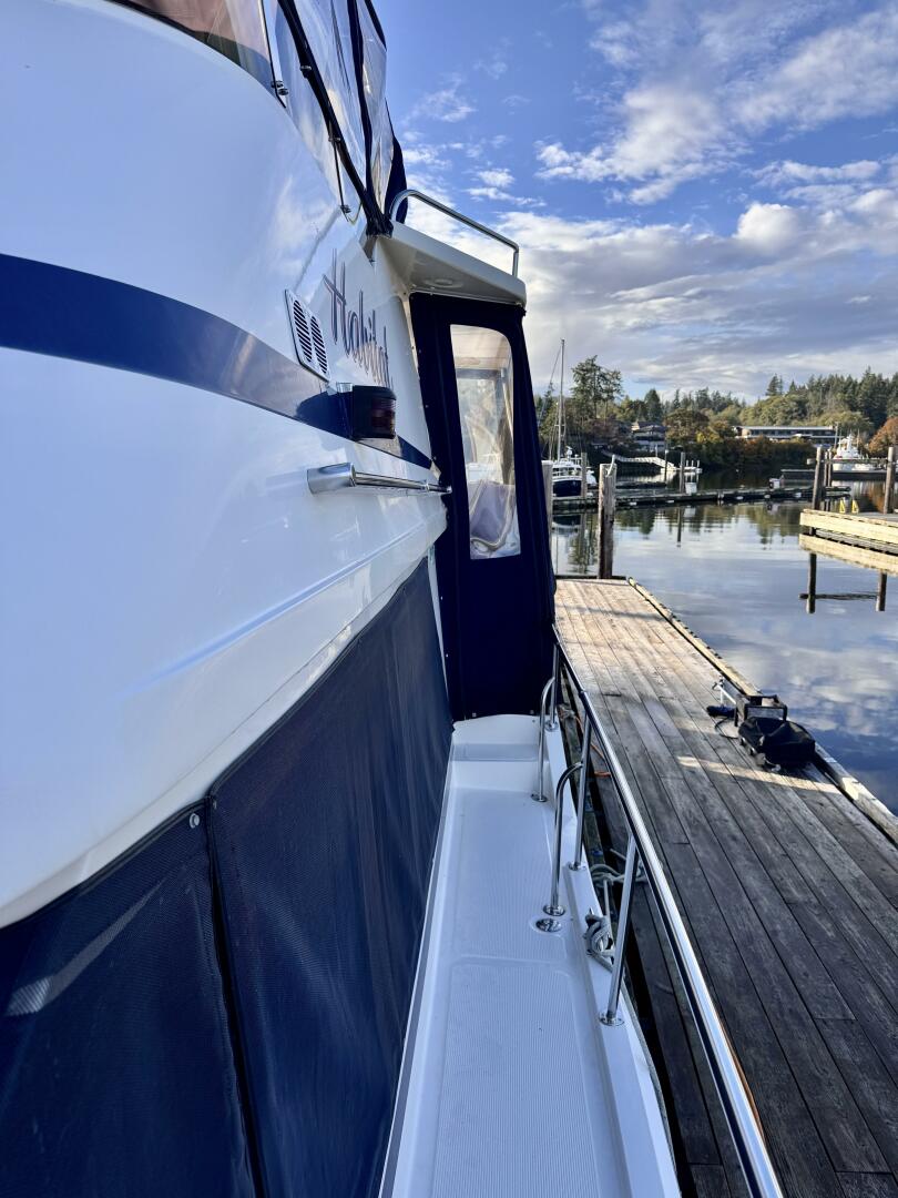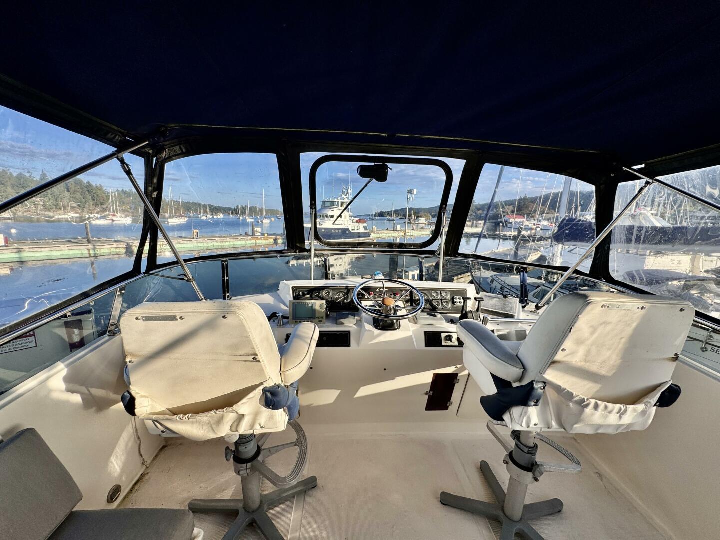 Powered by low-hour 6CTA Cummins engines, she delivers reliable, efficient performance, perfect for exploring the Gulf Islands, San Juan Islands, and wider PNW waters. The electric folding radar arch adds both convenience and versatility, ideal for cruising or docking in tighter spaces.
