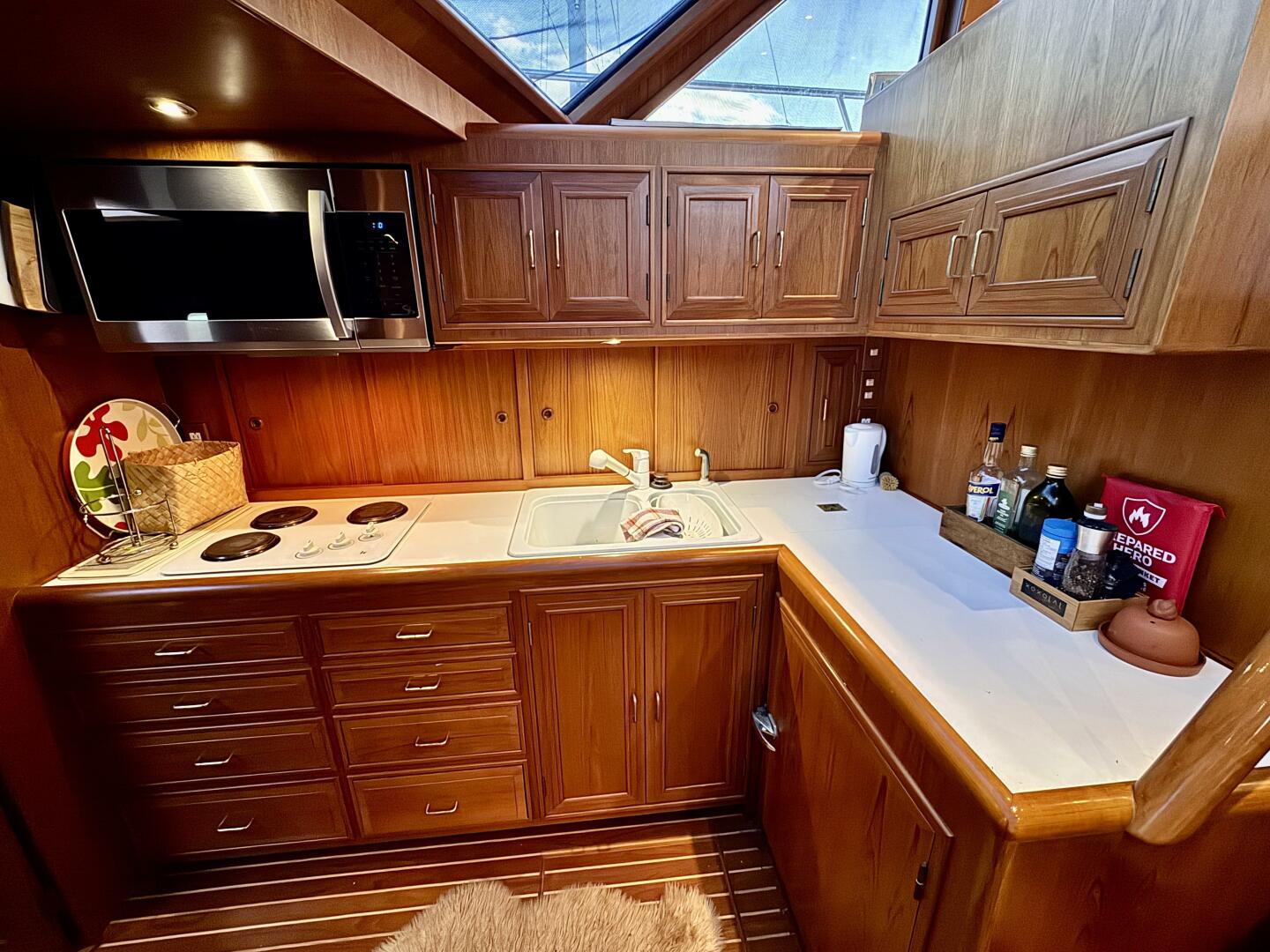 Step aboard to discover the custom teak interior, meticulously designed for comfort and elegance. Every surface showcases the care and craftsmanship that make this yacht a standout.