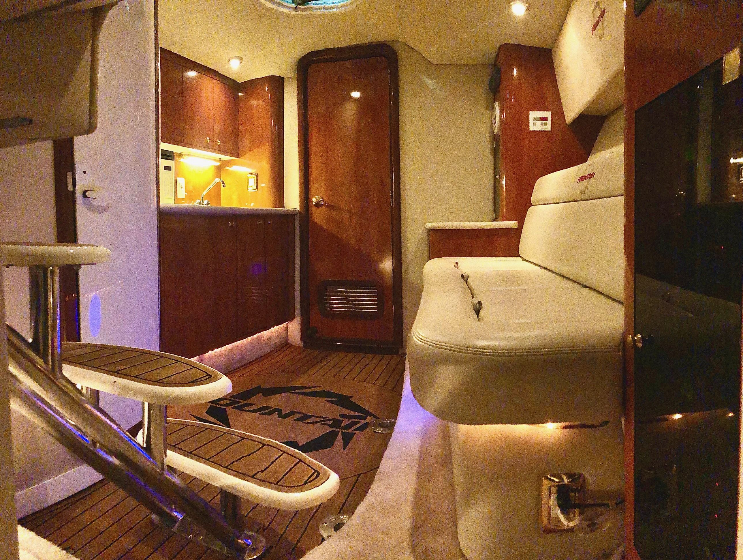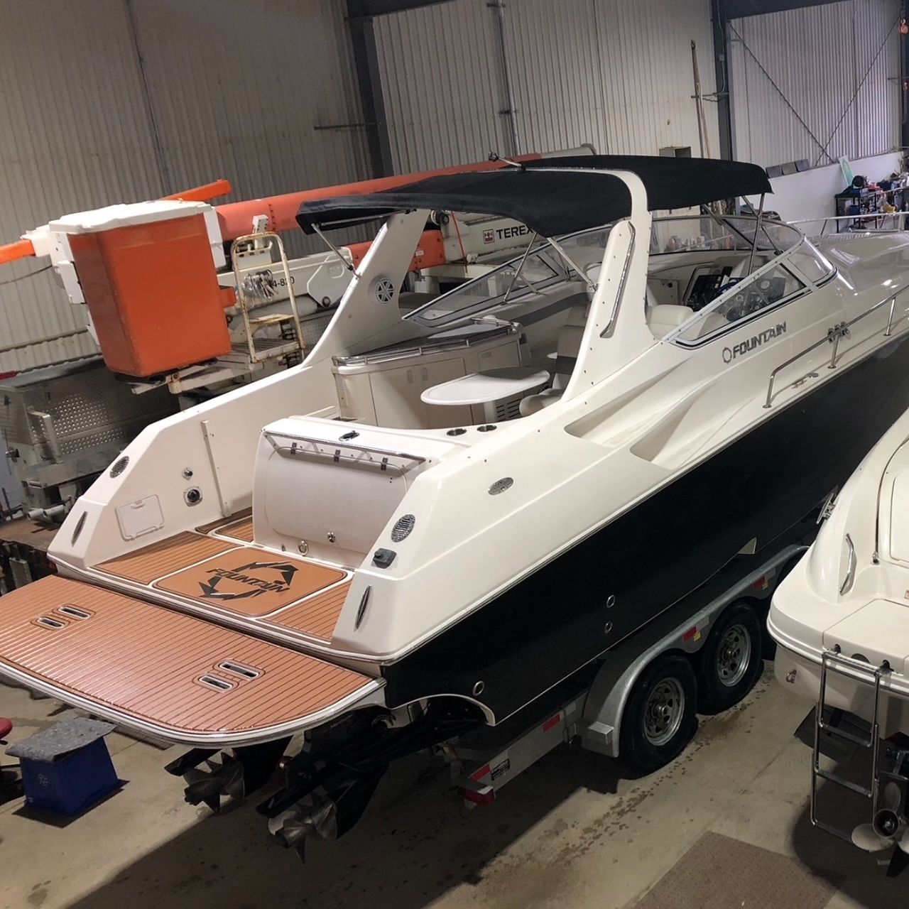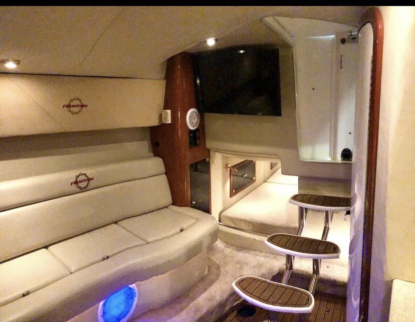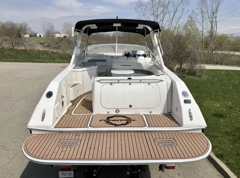 This freshwater 2006 Fountain 38 Express Cruiser is arguably the best example on the market. Powered by twin 525 HP Mercury Marine big blocks with complete professional rebuilds and only ~17 hours since, she delivers true Fountain performance with reliable power. A new Bravo 3 starboard outdrive (2022), new SeaDek-style flooring, and a JL Audio sound system (controlled from galley, helm, and swim platform) take the cockpit experience to the next level. Below, you’ll find a comfortable cabin with double berth, mid-cabin sleeper, galley, and generator-powered air conditioning for overnighting. She is rare, meticulously maintained, turn-key package - ready to elevate your summer!
