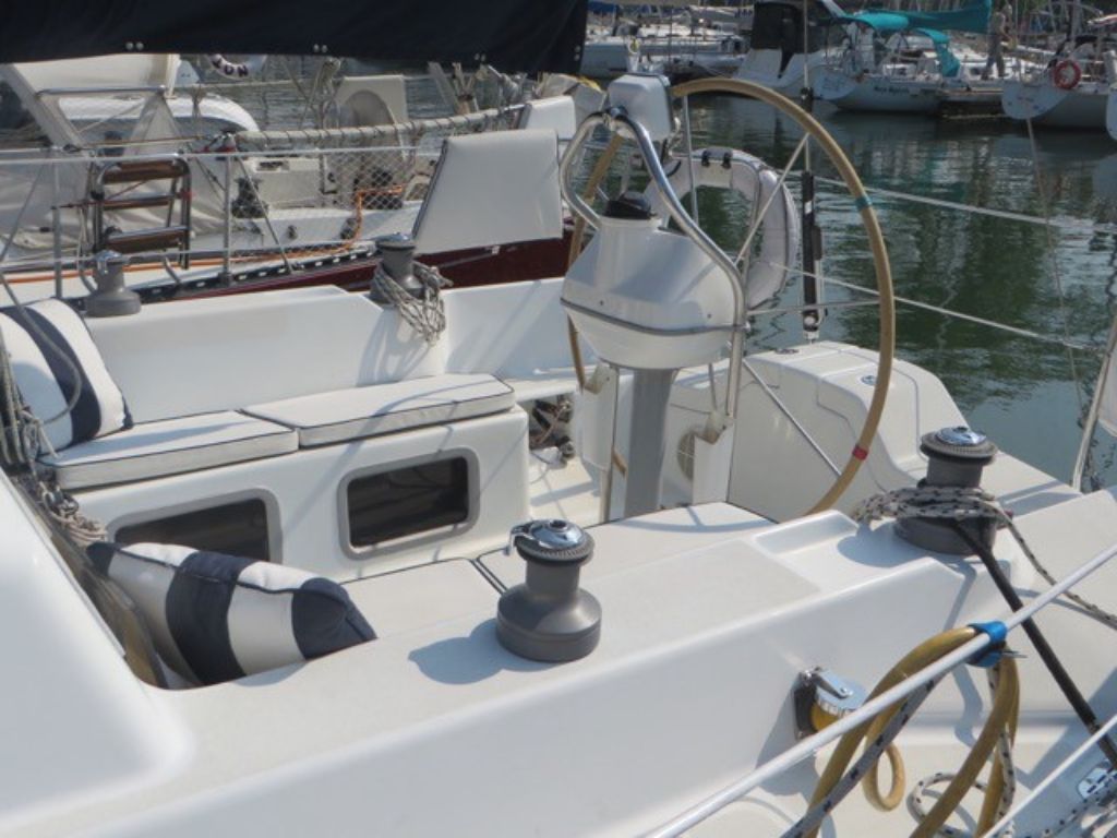 Sprit pole (factory-installed) and full asymmetrical spinnaker gear with self-tailing secondary winches