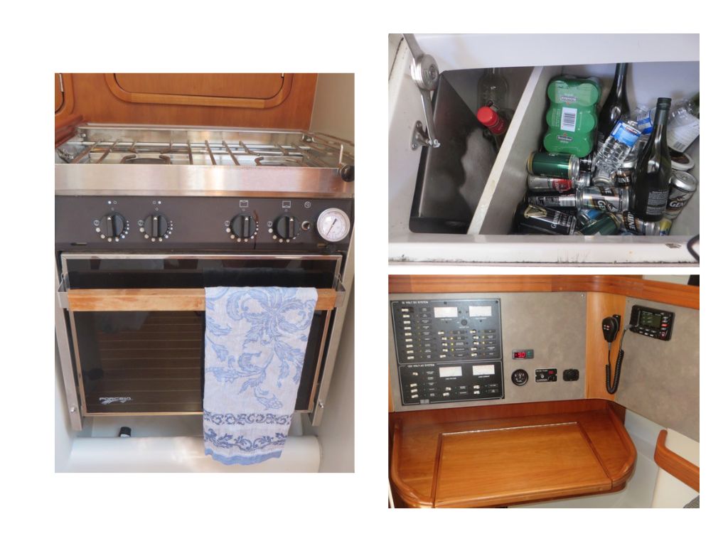 Galley with propane stove/oven, freezer/fridge cold plate, and storage