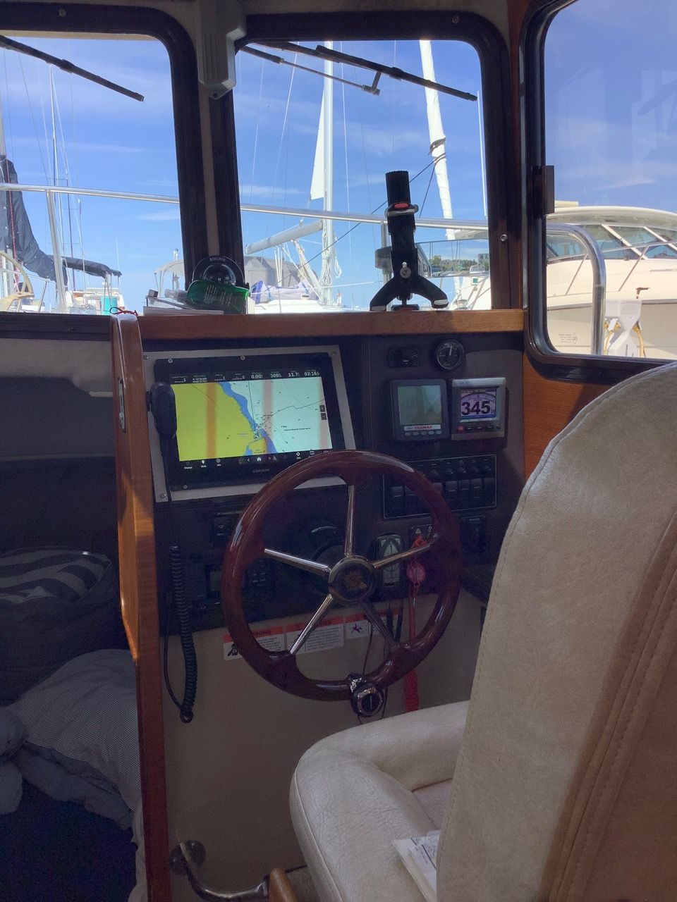 SINGLE 180HP YANMAR 4BY2 DIESEL – 180HP – BOW & STERN THRUSTERS – GARMIN GPSMAP 5212 TOUCHSCREEN NAVIGATION – GARMIN AUTOPILOT – LEWMAR POWER WINDLASS (2023) – TANDEM AXLE ALUMINUM TRAILER – FULL SUNBRELLA COCKPIT ENCLOSURE – SOLAR PANEL – INVERTER – CABIN AIR CONDITIONING – +++