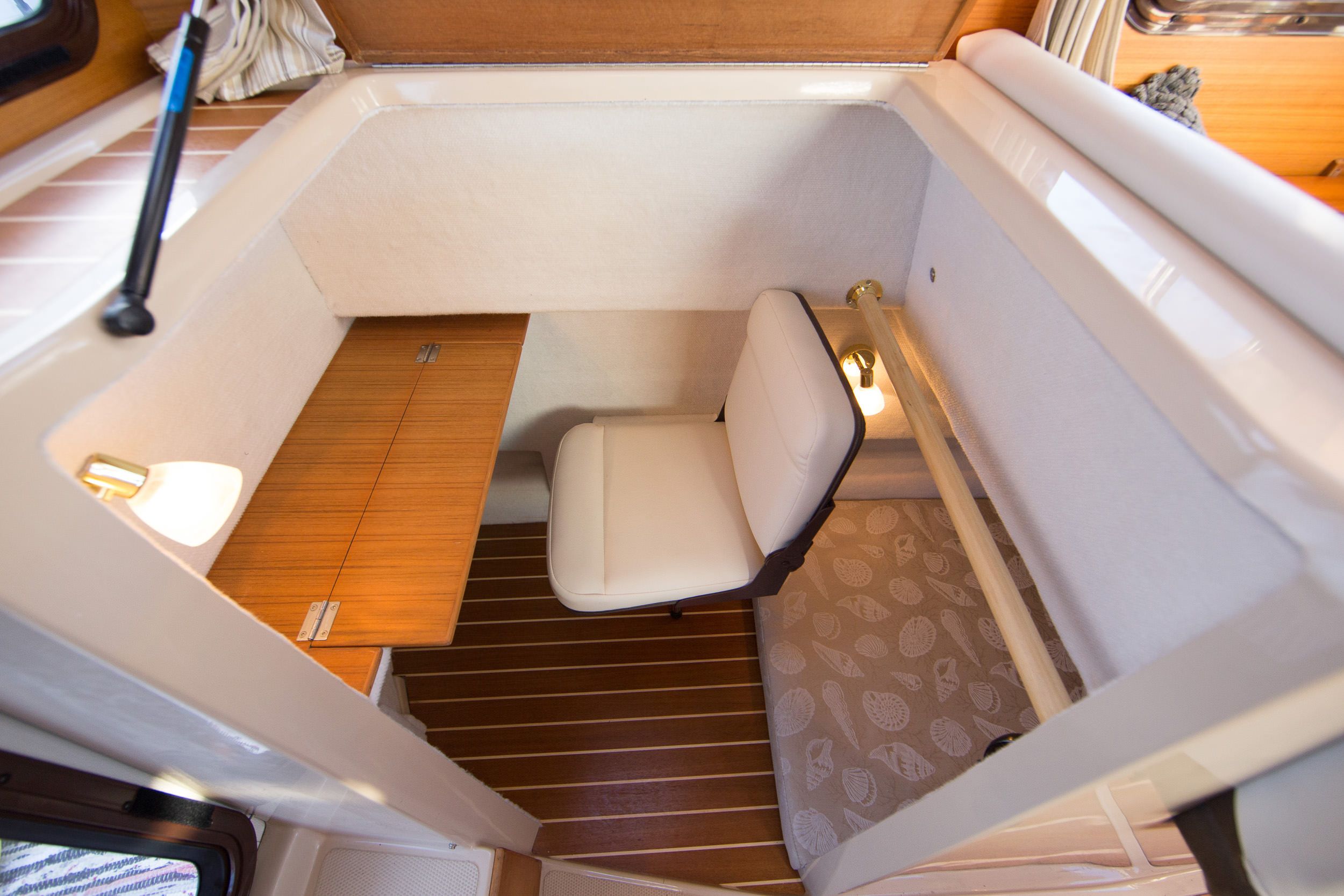 Amidships office with desk/chair converts to berth