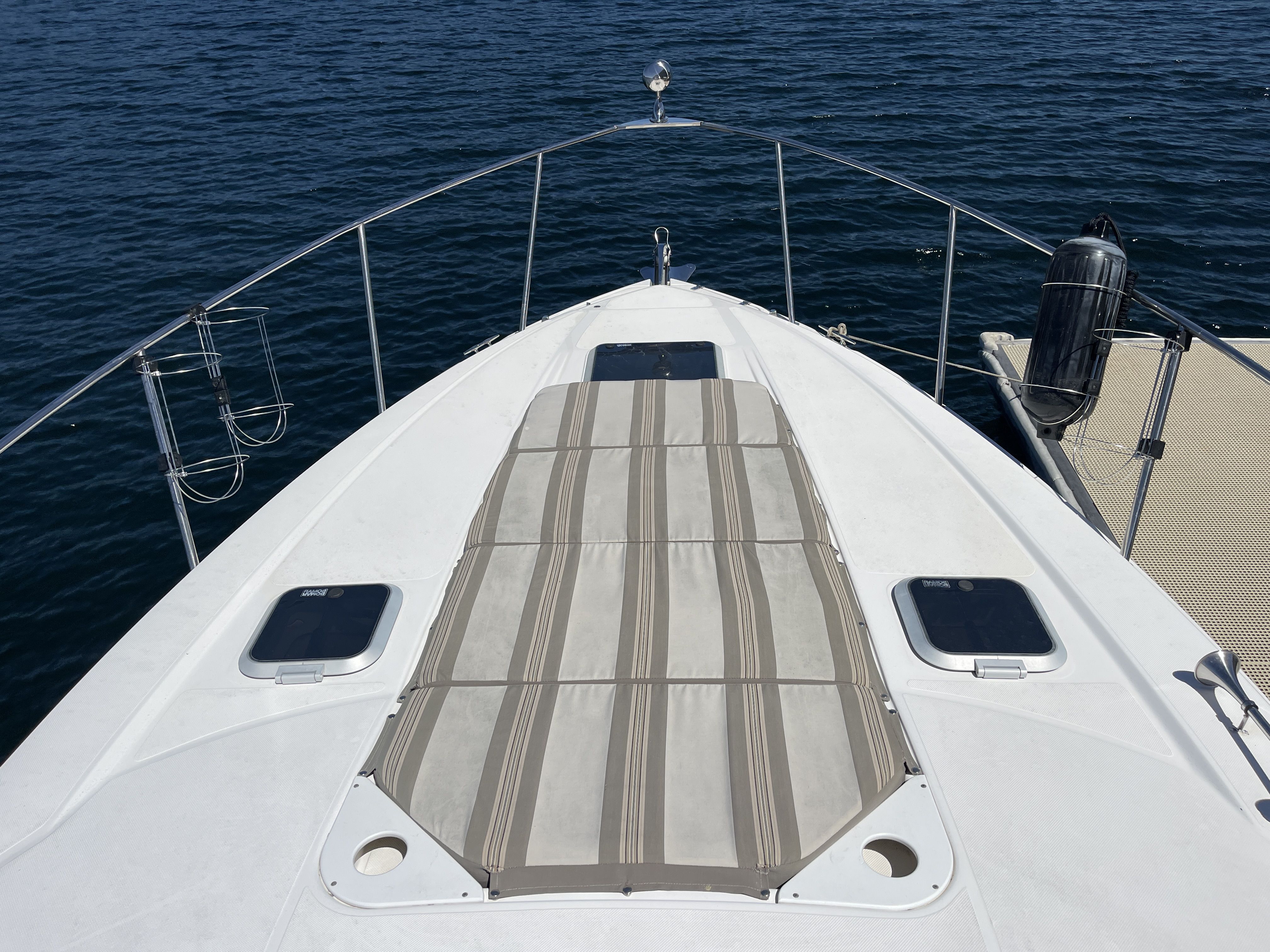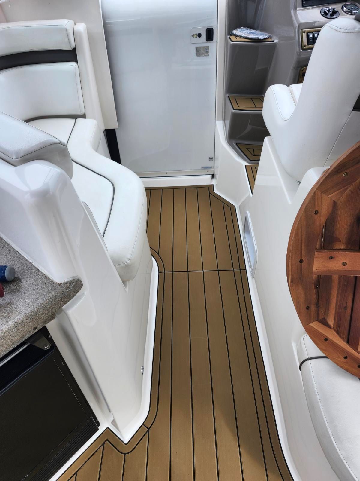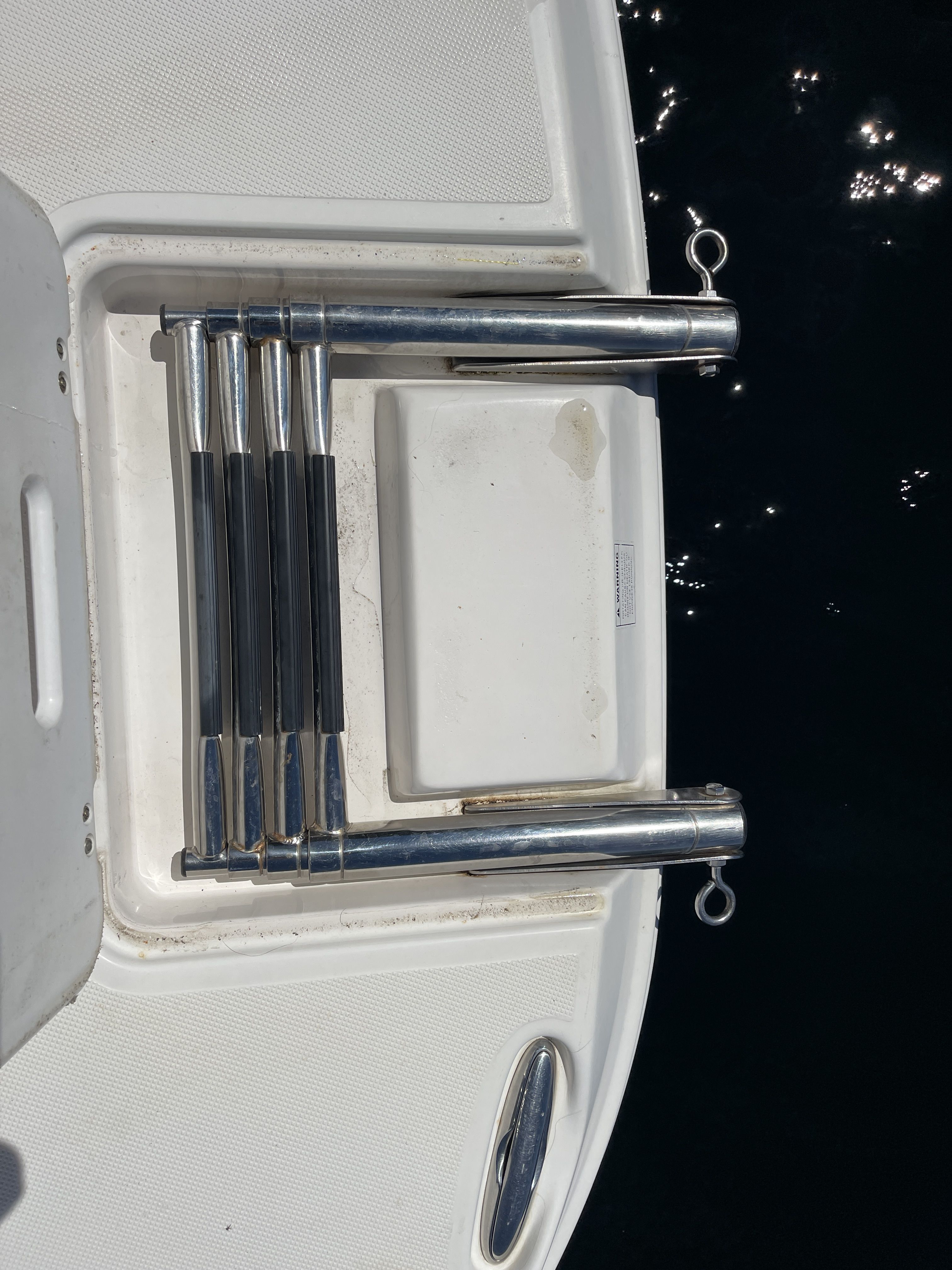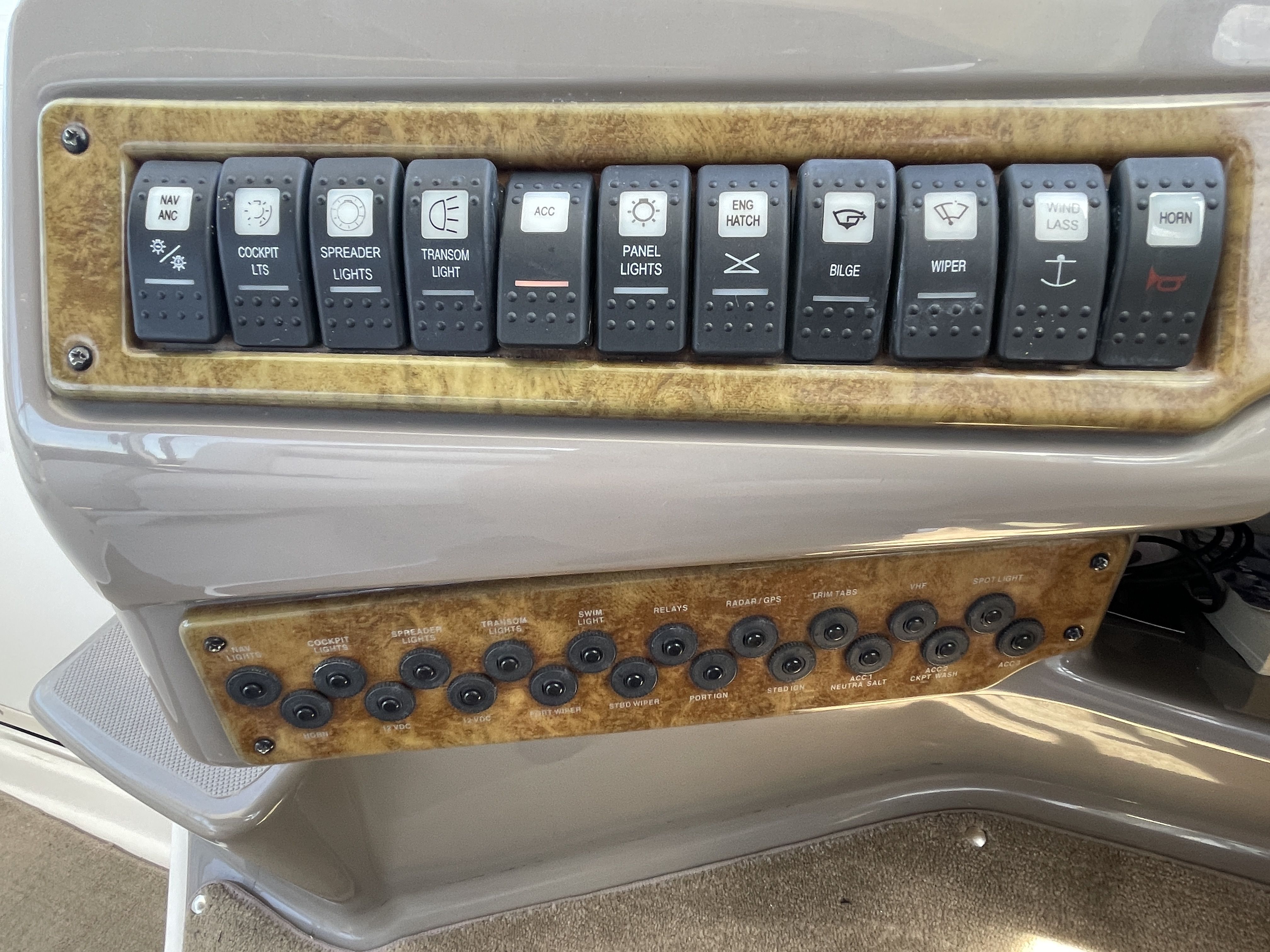Below deck this boat offers a great layout and plenty of options. The cabin is equipped with AC/Heat, finished with cherry wood cabinets and beautiful teak & holly flooring. The salon area has a large 3-seat sofa that converts to a double bed for sleeping. The galley is equipped with a sink, 2-burner stove, refrigerator, microwave oven with coffee maker, and flatscreen TV. The forward v-berth has a large centerline queen-size bed. The aft U-shaped lounge converts to a double berth as well. The head is equipped with a vacuflush toilet and separate shower.
