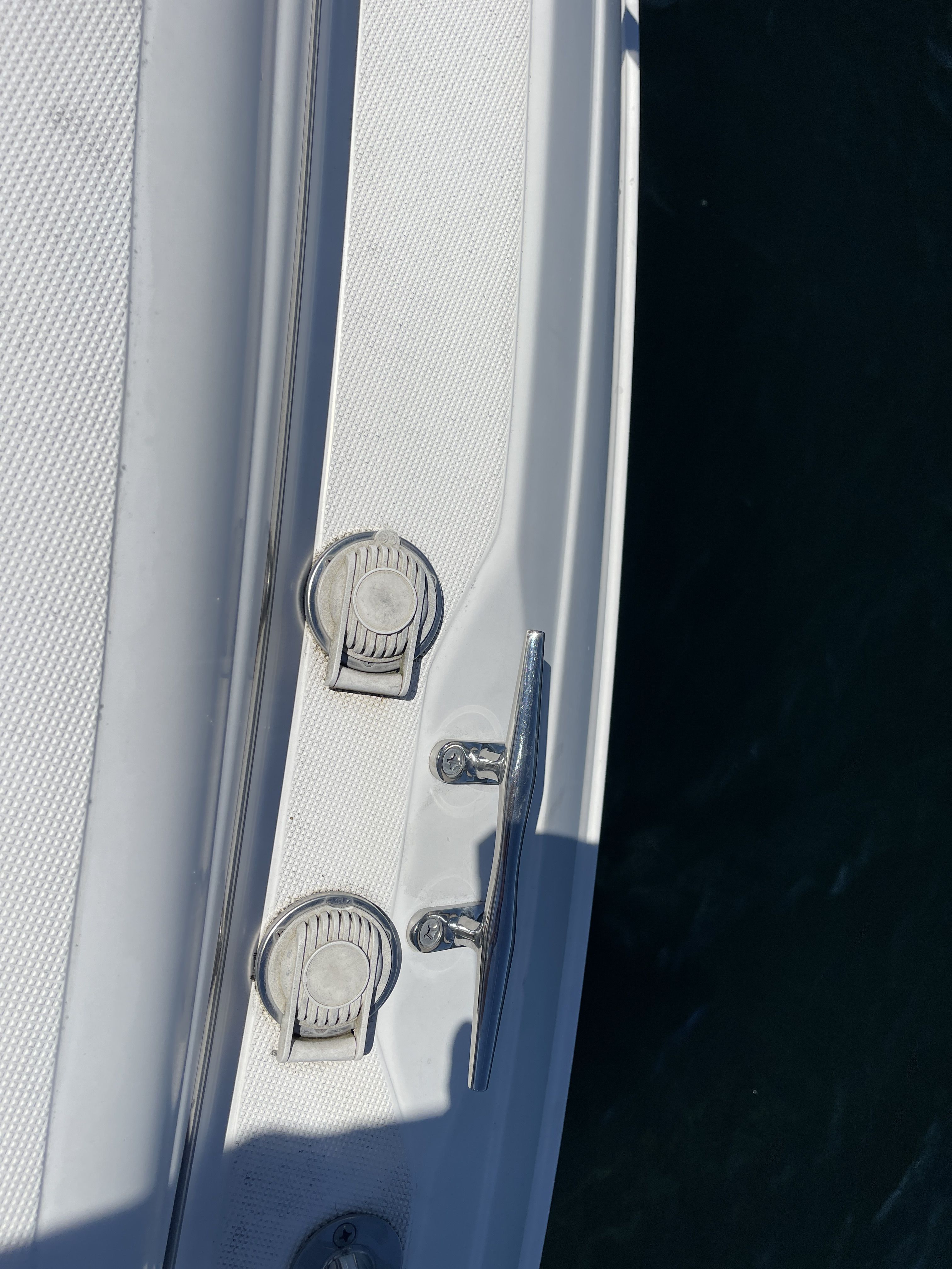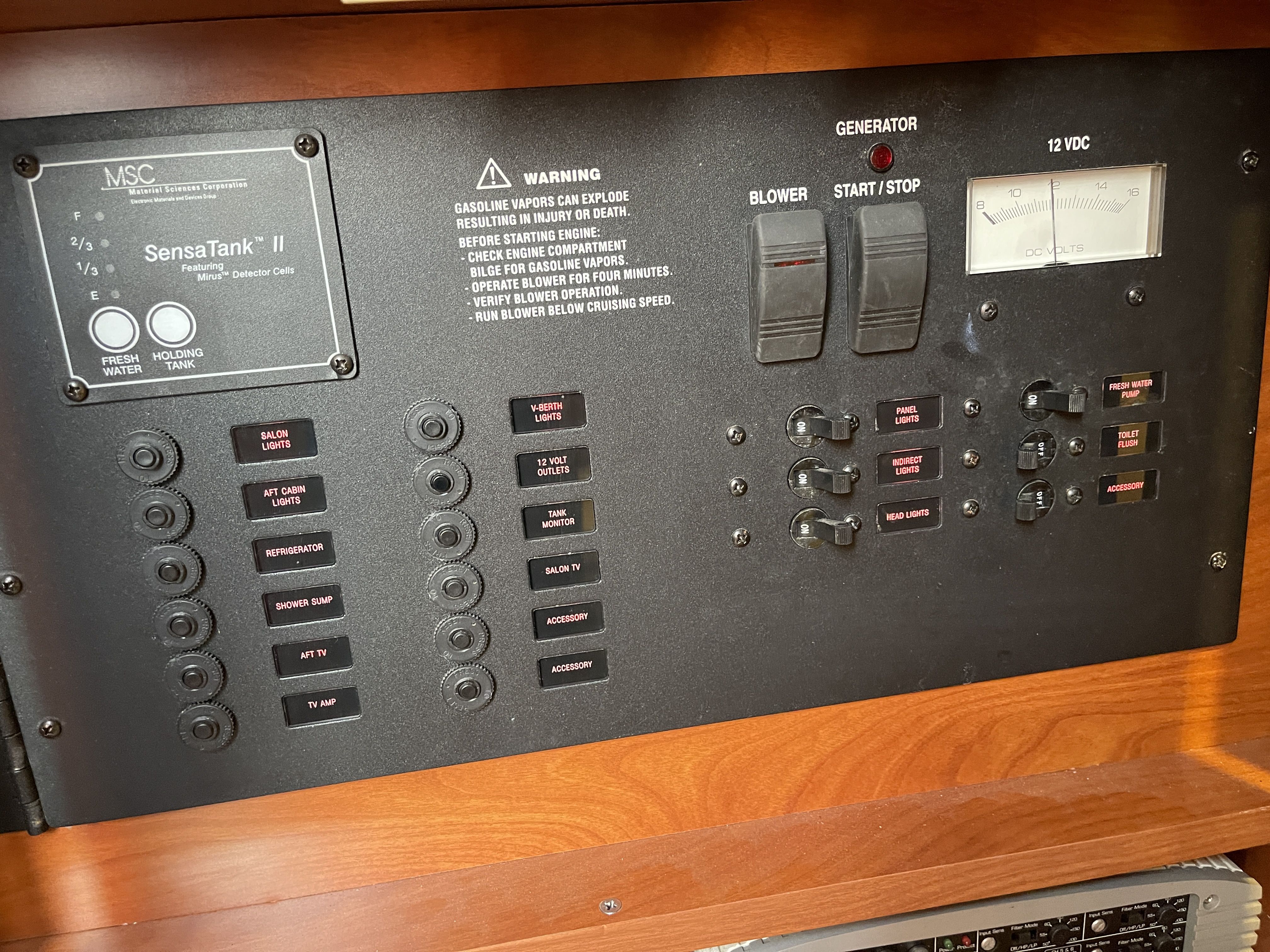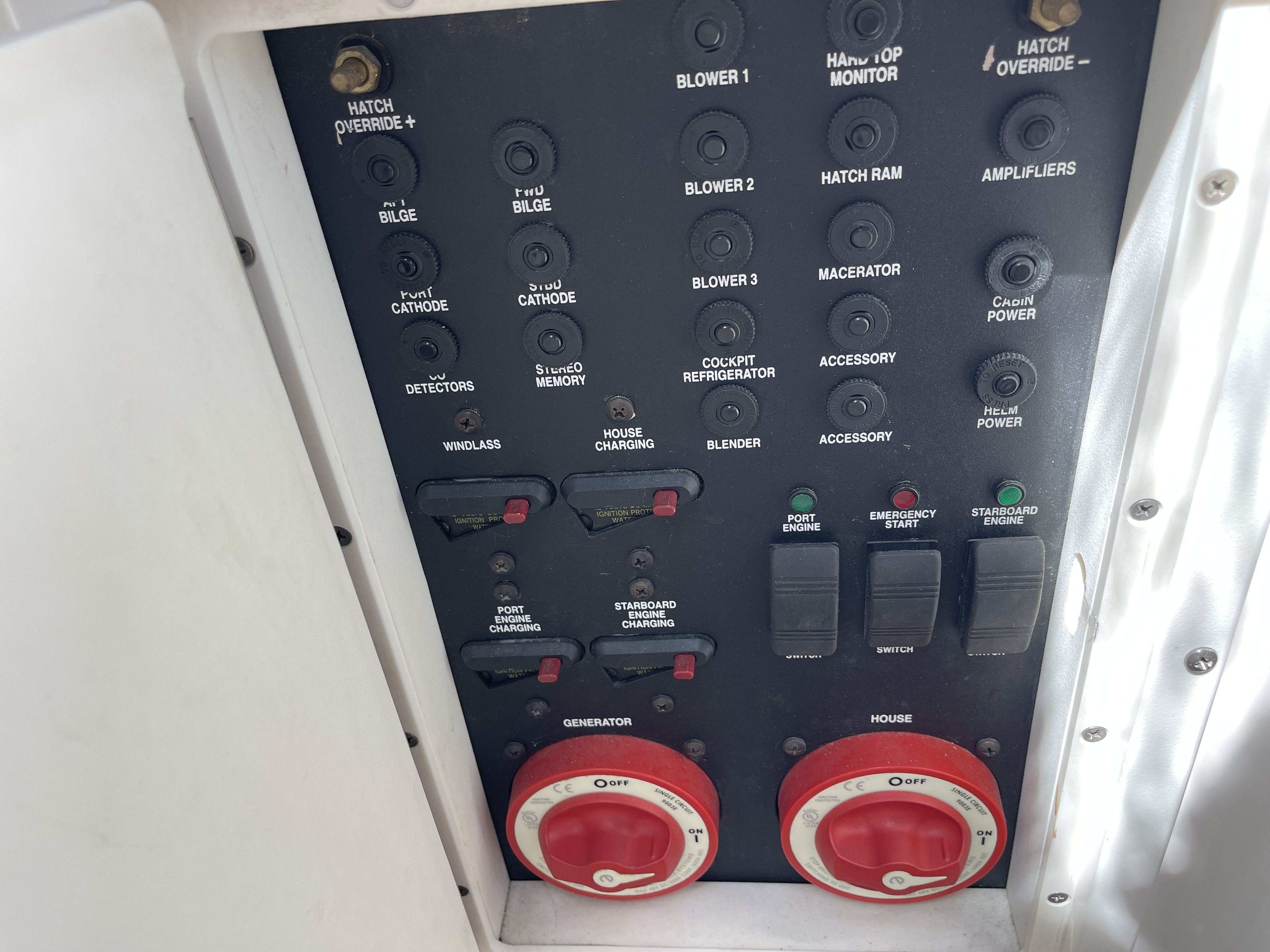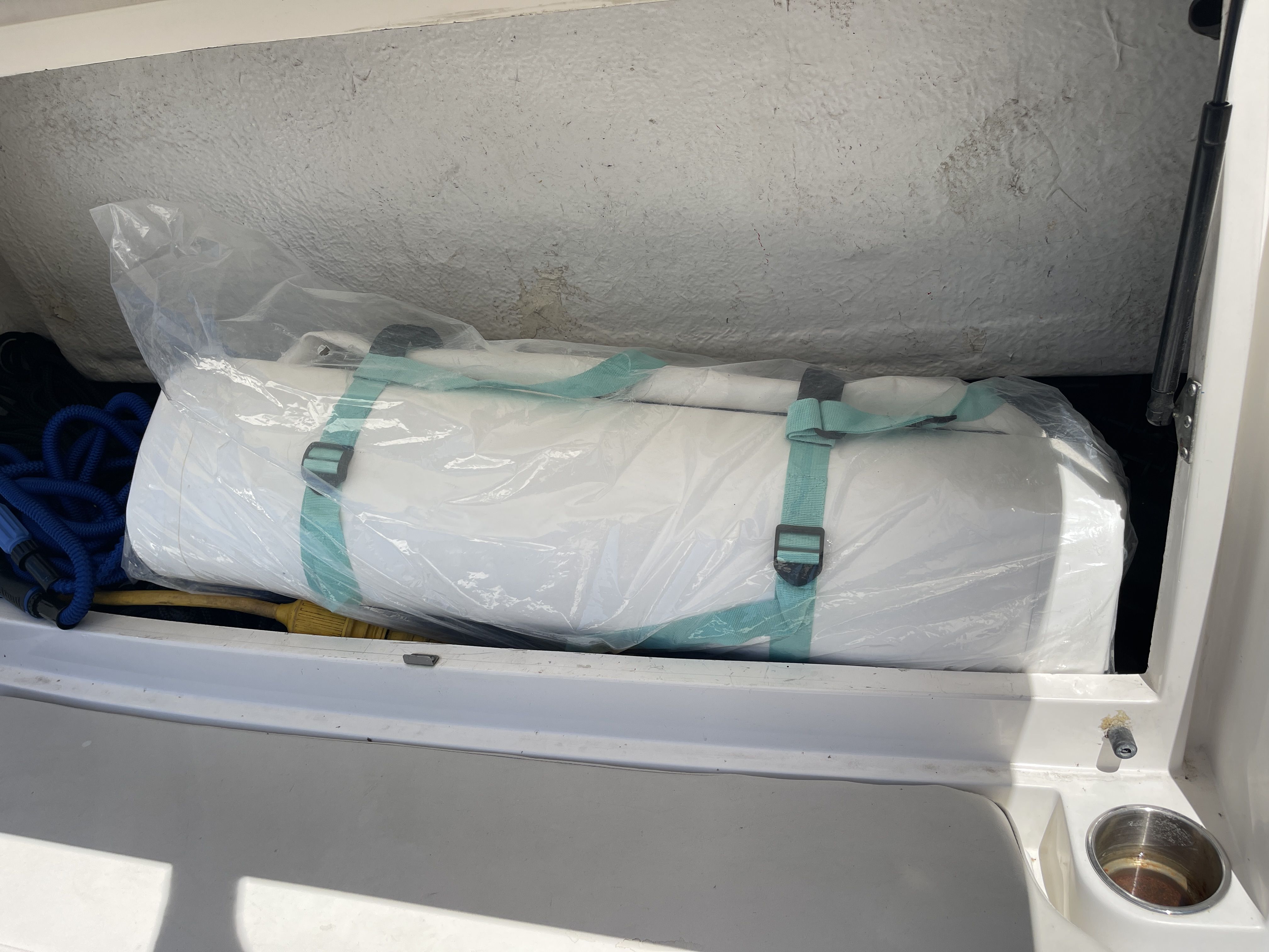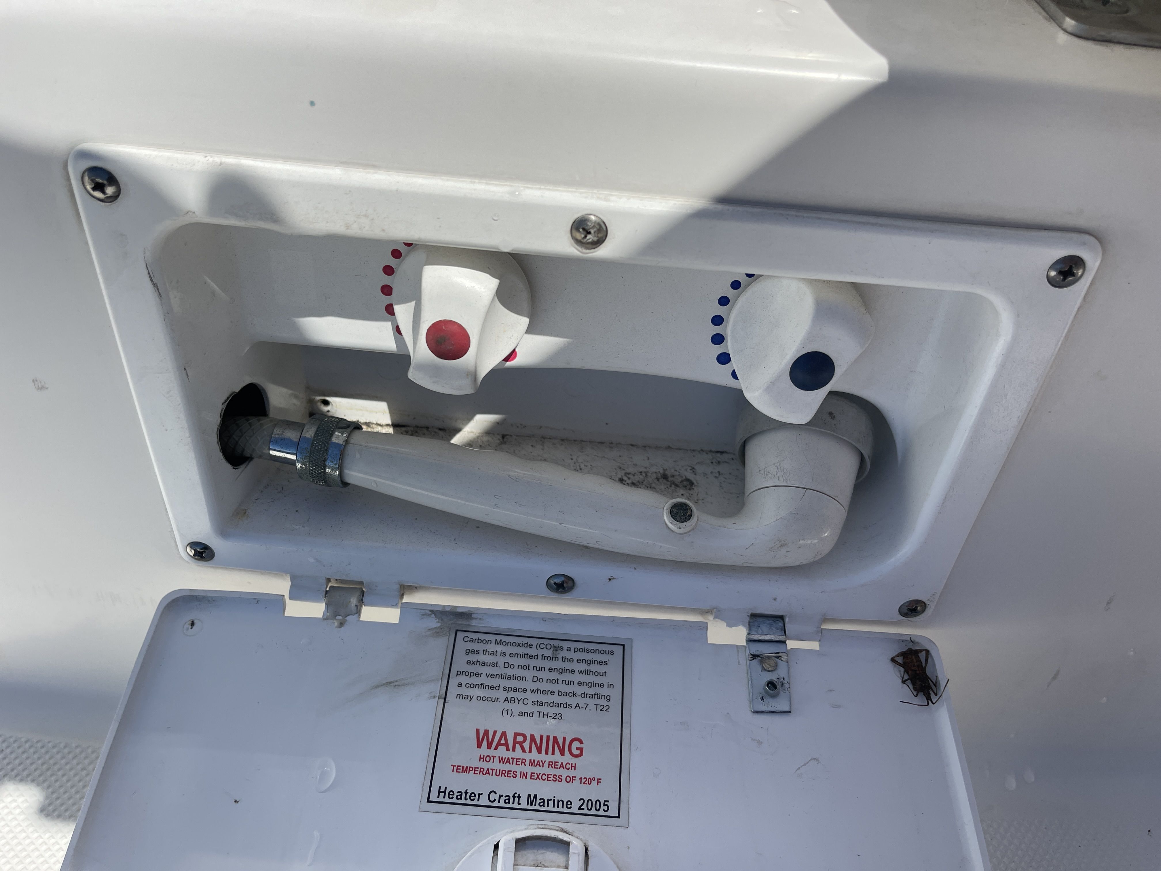 Below deck this boat offers a great layout and plenty of options. The cabin is equipped with AC/Heat, finished with cherry wood cabinets and beautiful teak & holly flooring. The salon area has a large 3-seat sofa that converts to a double bed for sleeping. The galley is equipped with a sink, 2-burner stove, refrigerator, microwave oven with coffee maker, and flatscreen TV. The forward v-berth has a large centerline queen-size bed. The aft U-shaped lounge converts to a double berth as well. The head is equipped with a vacuflush toilet and separate shower.