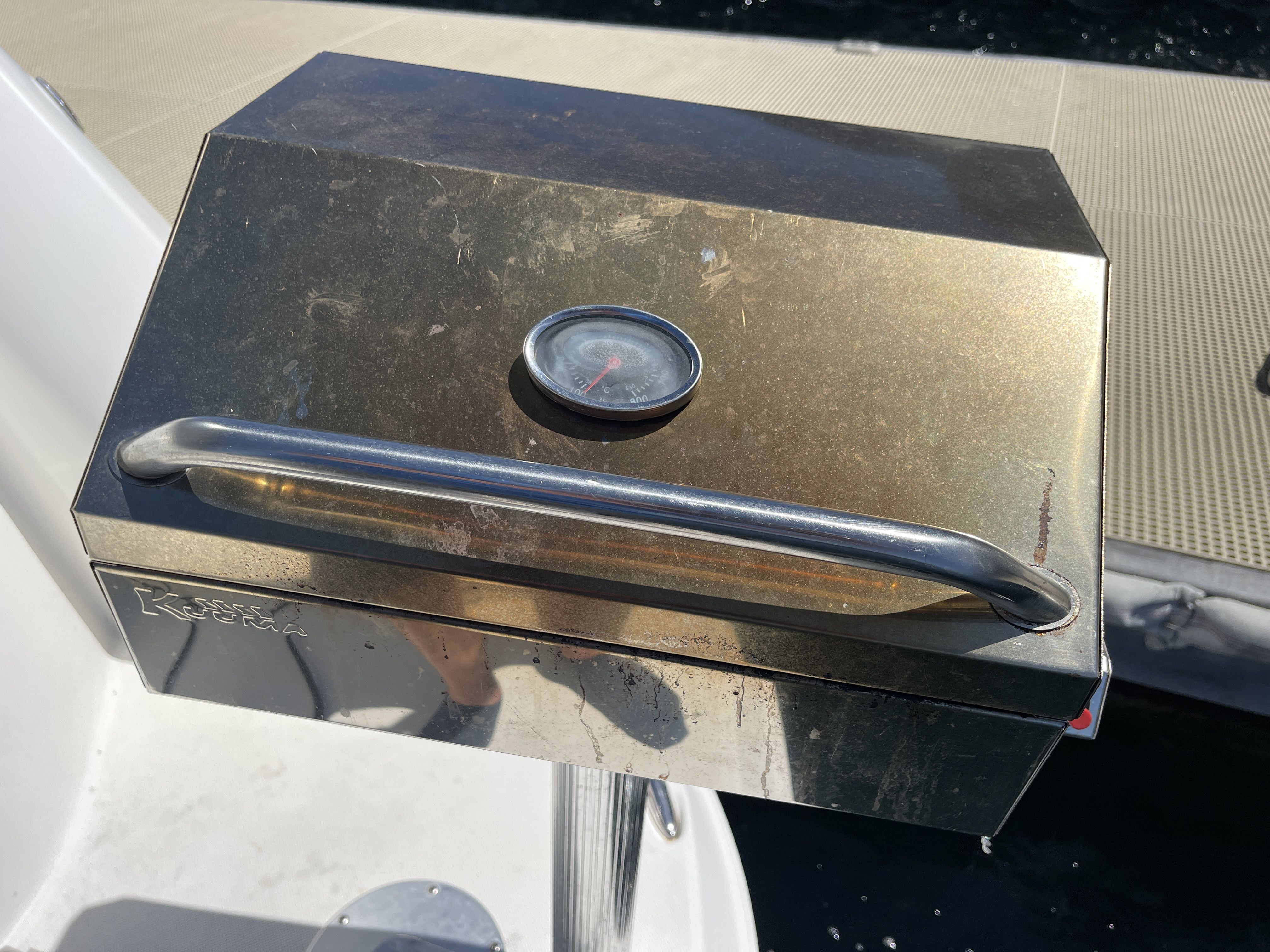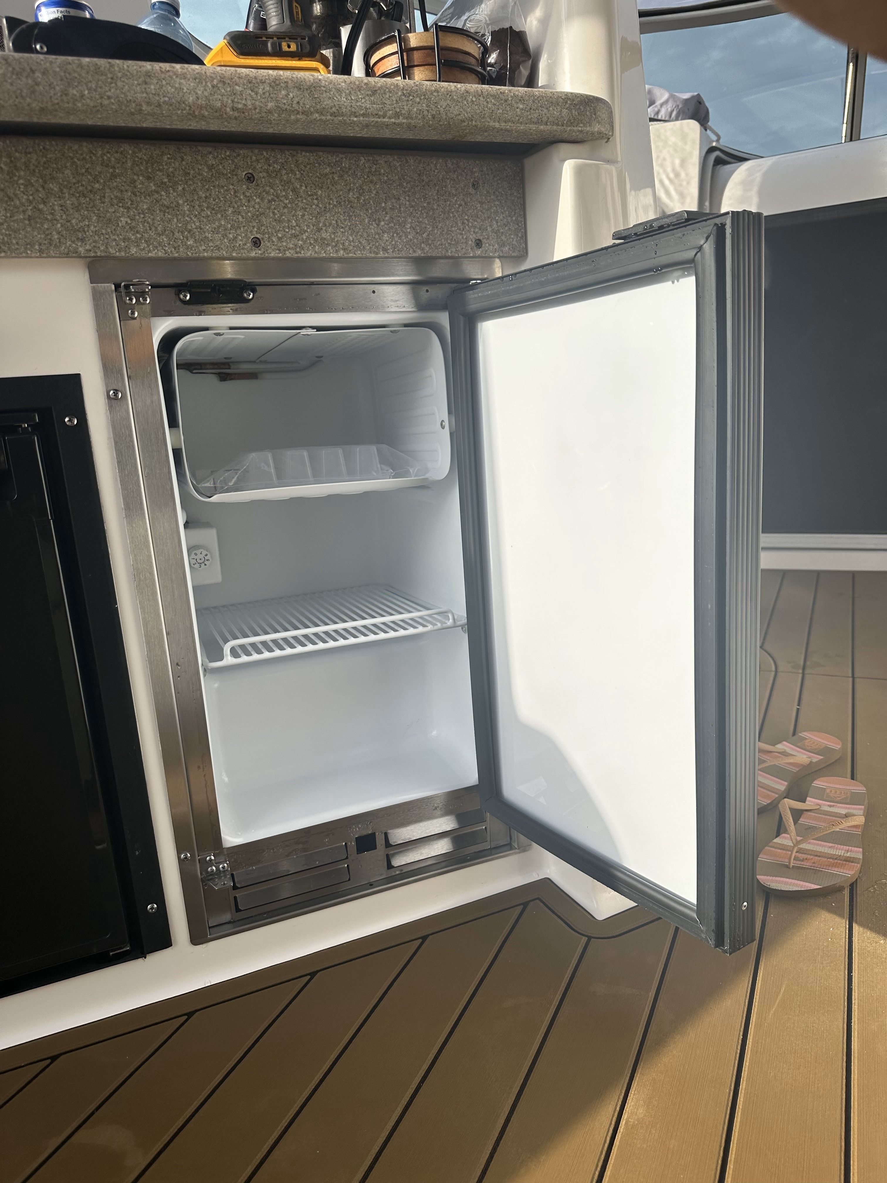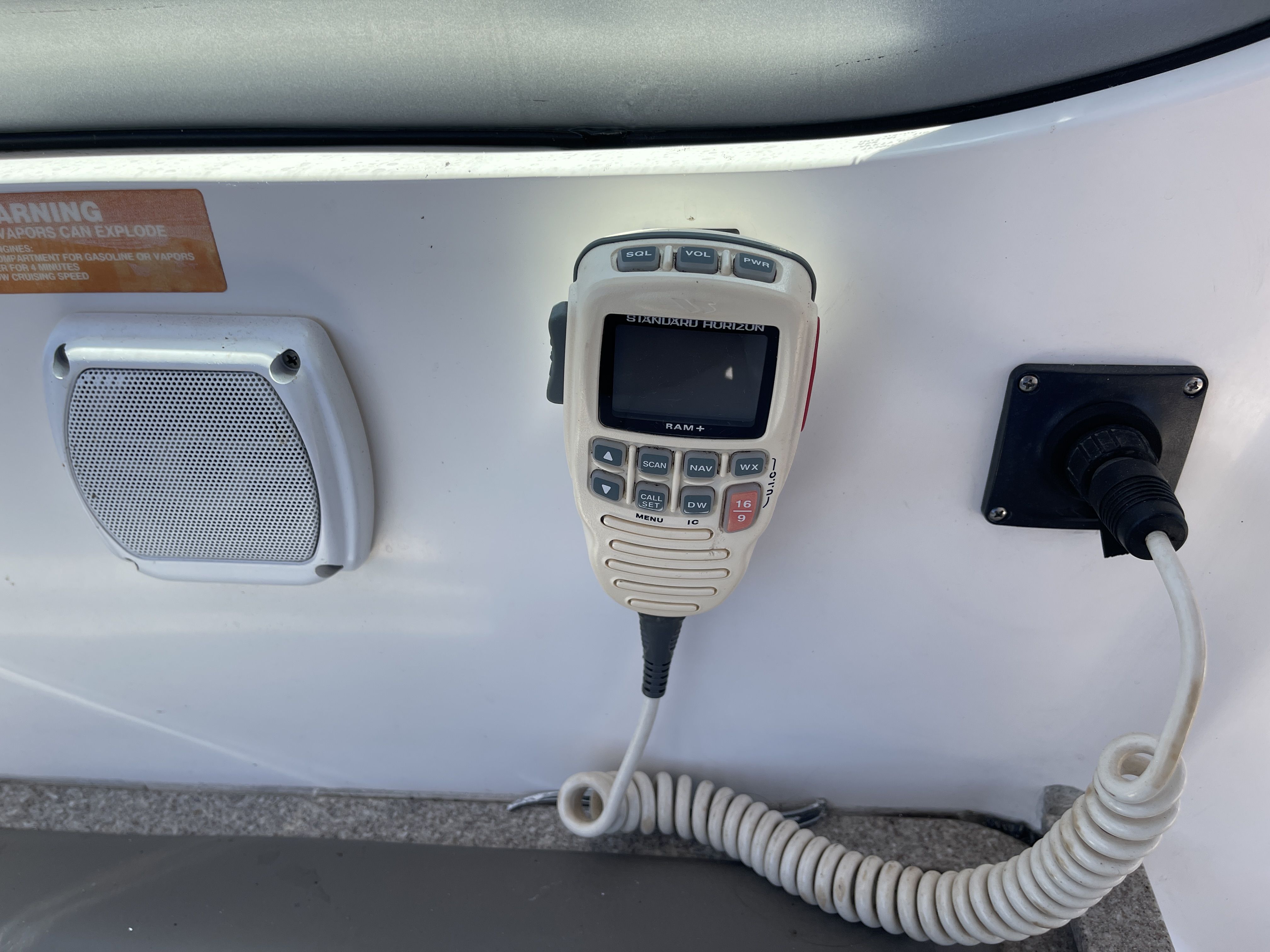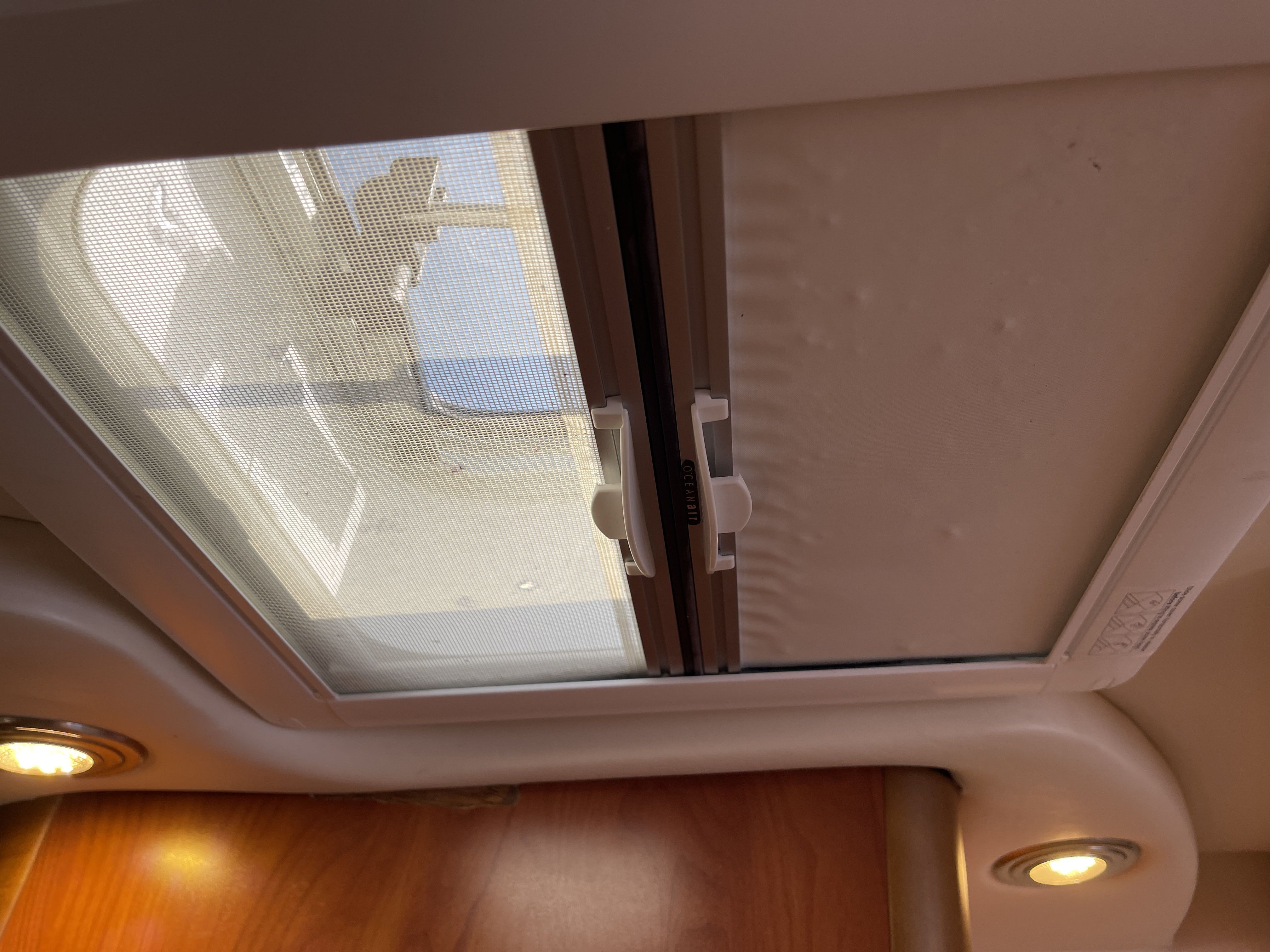 Below deck this boat offers a great layout and plenty of options. The cabin is equipped with AC/Heat, finished with cherry wood cabinets and beautiful teak & holly flooring. The salon area has a large 3-seat sofa that converts to a double bed for sleeping. The galley is equipped with a sink, 2-burner stove, refrigerator, microwave oven with coffee maker, and flatscreen TV. The forward v-berth has a large centerline queen-size bed. The aft U-shaped lounge converts to a double berth as well. The head is equipped with a vacuflush toilet and separate shower.