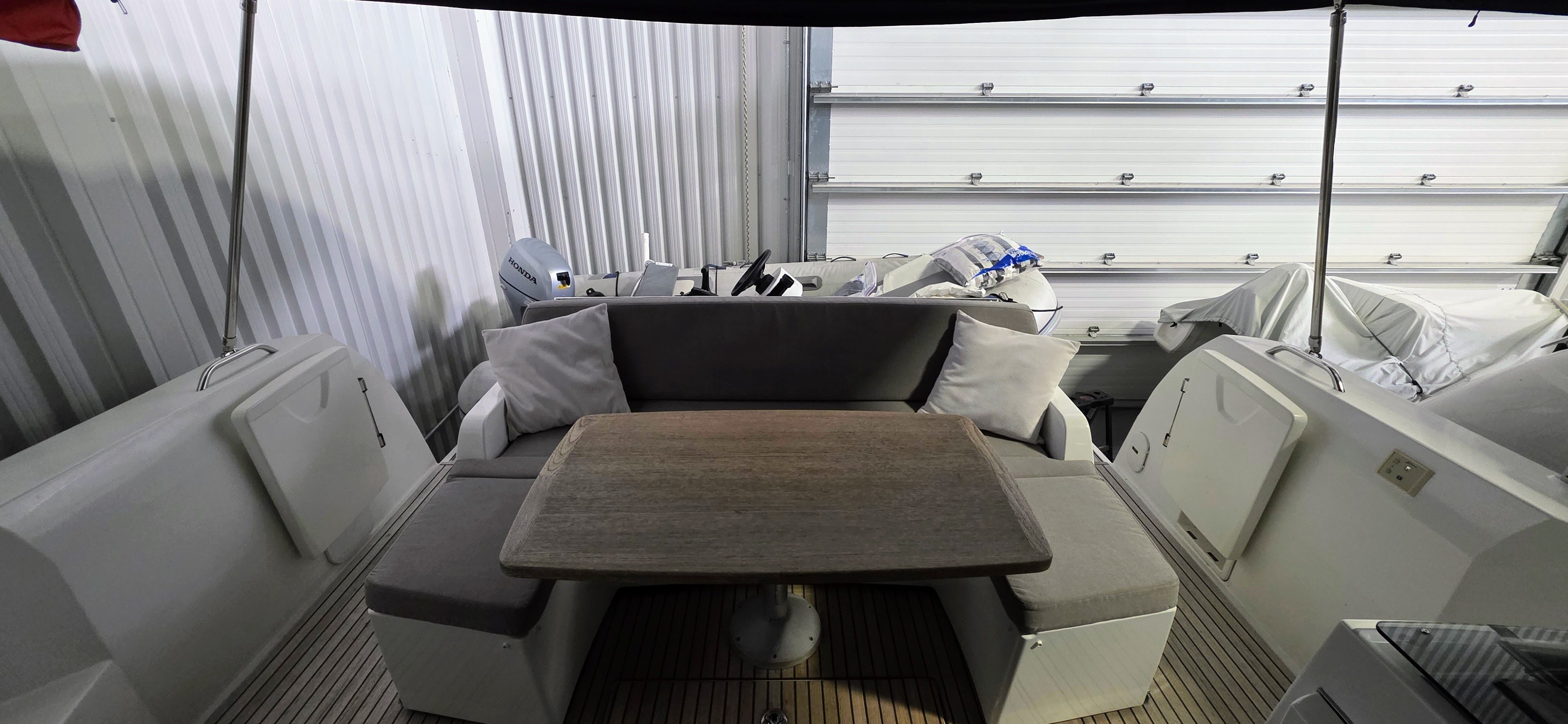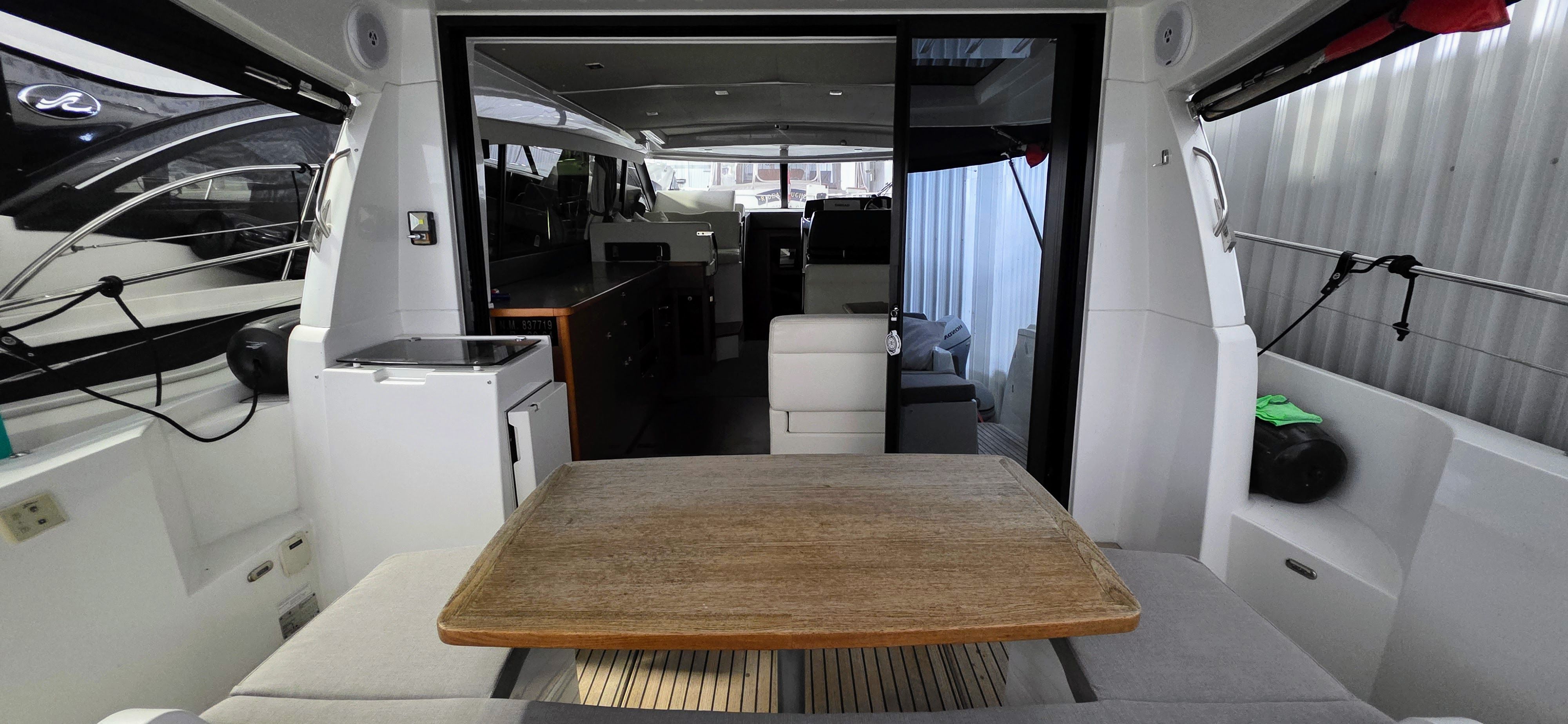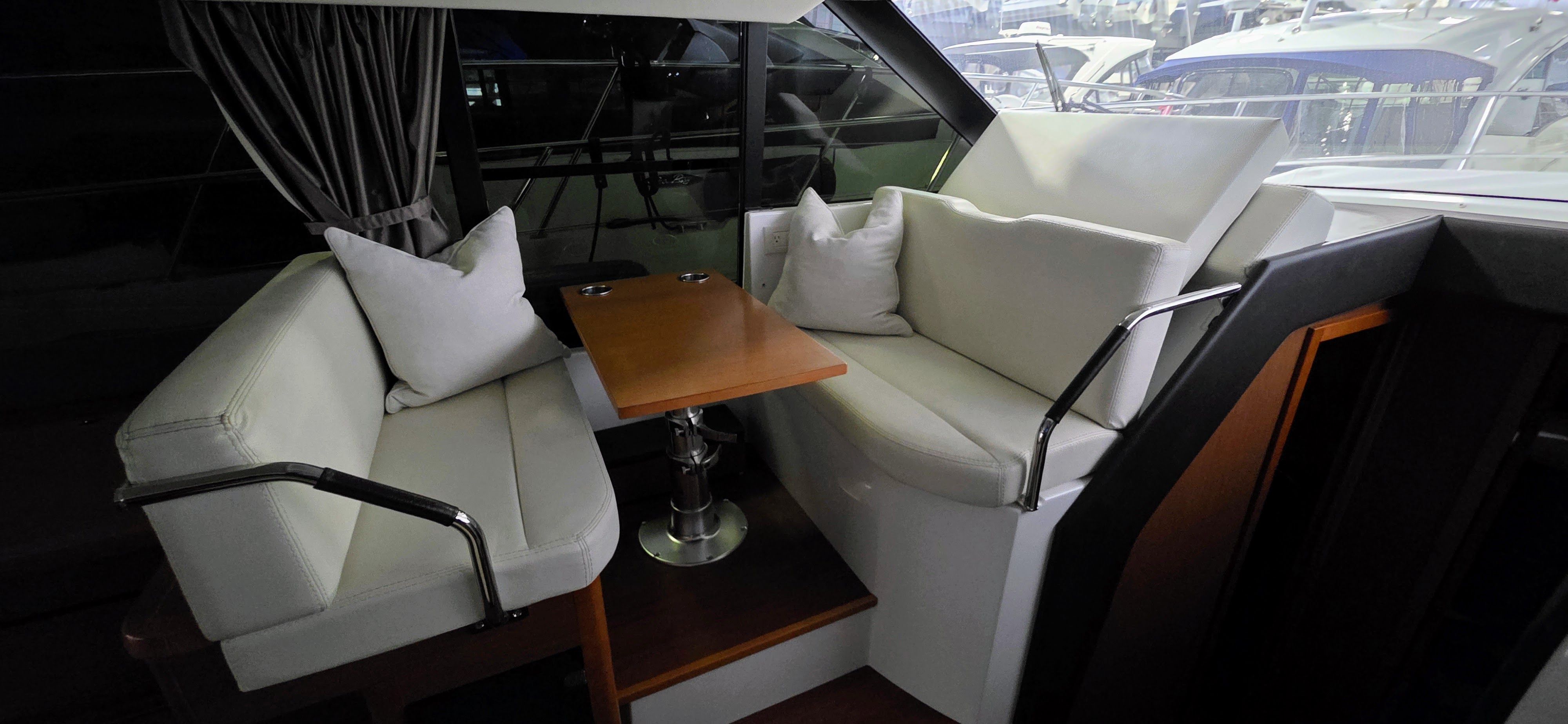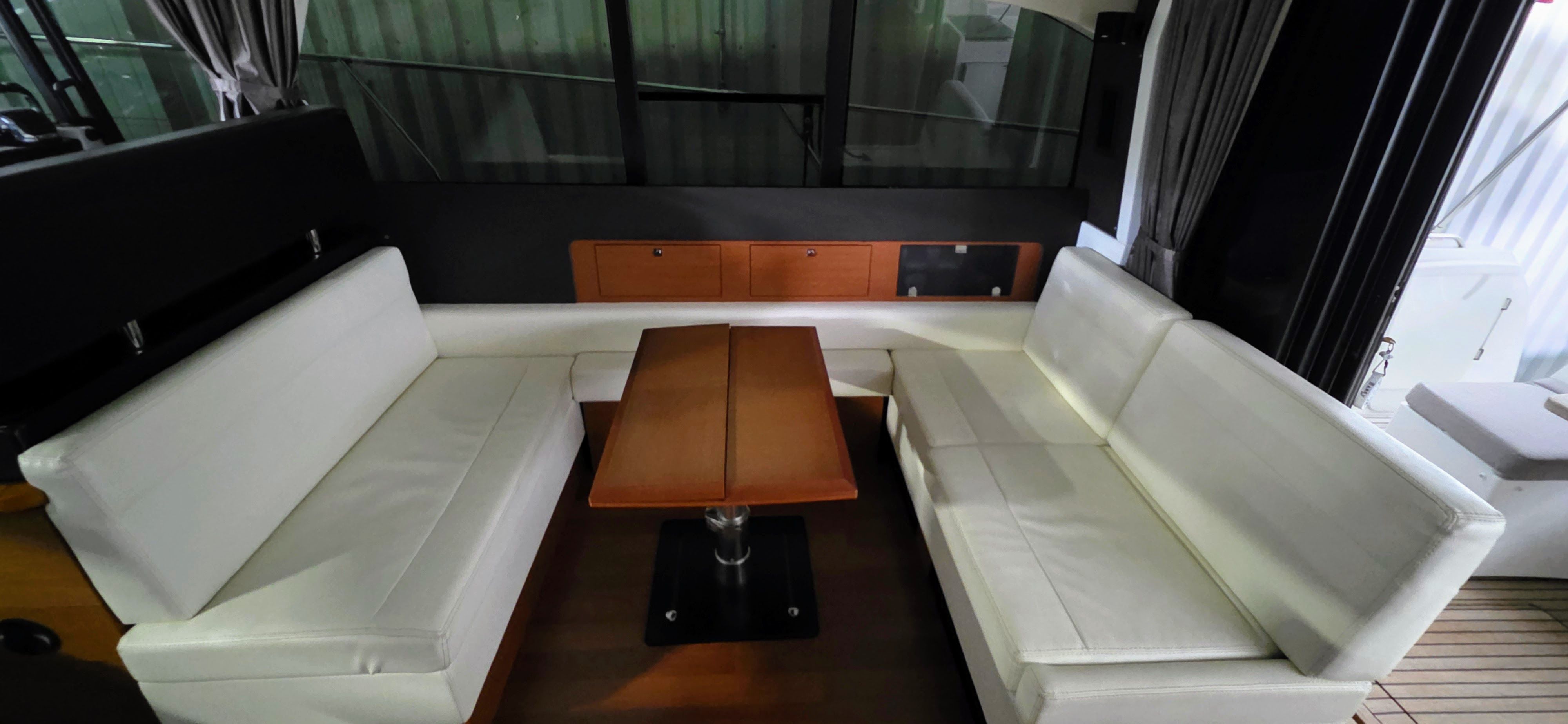 - Starboard U-shaped lounge with adjustable dinette