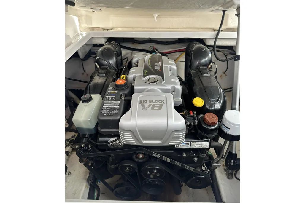 FRESHWATER – MERCRUISER 8.2L MAG – 380 HP – ONLY 160 HOURS – BOW THRUSTER – WINDLASS ANCHOR – FULL CANVAS COCKPIT ENCLOSURE W/ SCREENS – UNDERWATER LIGHTING – COCKPIT COLOUR LIGHTING – AIR CONDITIONING & HEAT – COCKPIT WET BAR W/ FRIDGE – COOKTOP – MICROWAVE – CABIN FRIDGE – CHARTPLOTTER – VHF RADIO – UPGRADED SOUND SYSTEM – BBQ +++