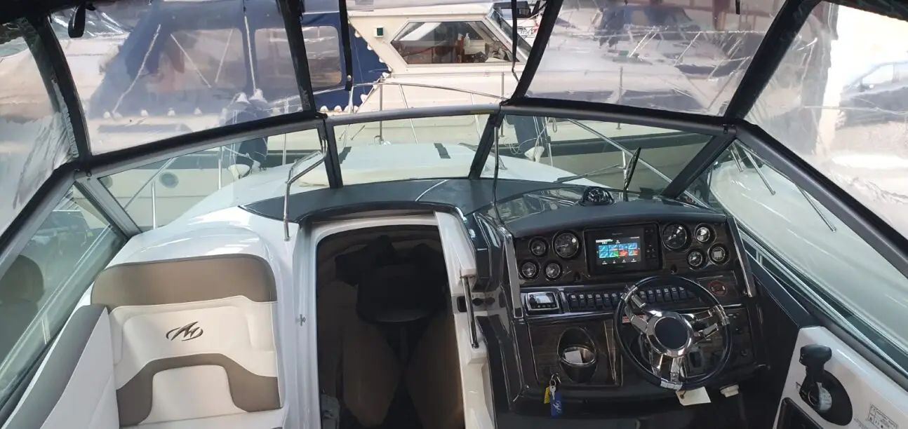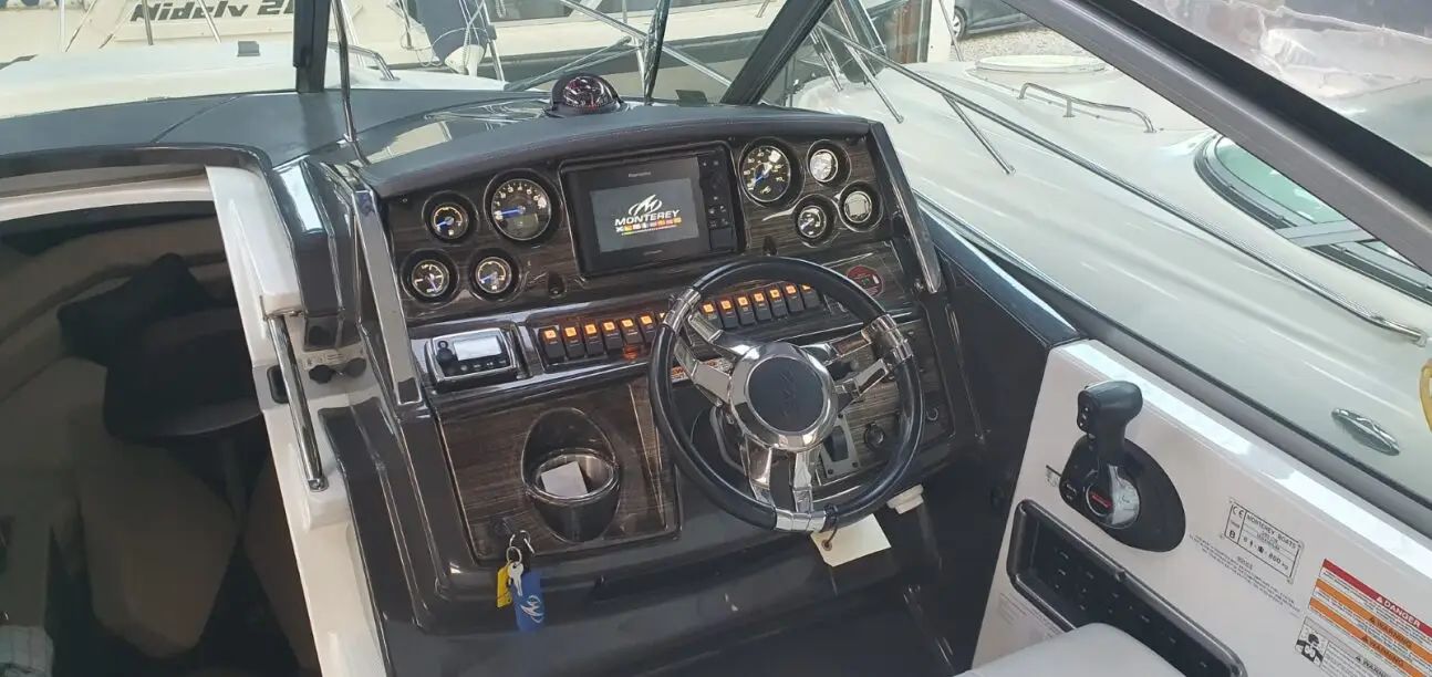 Monterey Boats inspects each boat throughout the manufacturing process and completes a thorough systems, fit, and finish check before the boat leaves the factory ensuring premium build quality. The Monterey 295 Sport Yacht is designed to blend sporty performance with cruiser comfort, featuring an enclosed cockpit with glass windows, versatile cockpit seating, and a well-appointed cabin with smart use of space for weekends on the water.