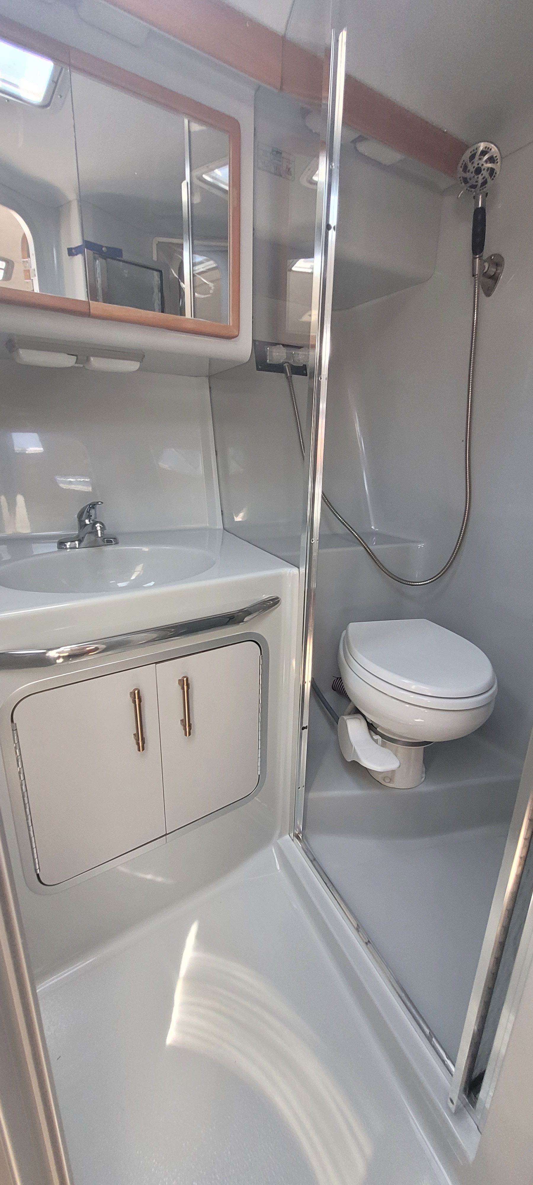 Enclosed Head with Sink, Vanity, Shower & Vacuflush Flush Toilet