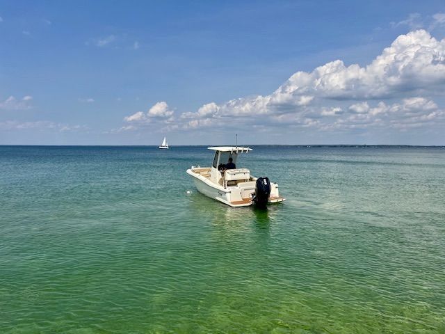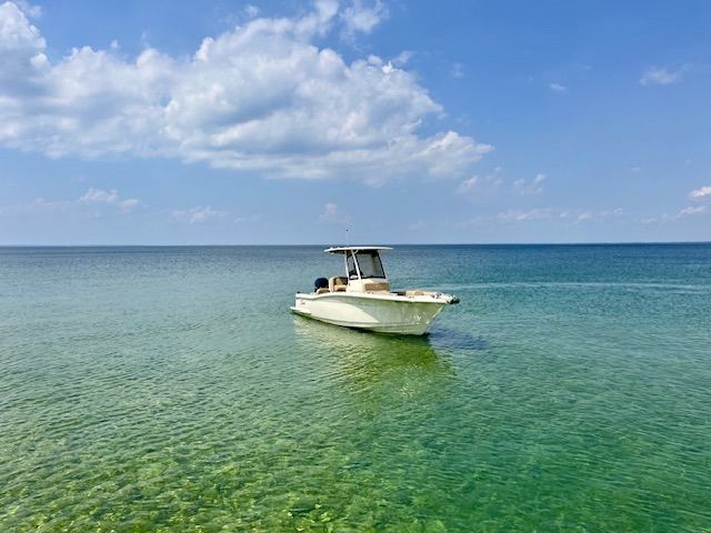 MERCURY VERADO 250 OUTBOARD – 250 HP – FIBERGLASS HARDTOP WITH SOLID FULL WINDSHIELD – WINDLASS ANCHOR – GARMIN GPS – UPGRADED BLUETOOTH STEREO WITH UPGRADED SPEAKERS – PORCELAIN HEAD – LIVEWELL WITH AERATOR – SNAP-IN SEA GRASS FLOORING – COVERS & ENCLOSURE – DOUBLE AXLE TRAILER – WALK-AROUND SWIM PLATFORM – BOX SEAT WITH LARGE STORAGE – LED INTERIOR LIGHTING – NON-SKID FLOORING – TOP SPEED 50 MPH +++
