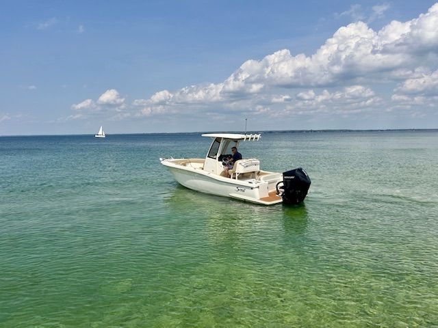 The 235 XSF is a versatile 23’8” center console that blends offshore capability with upscale comfort—featuring a hardtop with full windshield, modern helm electronics, thoughtful seating throughout, and an easy-to-use deck layout that works equally well for fishing, cruising, and sandbar days.