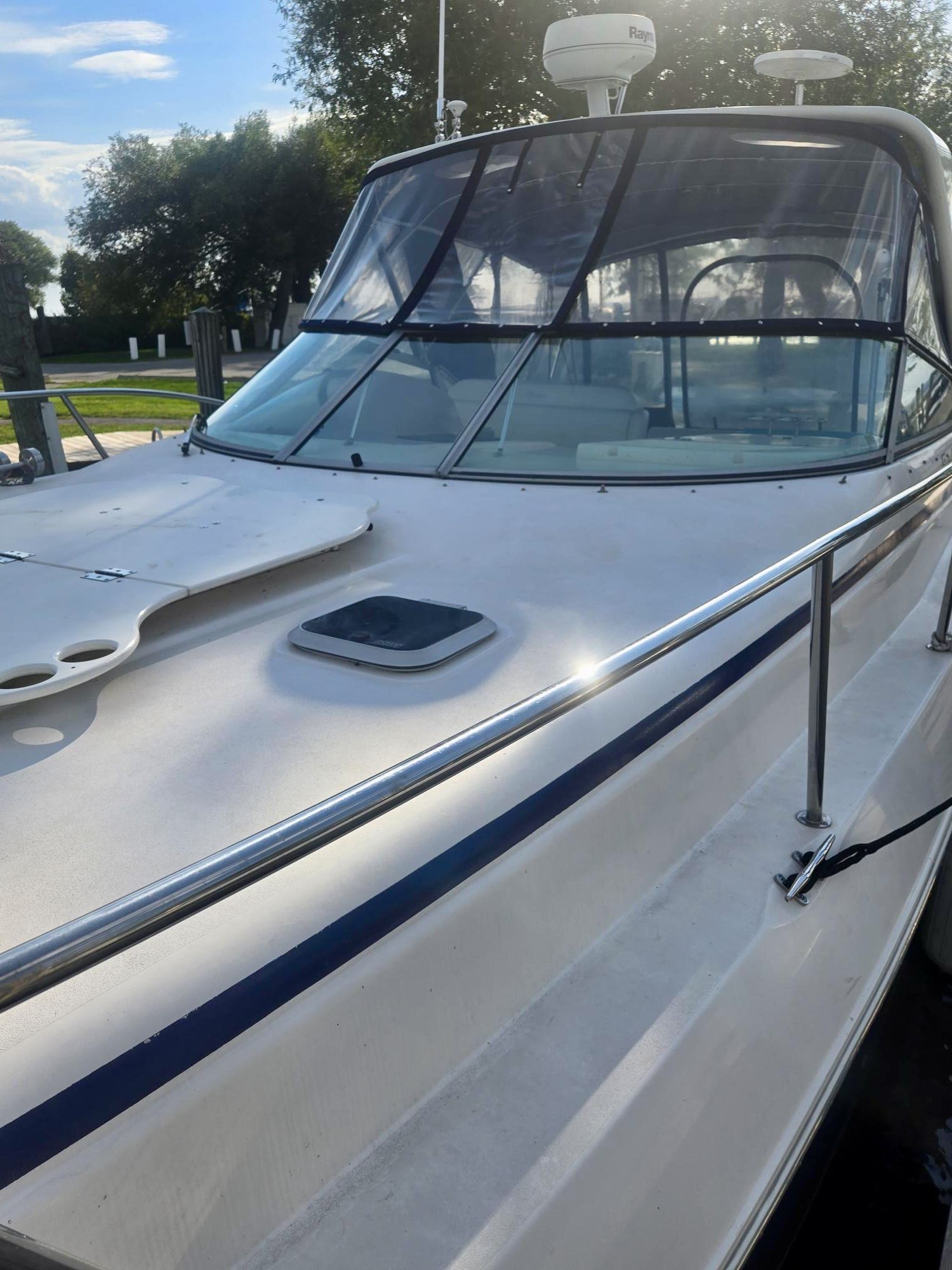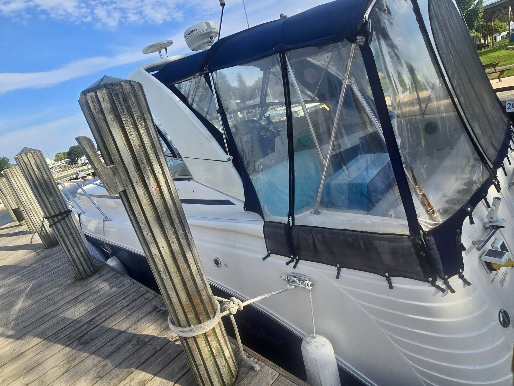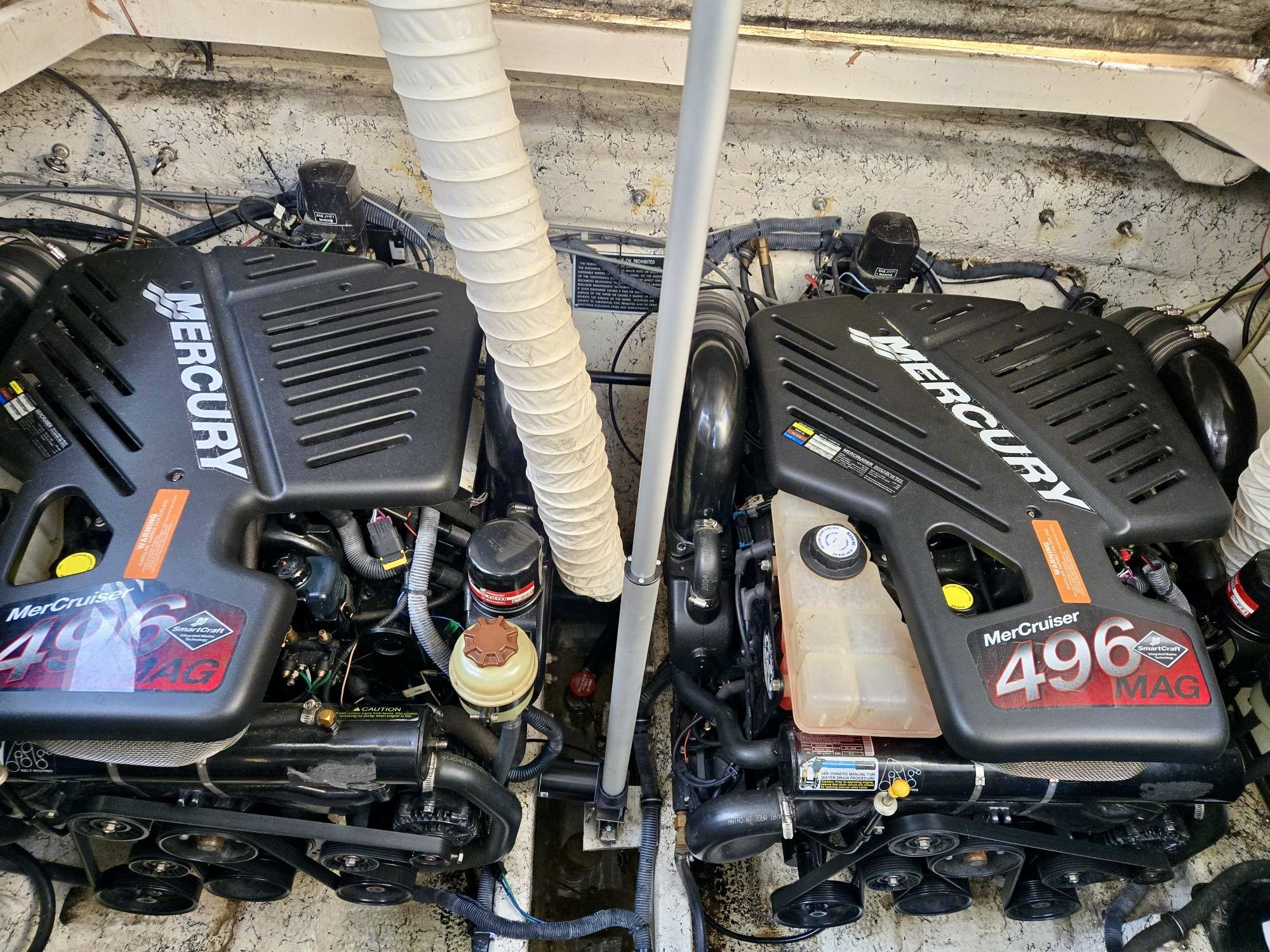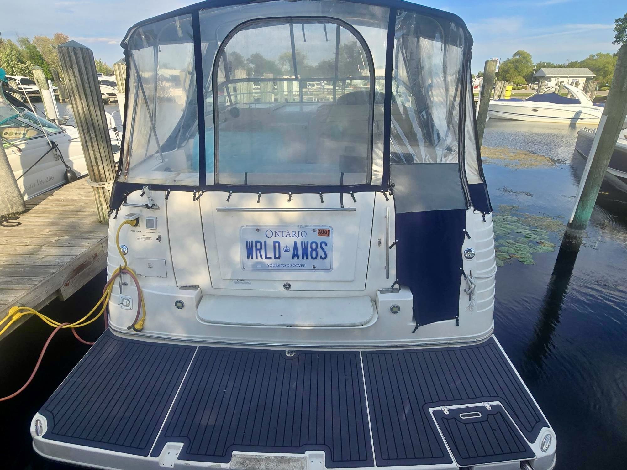 TWIN MERCRUISER 8.1L BIG BLOCK ENGINES – 750 HP – 540 HOURS – BOW THRUSTER 2023 – NEW FULL CAMPER CANVAS 2026 – EXTENDED SWIM PLATFORM – SEADEK FLOORING – KOHLER 5KW GENERATOR – WINDLASS – RAYMARINE C70 GPS – VHF – COCKPIT WET BAR W/ ICE-MAKER & FRIDGE – SLEEPS 6 PEOPLE – VACUFLUSH HEAD – FULLY ENCLOSED GLASS SHOWER – MARINE AIR 18,000 BTU REVERSE CYCLE A/C +++