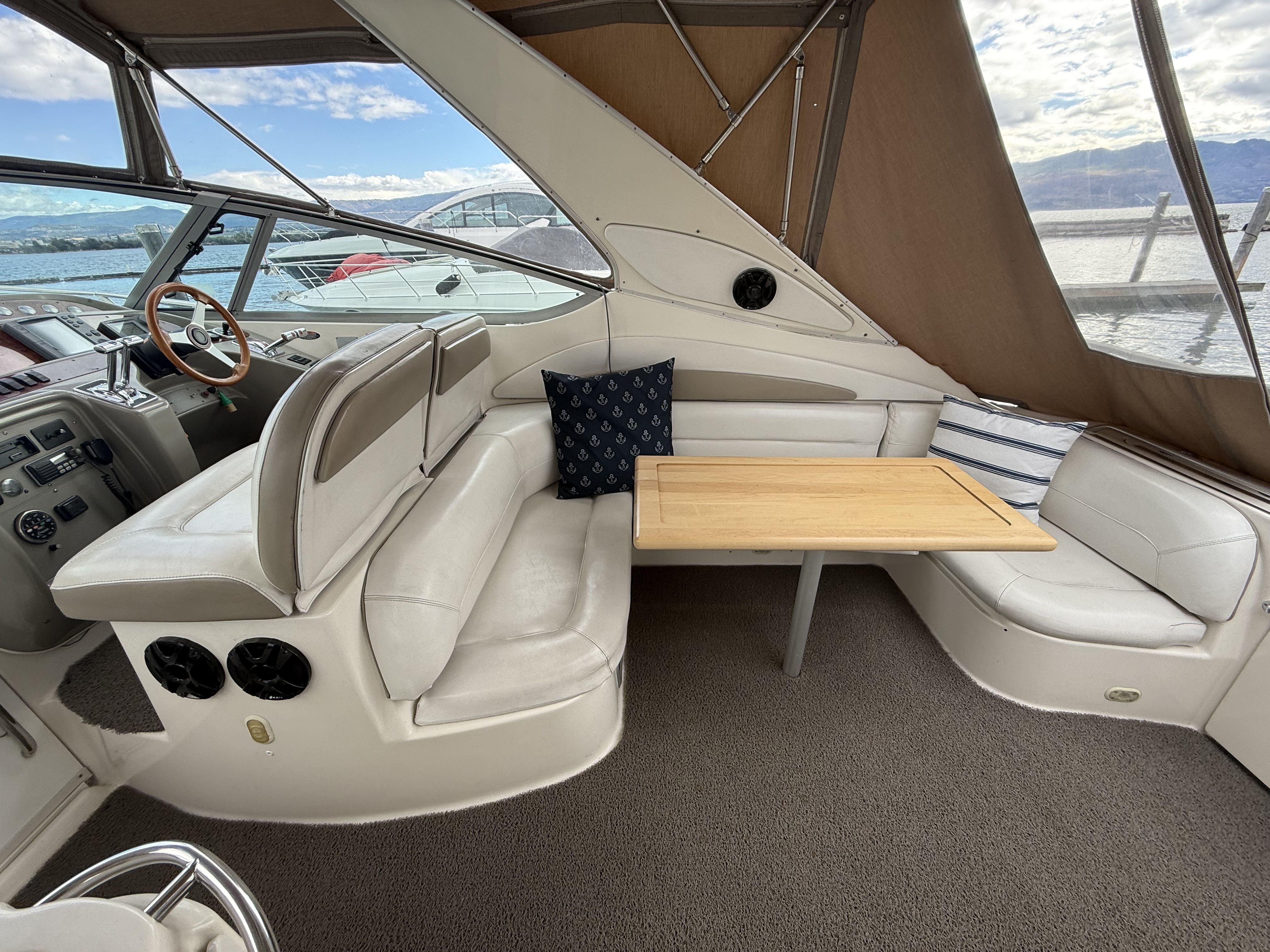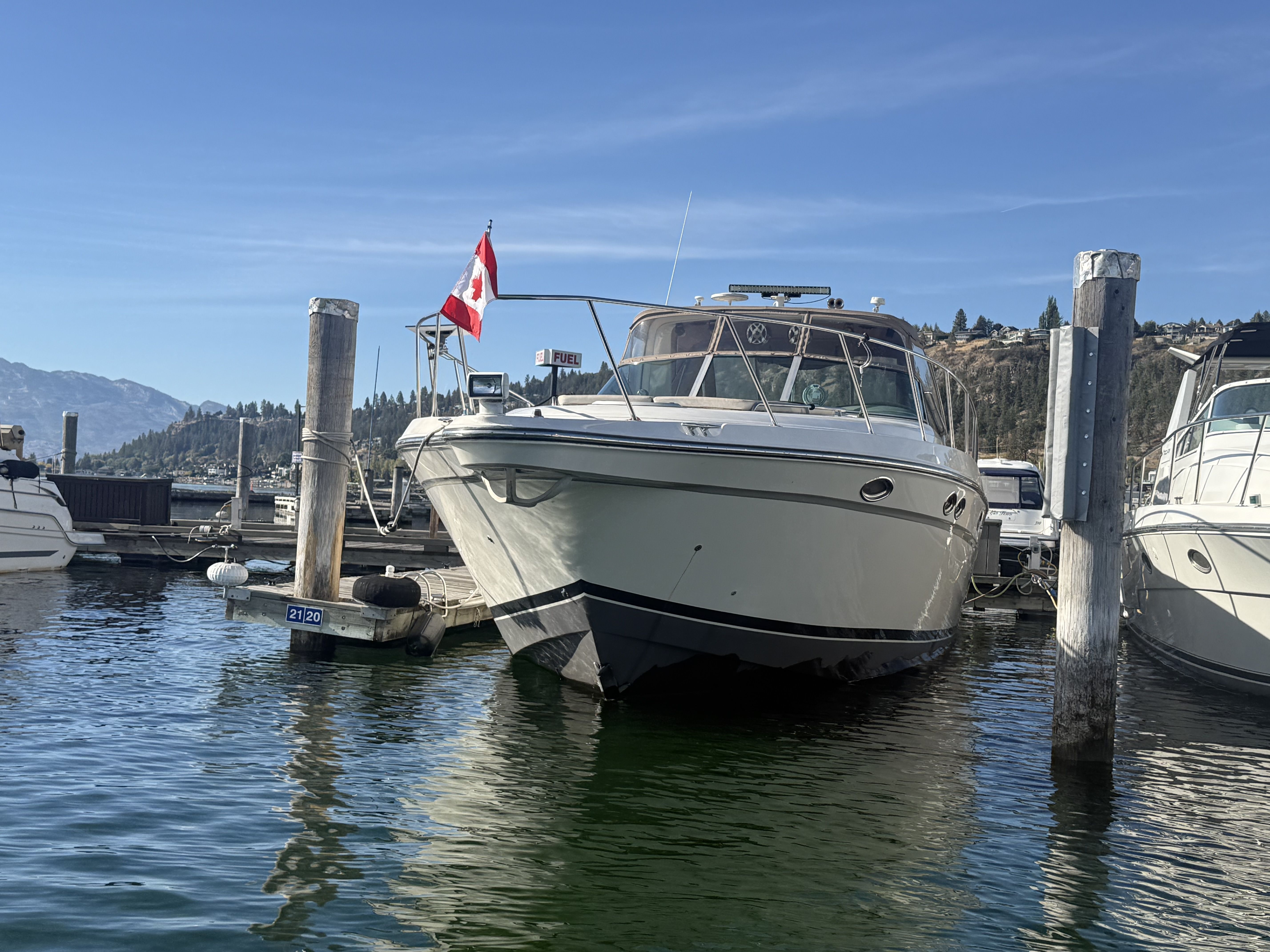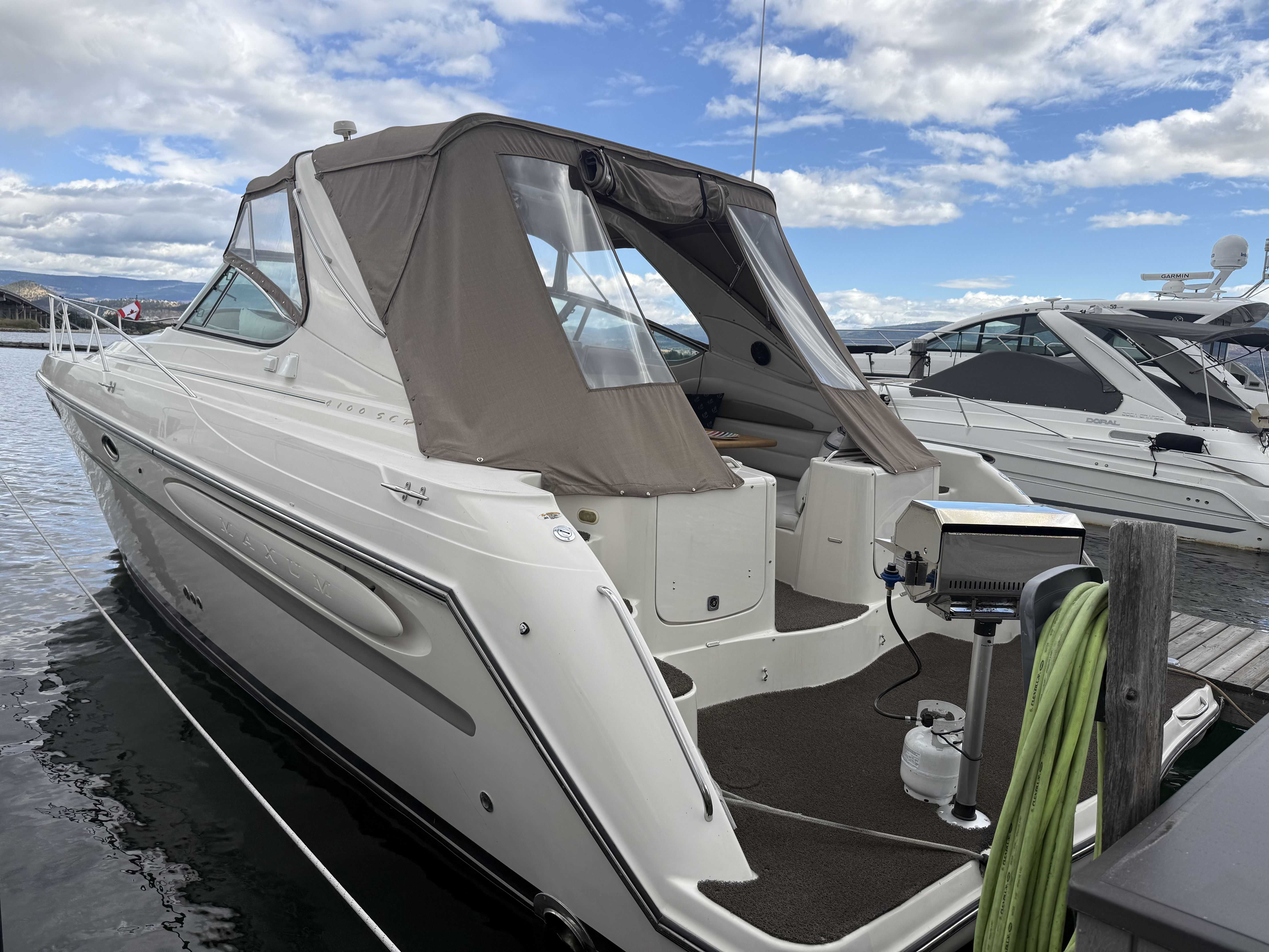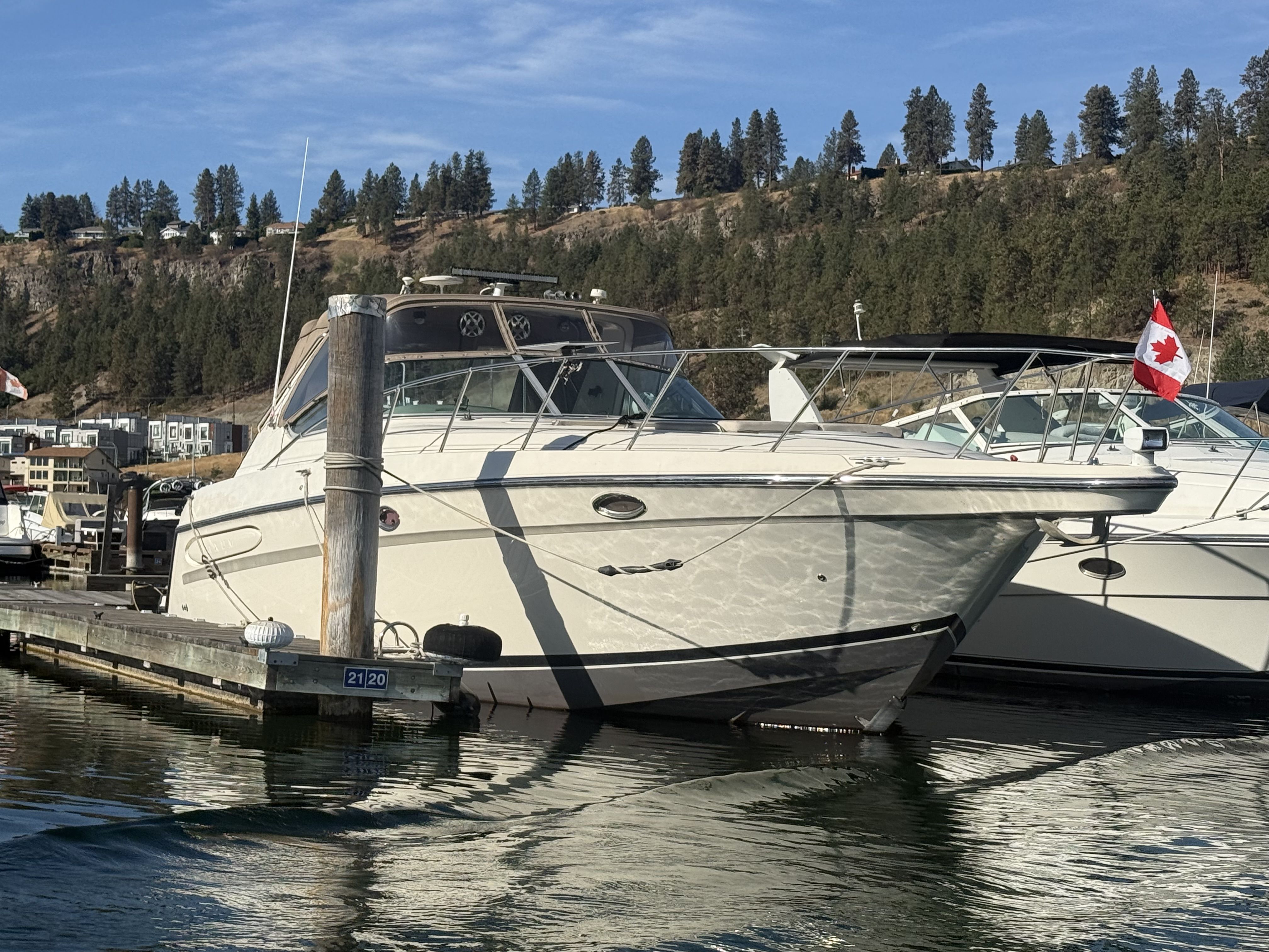 Experience timeless style and diesel reliability aboard this 1998 Maxum 4100 SCR, powered by twin Cummins 5.9L marine diesels (approx. 1,100 hrs) and an 8kW Westerbeke diesel generator. Moored at Shelter Bay Marina in Kelowna, this yacht has been professionally maintained, winterized, and upgraded throughout — a true turnkey diesel cruiser in exceptional condition.