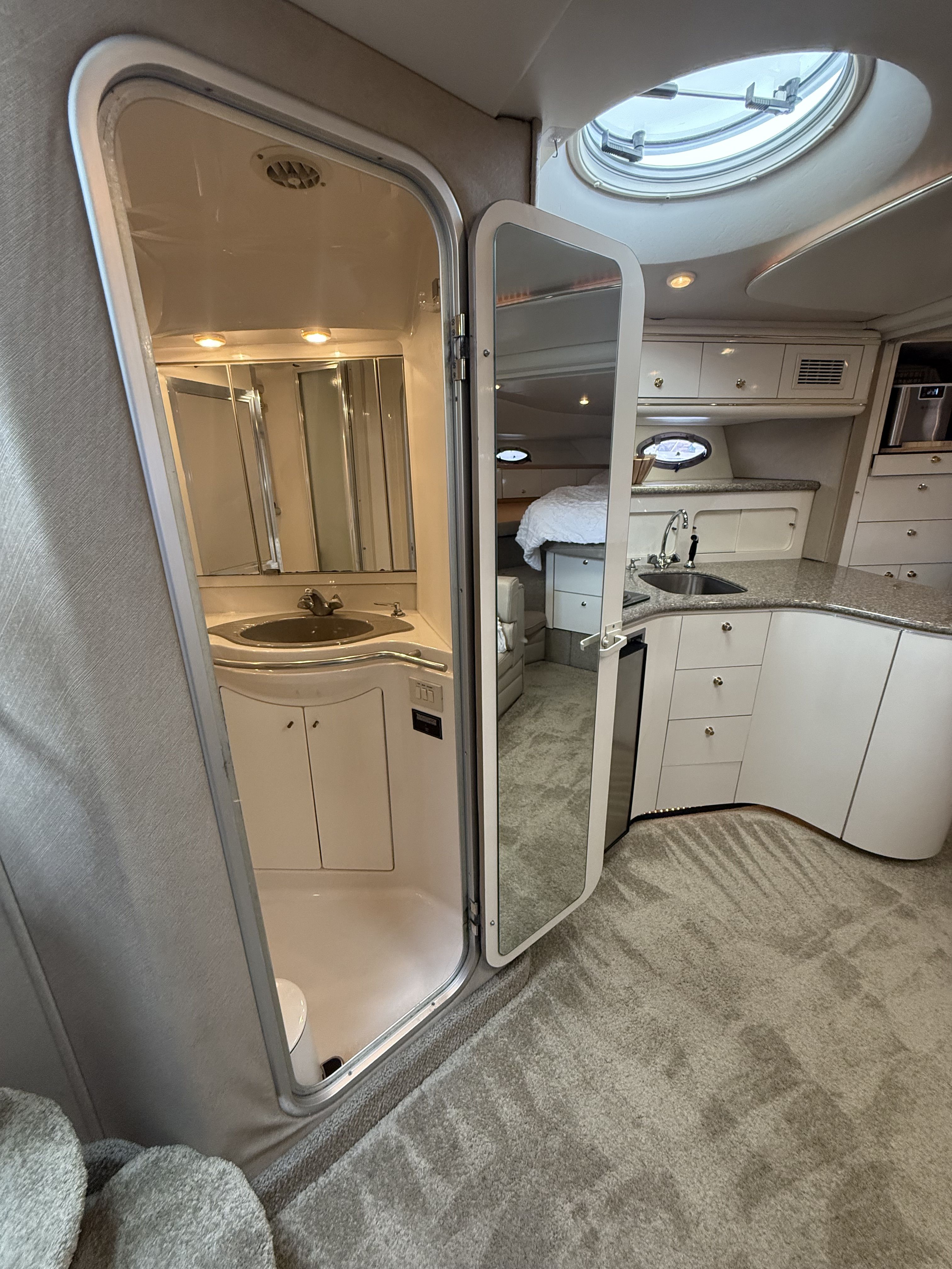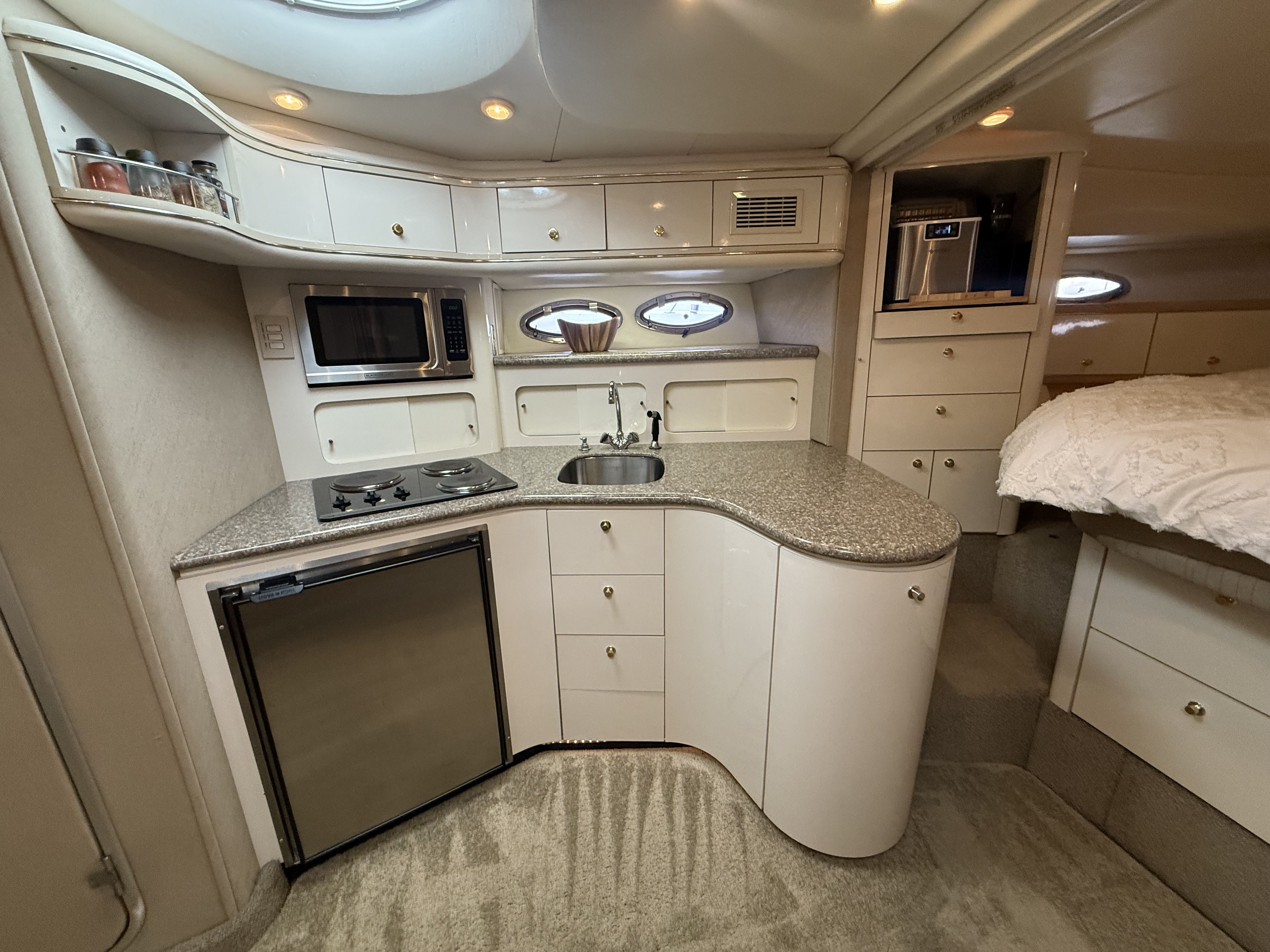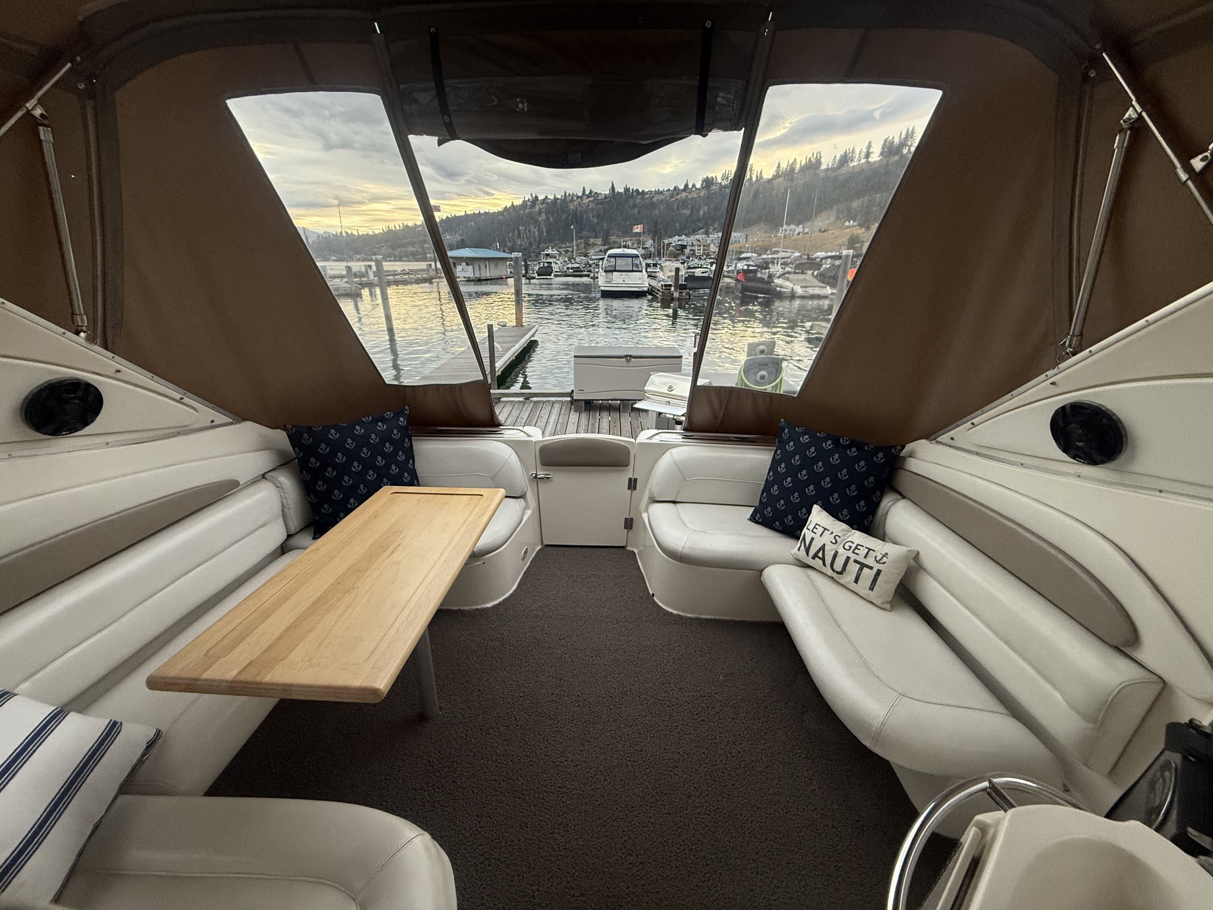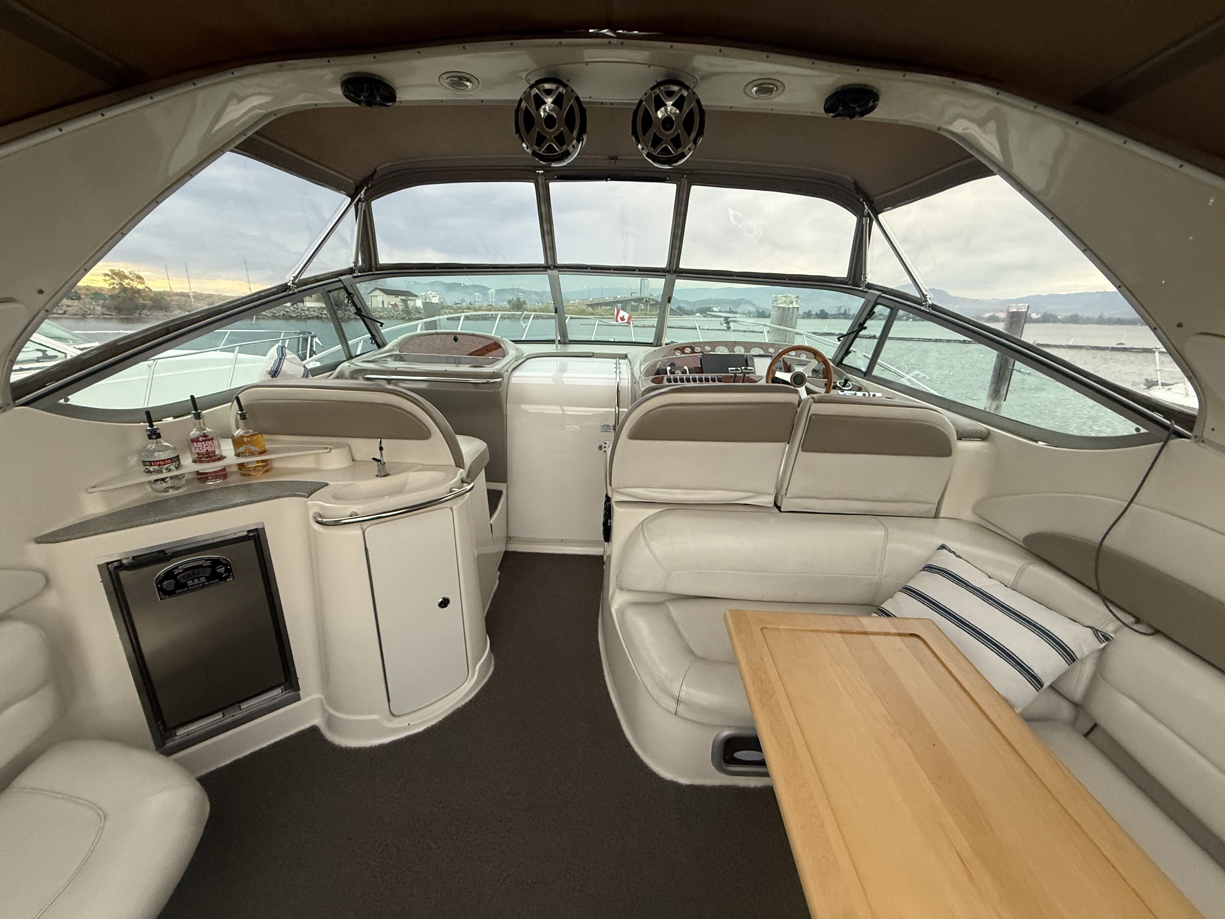 Experience timeless style and diesel reliability aboard this 1998 Maxum 4100 SCR, powered by twin Cummins 5.9L marine diesels (approx. 1,100 hrs) and an 8kW Westerbeke diesel generator. Moored at Shelter Bay Marina in Kelowna, this yacht has been professionally maintained, winterized, and upgraded throughout — a true turnkey diesel cruiser in exceptional condition.