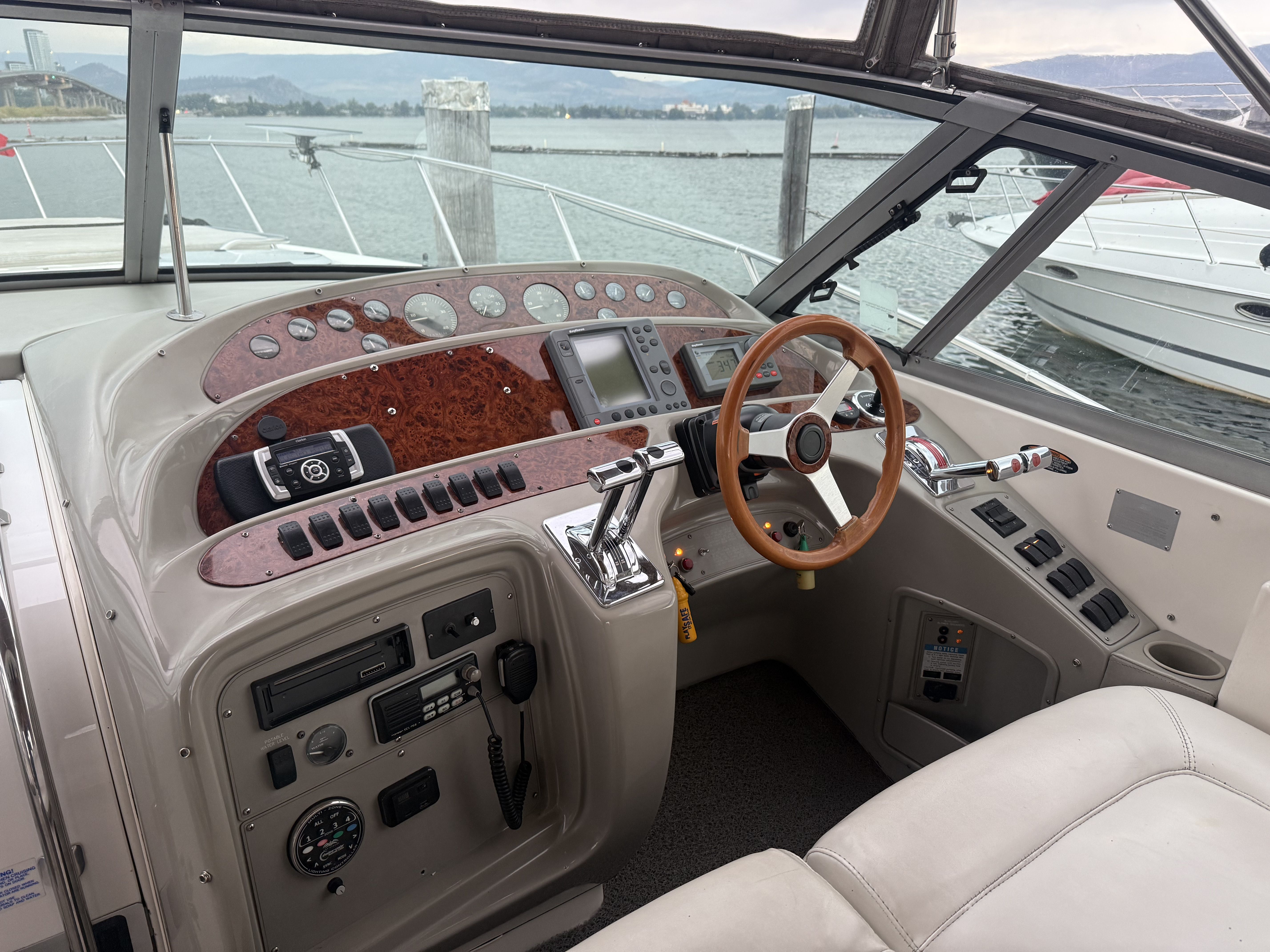 This Maxum 4100 SCR combines diesel performance, refined comfort, and extensive upgrades that rival far newer yachts. A rare opportunity to own a fully equipped, turn-key cruiser on Okanagan Lake. This yacht has been professionally maintained and stored under shrink wrap for winter. She is due to be launched in Early March, moorage may be transferrable to qualified buyer. Book your private viewing today!