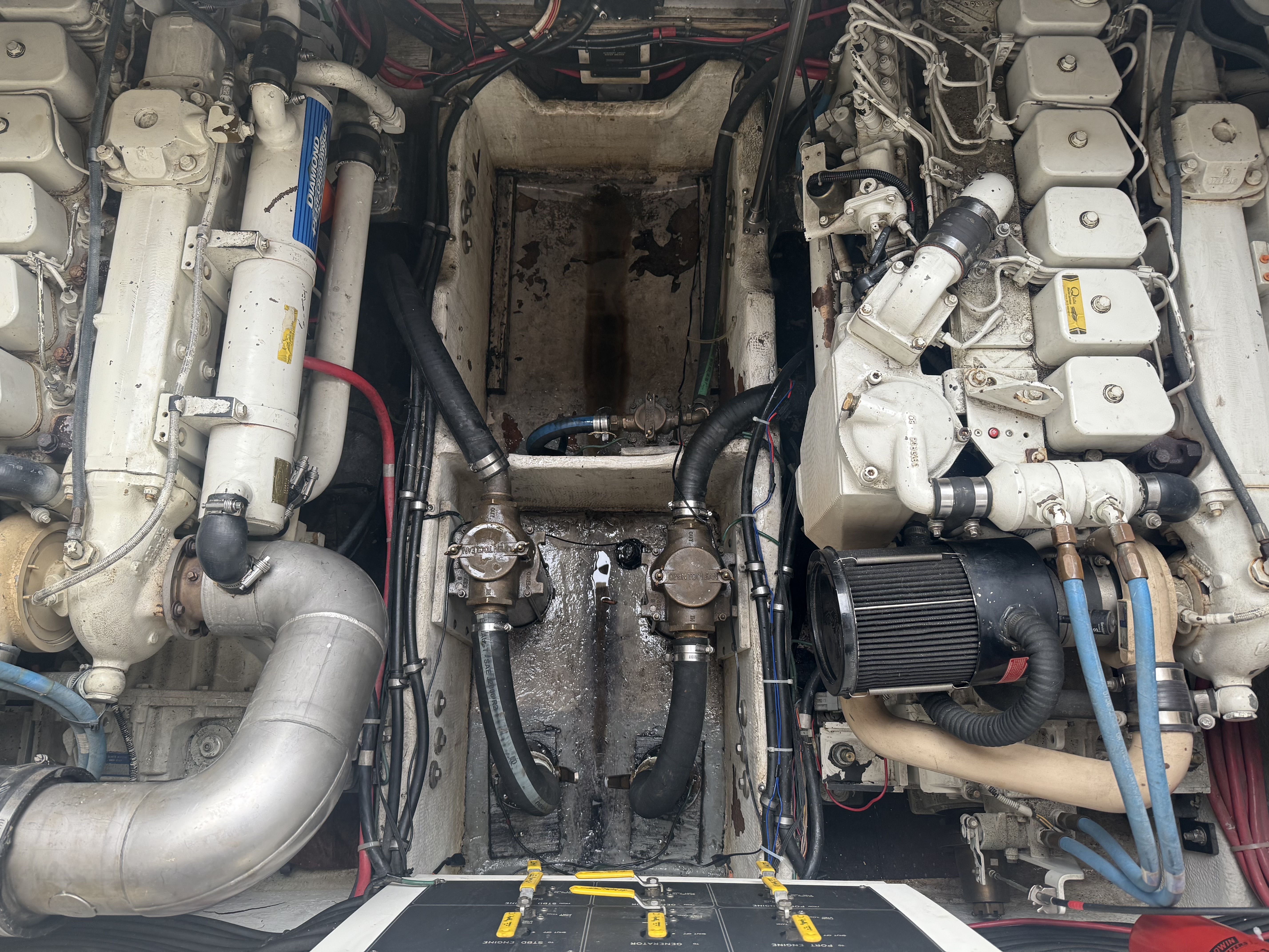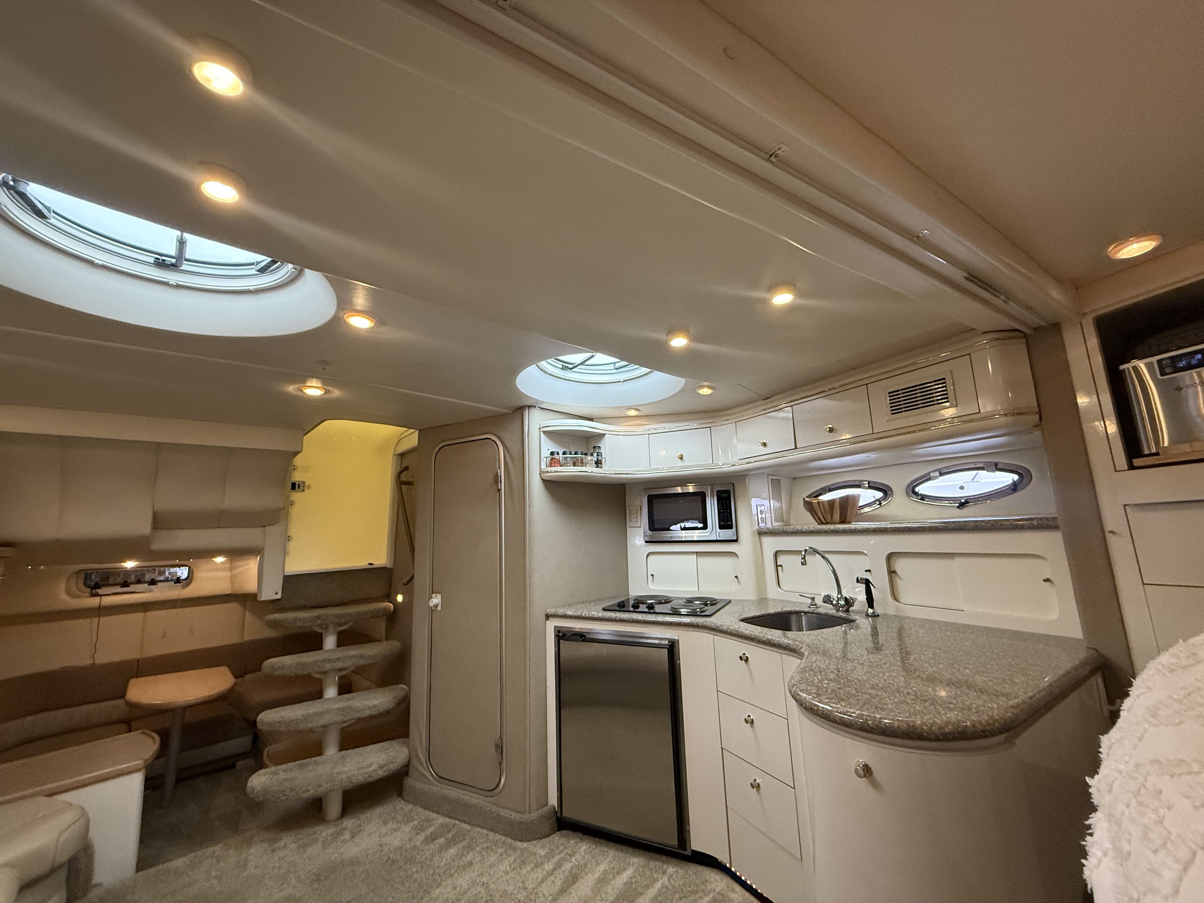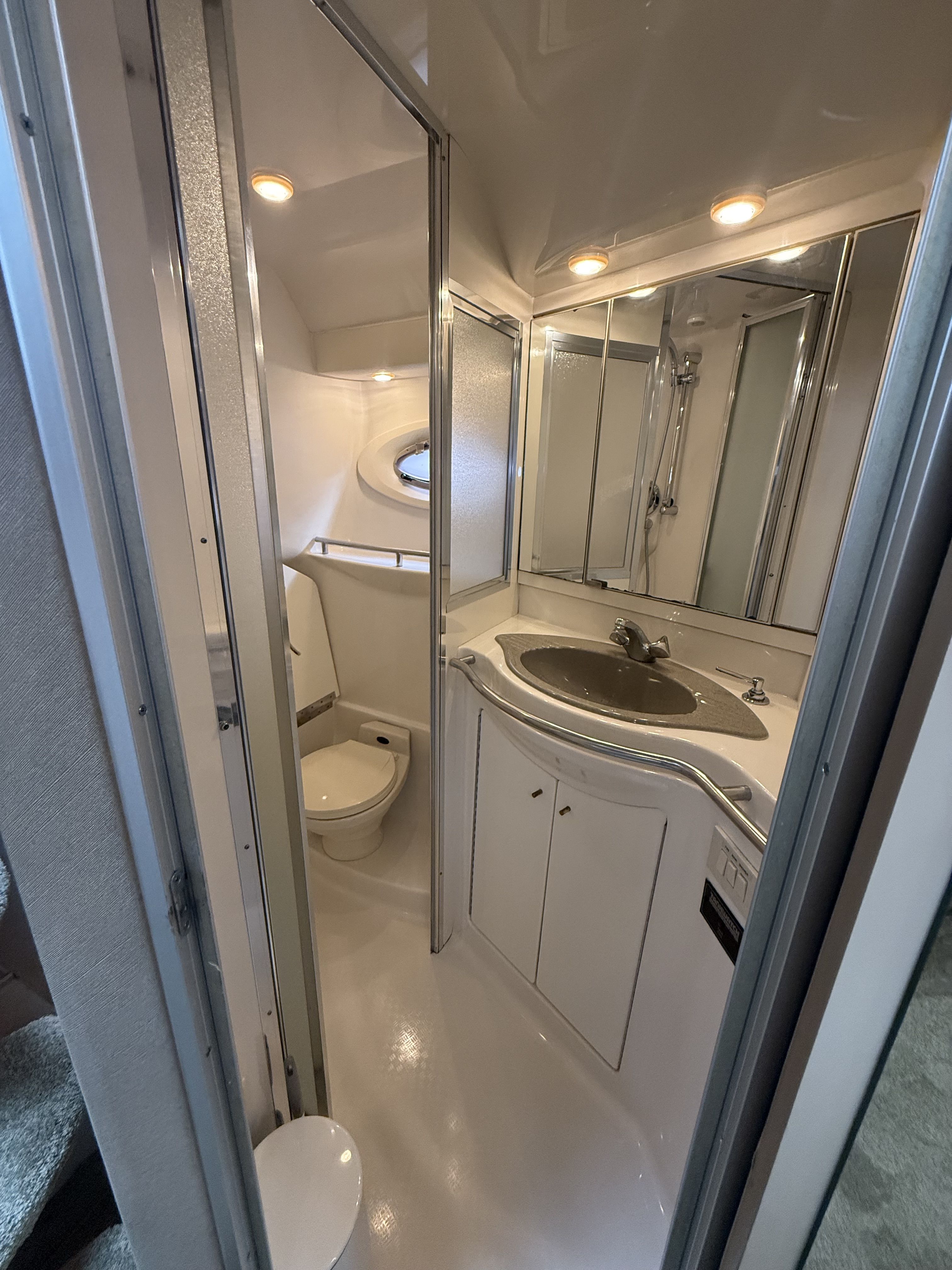 Highlights & Recent Upgrades • Twin Cummins 5.9L Marine Diesels – 1,100 hours, freshly serviced • 8kW Westerbeke Diesel Generator – reliable, quiet onboard power, freshly serviced • Over $5,000 in New AGM Batteries Installed (2025) – 9 total • Full Oil Change on Main Engines & Generator (2025) • New Bow Thruster in 2025 for effortless docking. • New Bottom Paint & New Props (2025) • New Fiberglass & Gelcoat Repairs (2025) – professionally restored finish and full polish. • New Enclosure Isinglass (2025) – crystal-clear visibility • New Custom Table Tops & Swim Ladder (2025) • Premium Exile Audio System – amps, speakers, subs, and LED lighting (app controlled) • LED Mood Lighting in cockpit and warm mood lighting in the saloon + Light Bars for Night Cruising (2025) • New Fridges (Galley & Cockpit) and New Microwave (2023-2025) – all stainless steel • Wet Bar with Bottle Storage, Sink, and Bar Fridge • Ice Maker and Keurig Coffee Maker in Galley (2025) • Forward Sun Pad, Bimini, and Camper Enclosure. The Maxum 4100 SCR offers generous space for entertaining and extended stays aboard: • Seating for 10+ with double bench seats forward and facing settees aft (each with removable table options) • Spacious cockpit with abundant storage and wet bar amenities • Two cedar hanging lockers for wardrobe and storage needs • Mid-cabin interior features a U-shaped lounge that converts to a comfortable berth • Two A/C units with reverse cycle heat – enjoy all-season comfort • Ample storage throughout, including galley cabinets, lockers, and under-seat compartments.