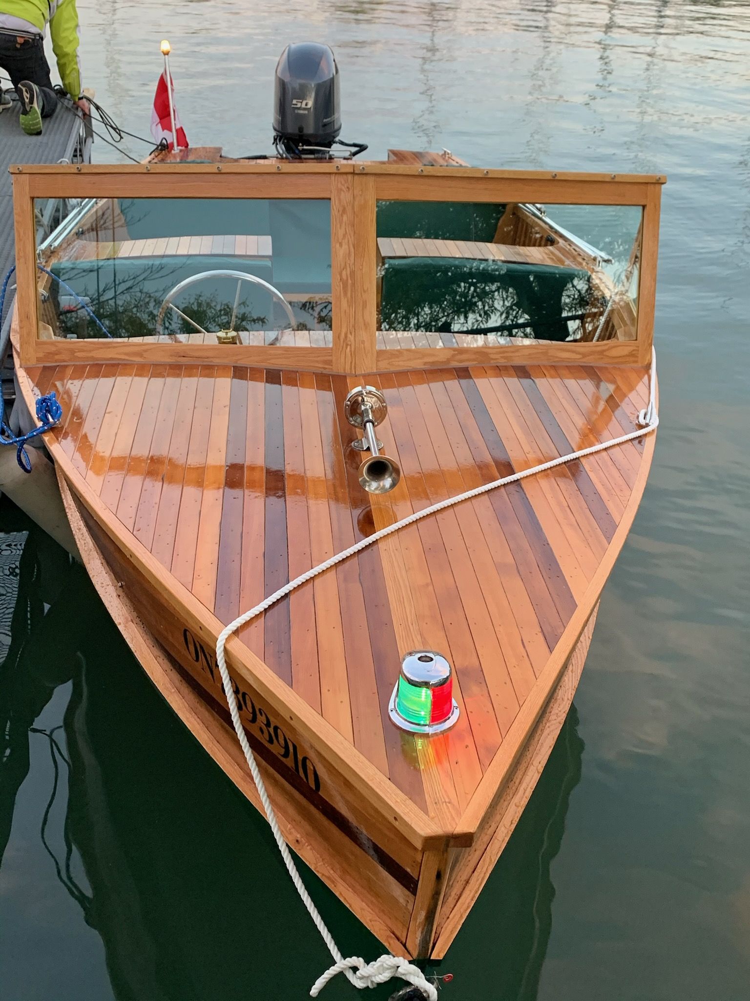 Completed in 2020, the boat comes with full documentation providing clear transparency and confidence for the next owner. True custom cedar-strip runabouts of this quality occupy a niche market where craftsmanship, provenance, and condition matter far more than simple age or horsepower comparisons.