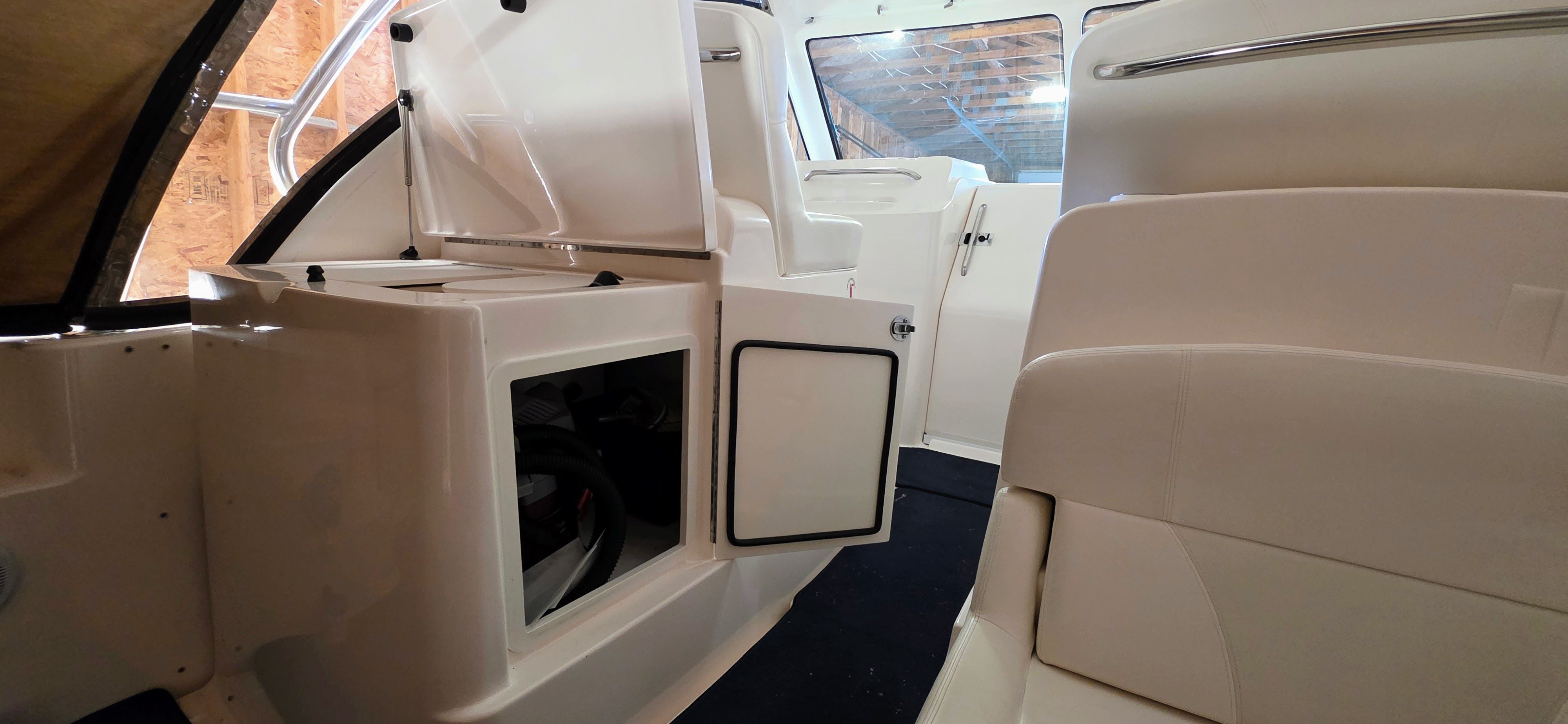 The 3000 Open represents Tiara’s practical approach to express cruisers — a design that’s focused on ease of use, cockpit space, and a well‑laid‑out cabin below. With a 12’6” beam, the cockpit feels larger than many boats in this size range, with room for socializing, fishing, or cruising. The walkthrough windshield, generous storage, and thoughtful placement of amenities are hallmarks of this model.