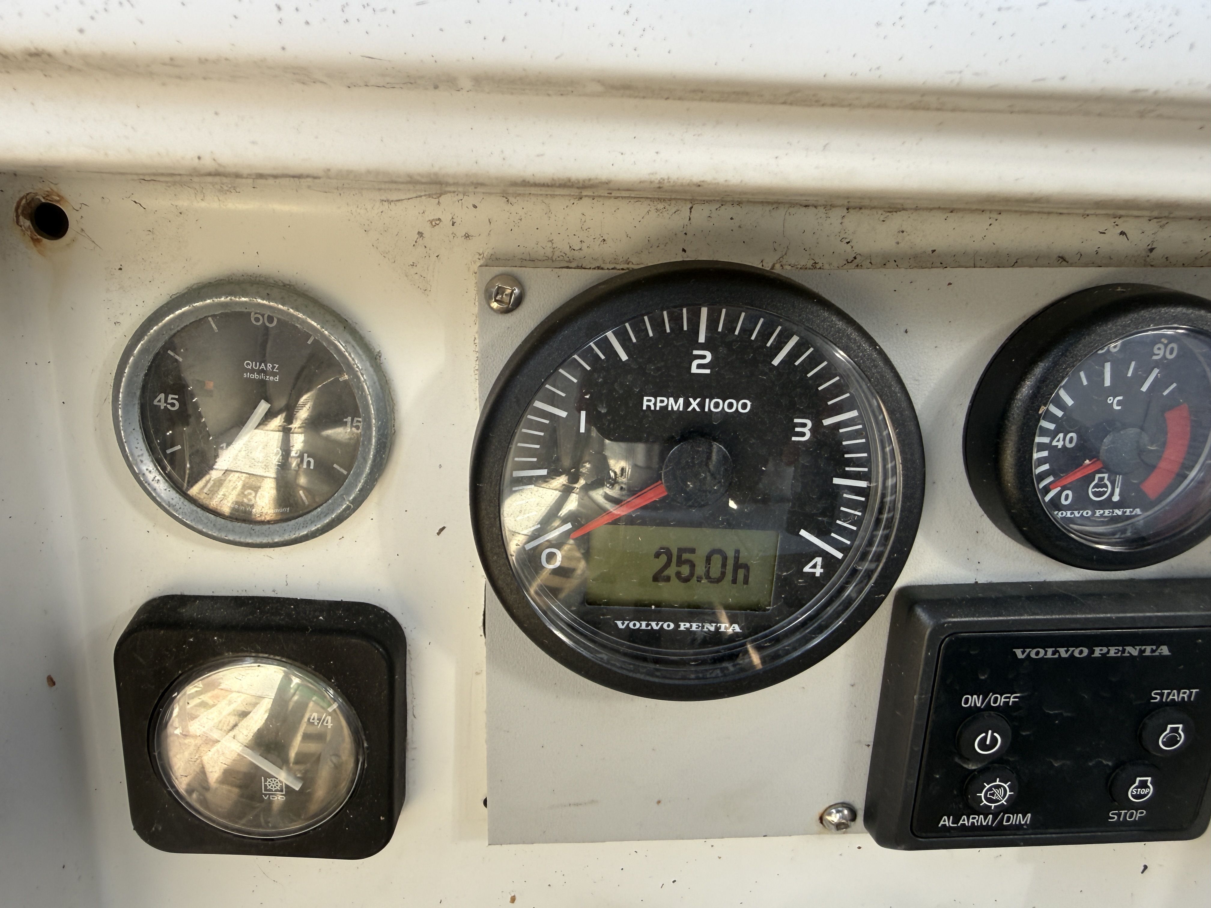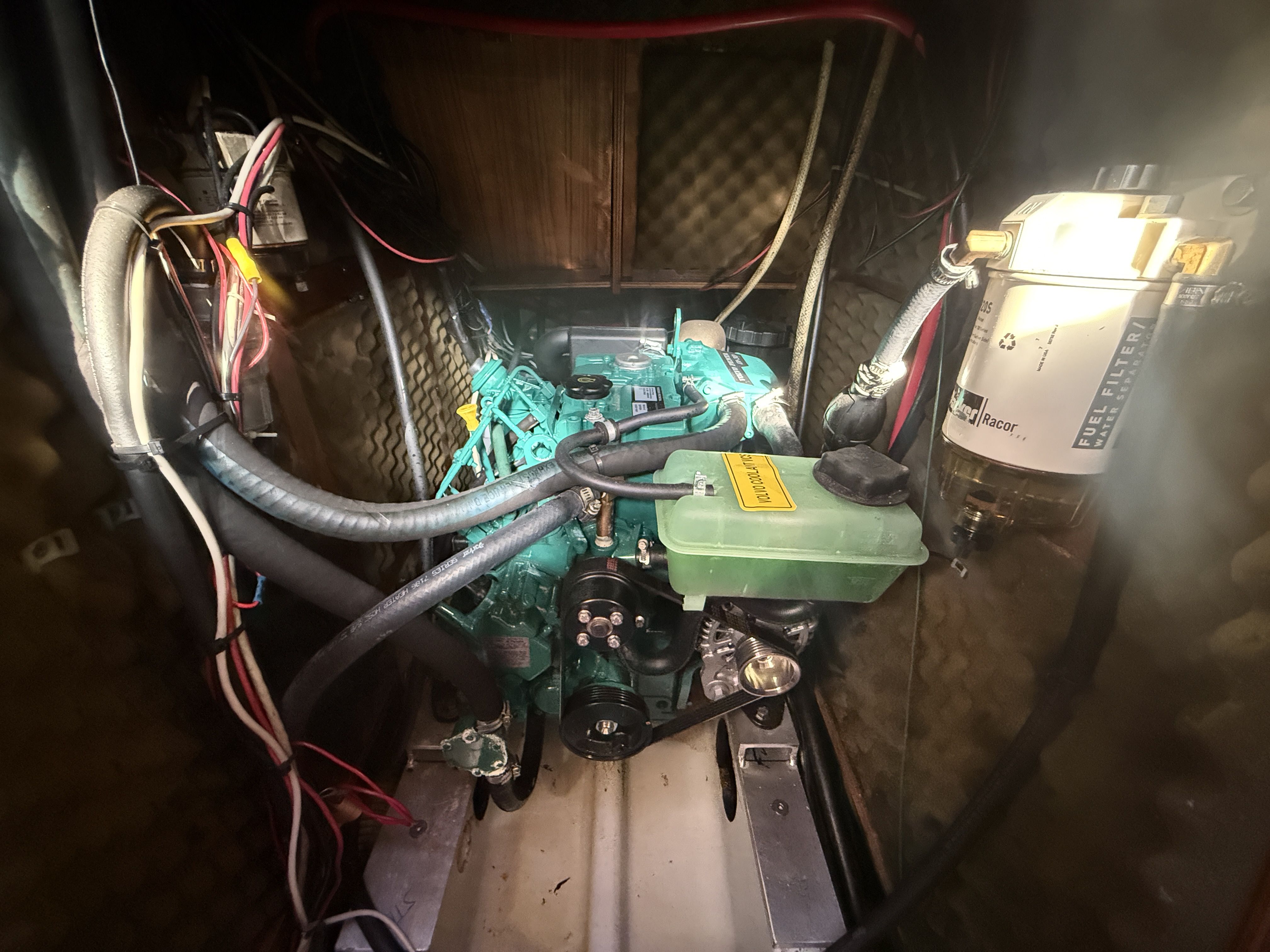 A major highlight of this vessel is the 2024 repower with a Volvo Penta D1-30F diesel engine, currently showing approximately 25 hours. This modern direct-drive inboard provides reliability, efficiency, and long-term service confidence. The fuel tank was replaced in 2024, and new batteries were also installed in 2025, significantly enhancing the vessel’s mechanical profile.
