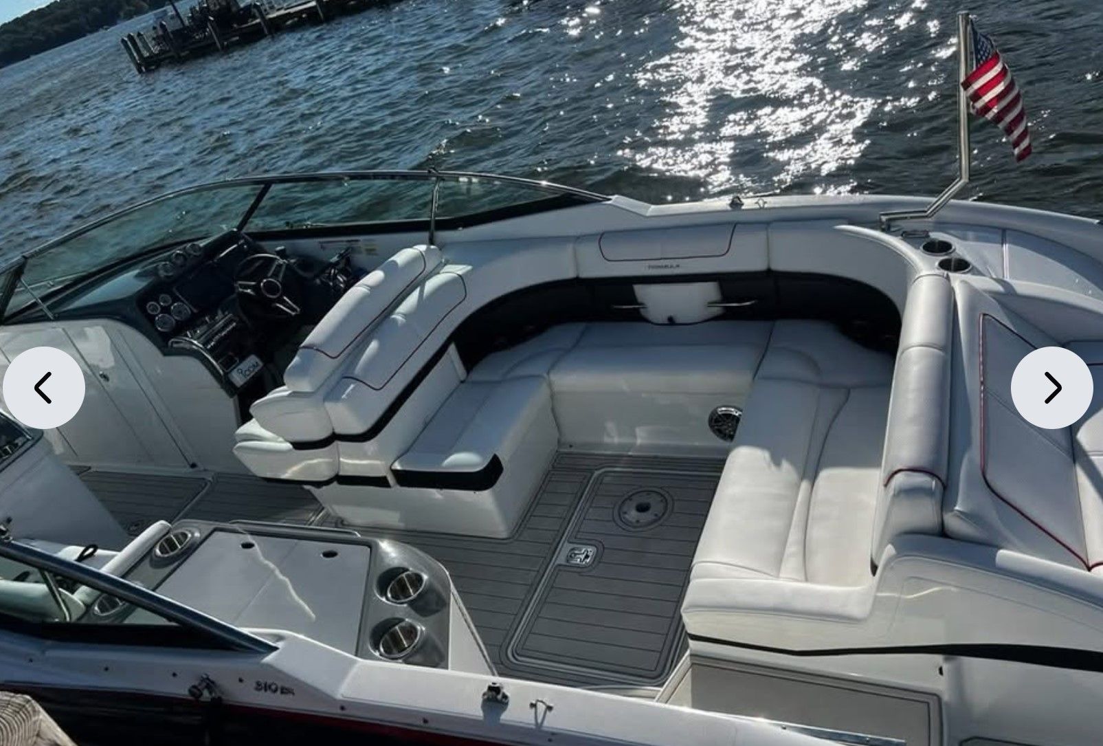 Experience the Formula difference! That difference is the result of finetuned design, authentic craftsmanship, and a companywide insistence on excellence. It means you'll enjoy more priceless moments with family and friends each time you are on the water! The Formula 310 is a roomy and comfortable premium day boat with a classic interior. The 310 is Formula's flagship bowrider, an upscale sport boat with outstanding performance and plenty of seating and amenities, including a high performing stereo, stowable table, sun pad, and ski/wakeboard storage. Powered by two (2) MerCruiser 8.2 Mag engines, each delivering 380 horsepower, this boat delivers effortless power and handing with ease of maneuverability through joystick controls at the dock. A well-appointed head makes it convenient for everyone to enjoy long days on the water surrounded by flexible lounge style seating, a full bimini top for shade, multiple cupholders, and five (5) double USB ports for all your devices. Fun fact: The original owner of this two-owner vessel happened to be the owner of Formula Boats - and was made to his specifications! An adjustable, Loadmaster tri-axle trailer is negotiable. Located in Edwardsburg, MI.