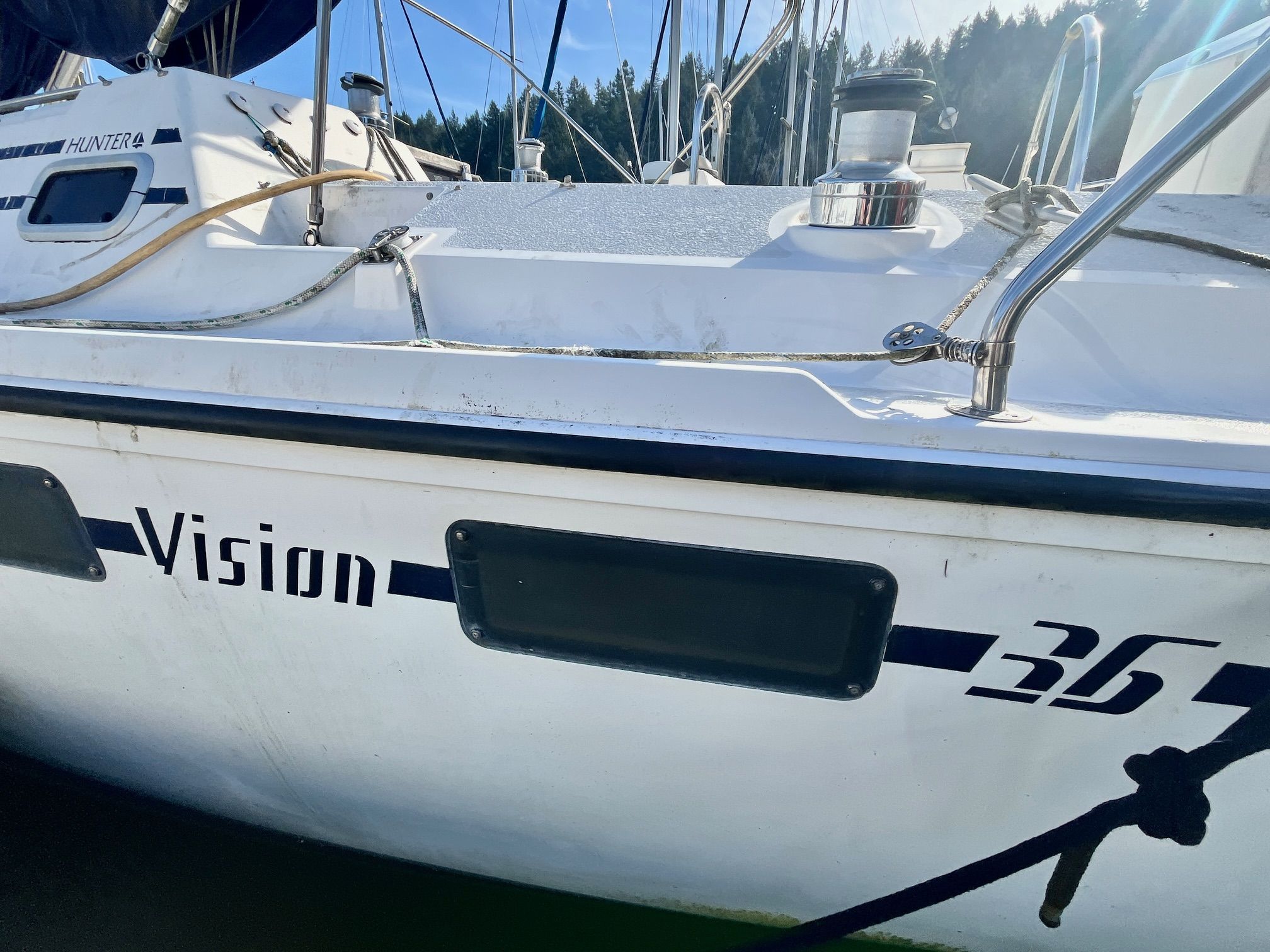 The 1991 Hunter Vision 36 is a 36-foot cruising sailboat built by Hunter Marine that’s best known for its unique free-standing fractional sloop rig (no backstay) and wing keel.. With a spacious interior featuring two private cabins, a roomy salon and full galley, a large aft cockpit, and a reliable Yanmar inboard diesel, the Vision 36 blends comfortable accommodations with easy-to-manage sailing performance and practical features like a sugar-scoop transom for water access