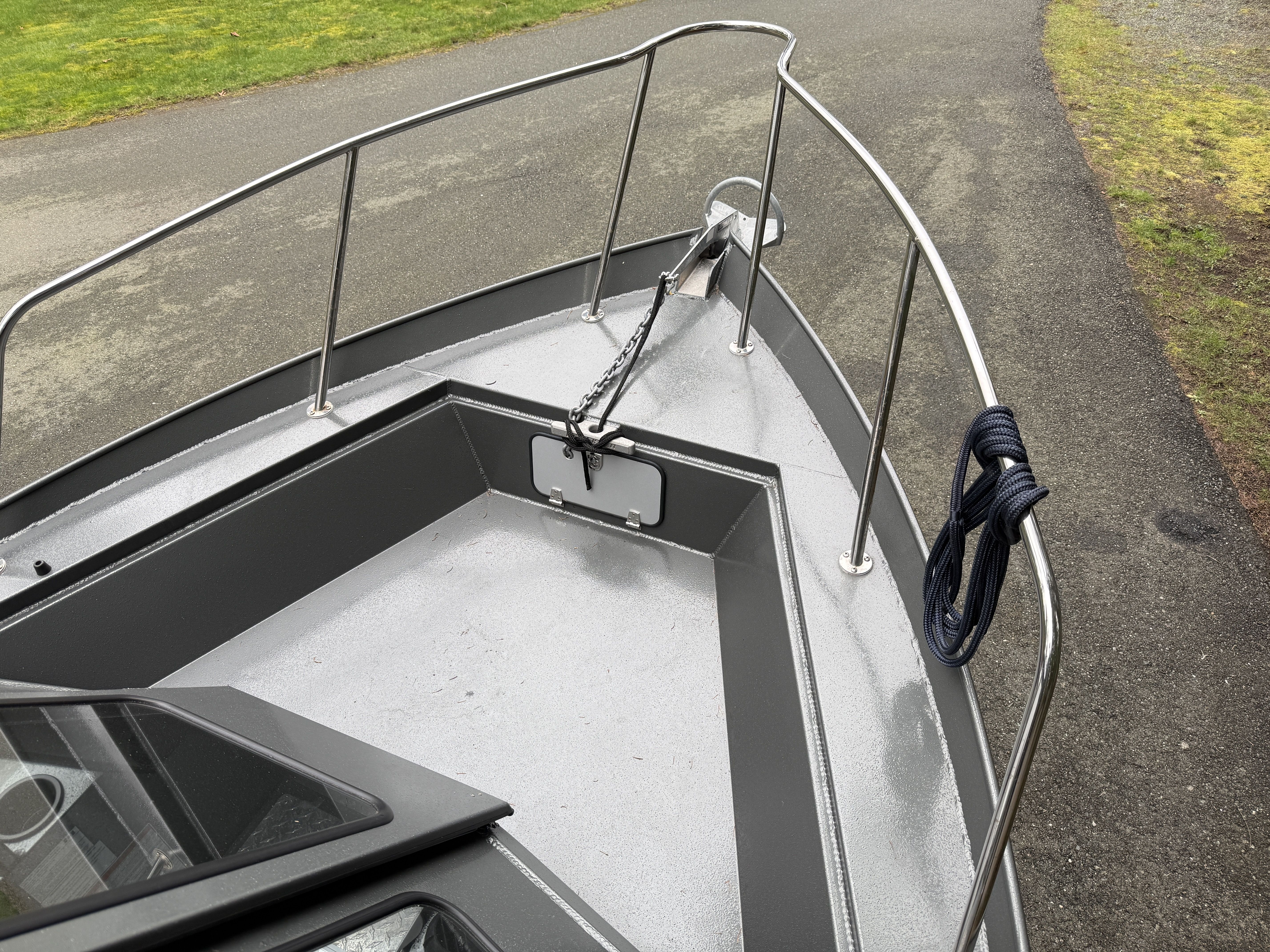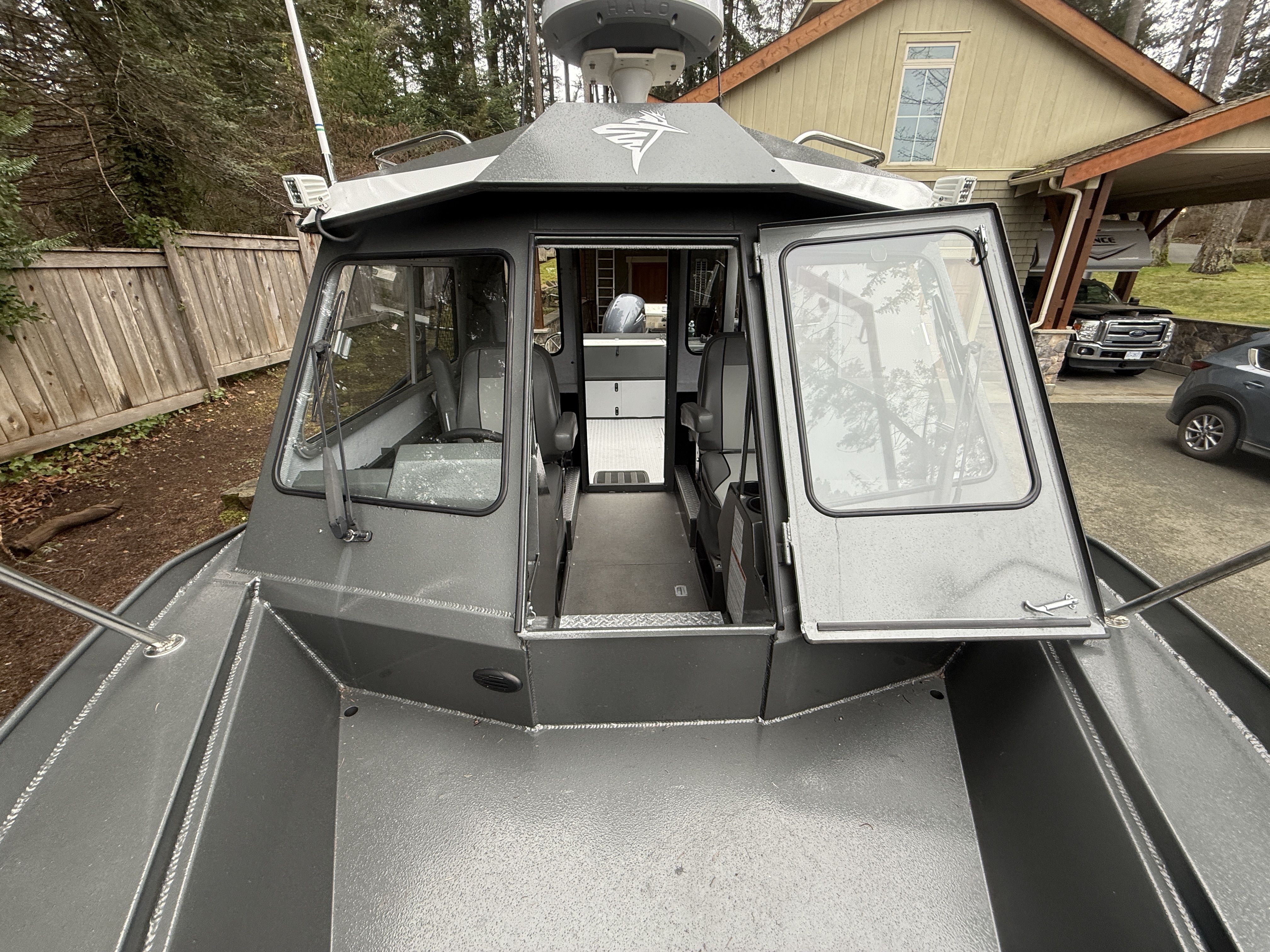 The 2225 Escape HT is built with heavy-gauge welded aluminum construction and designed for offshore capability while maintaining comfort and protection inside the enclosed hardtop cabin.