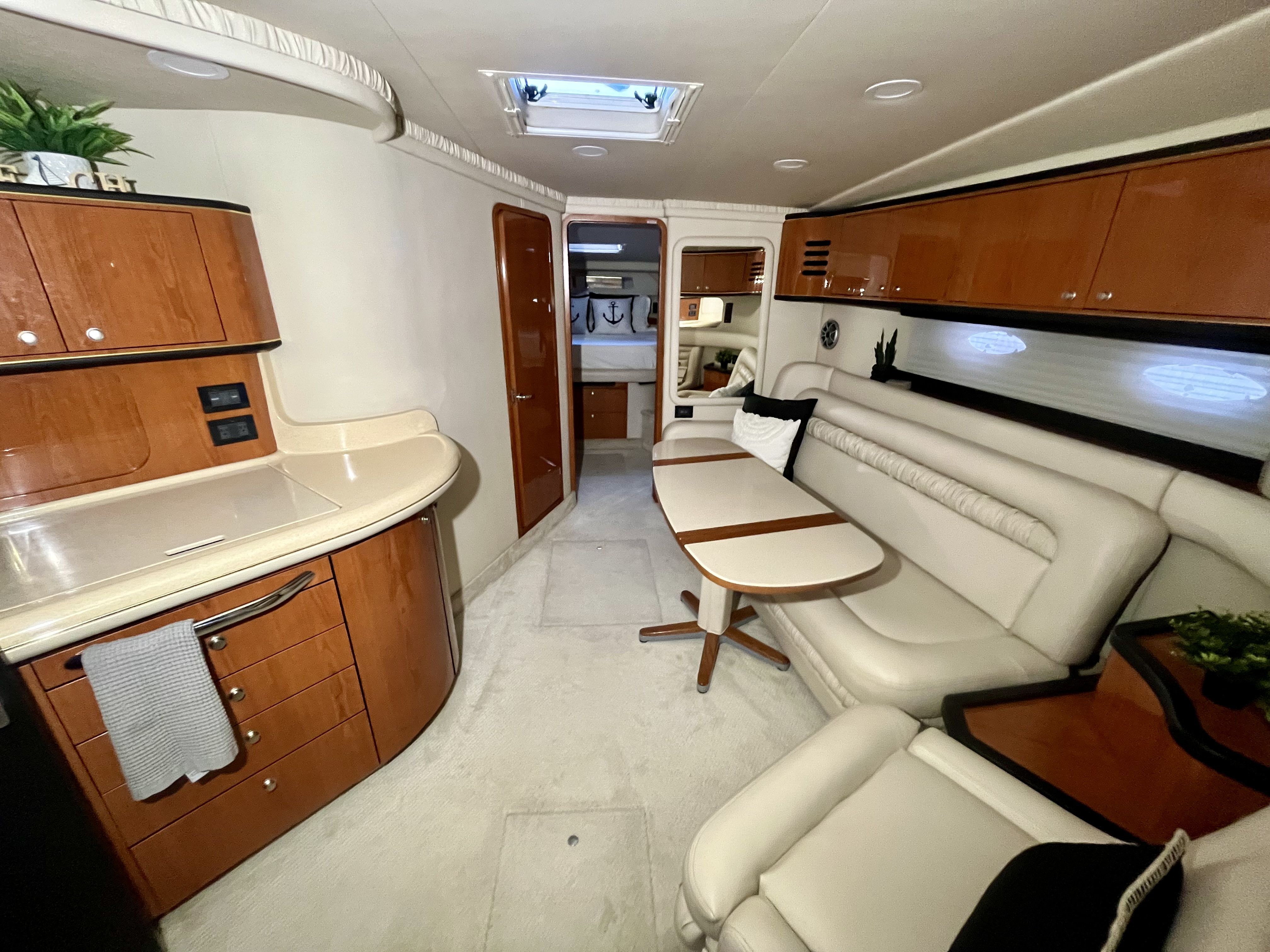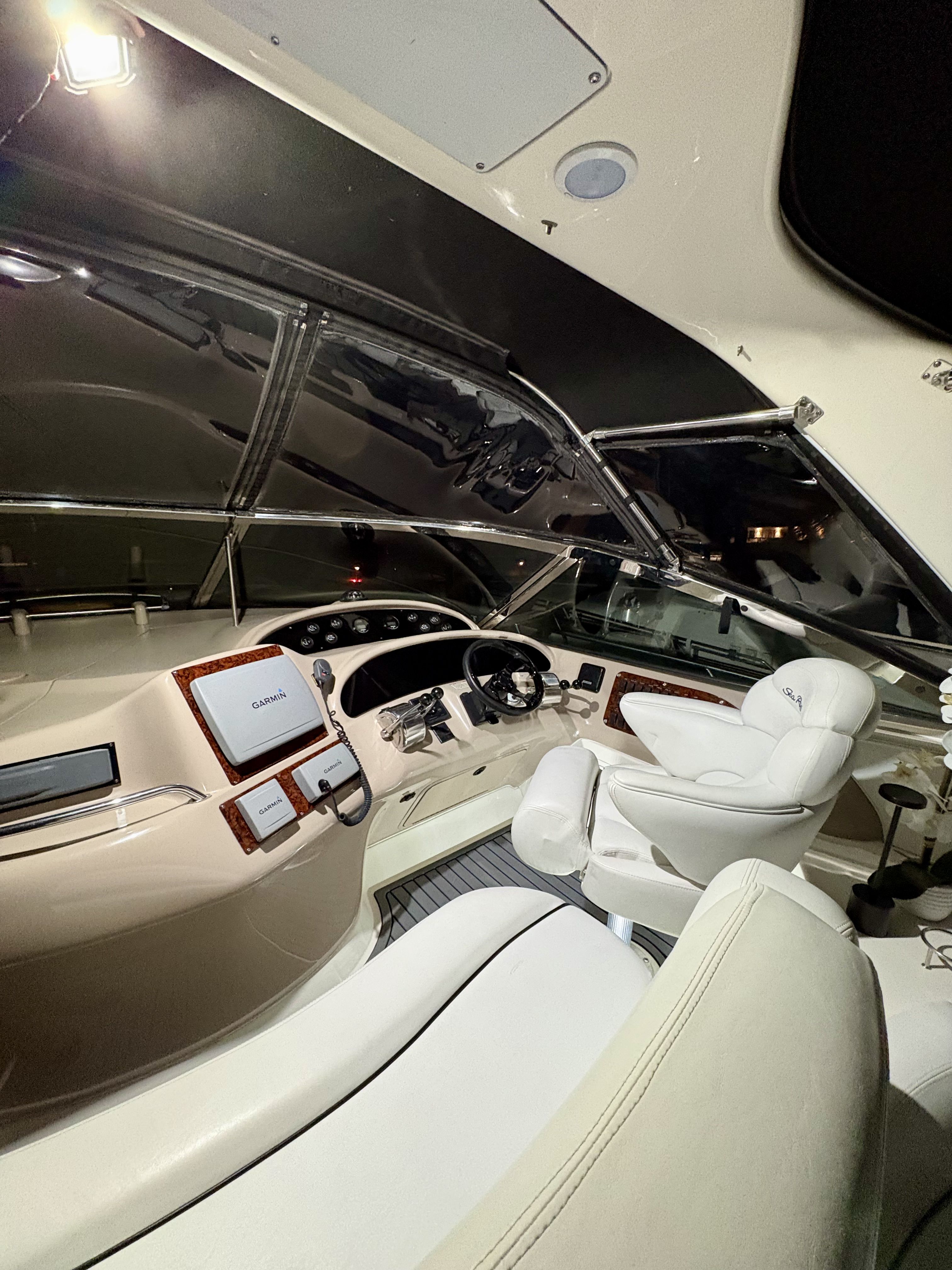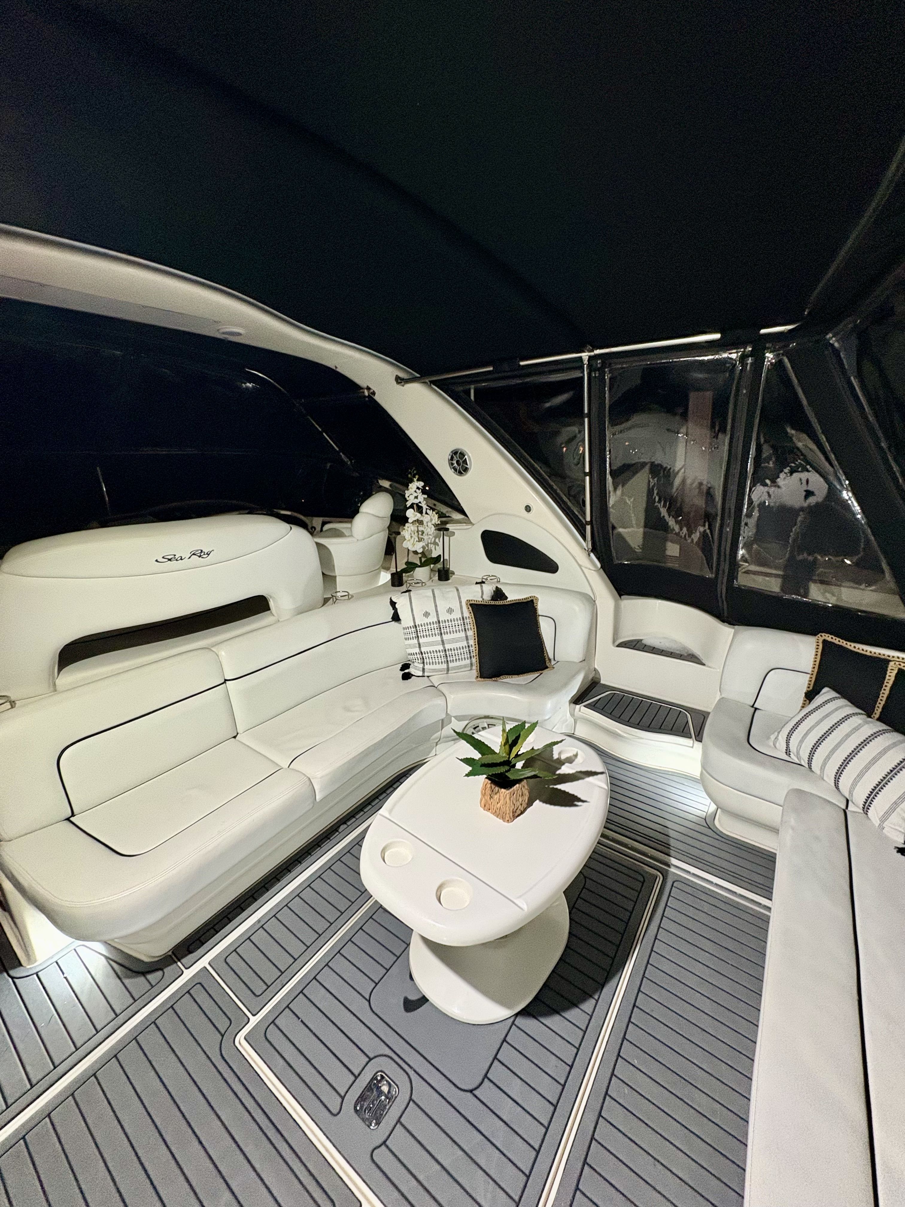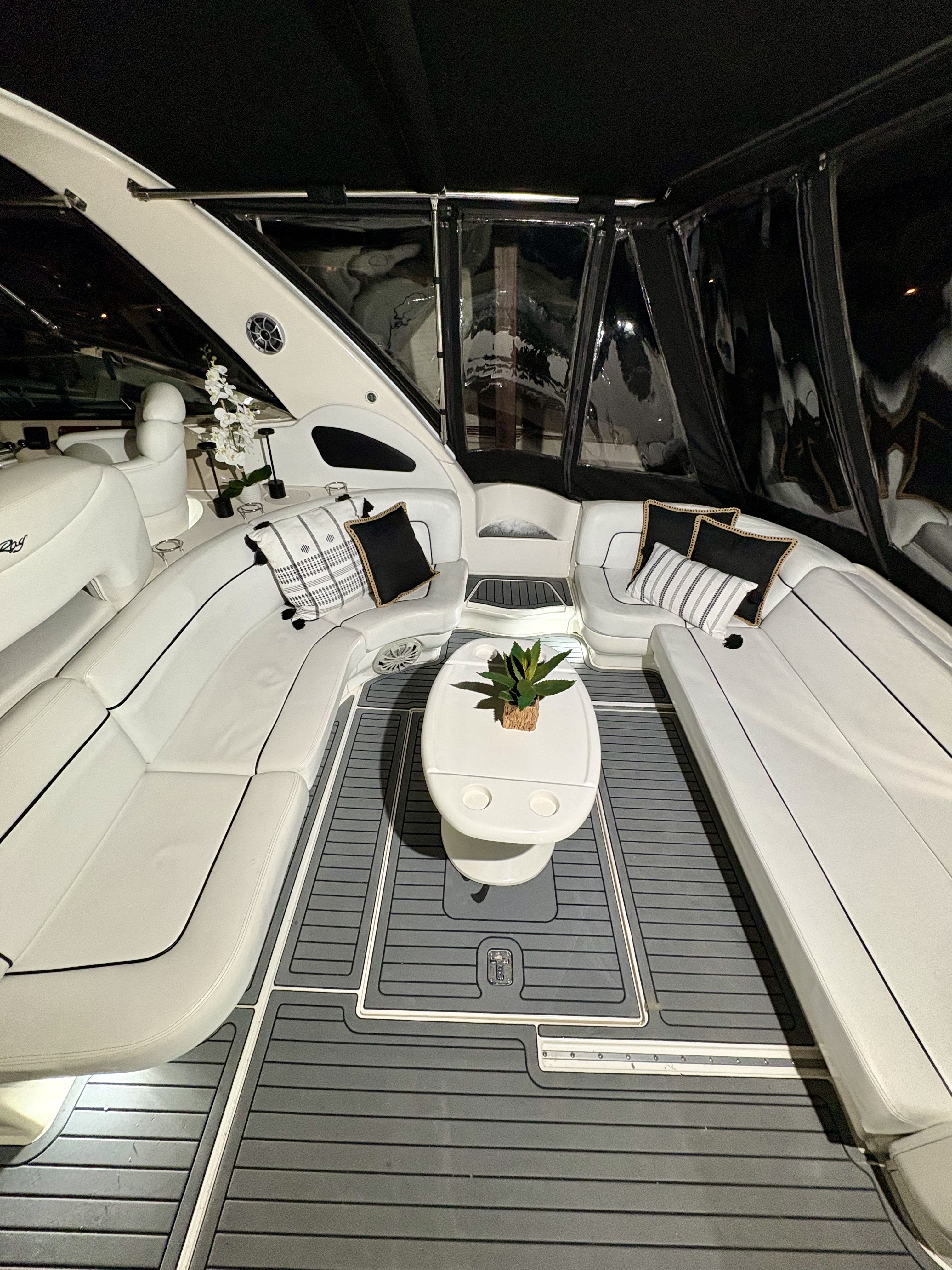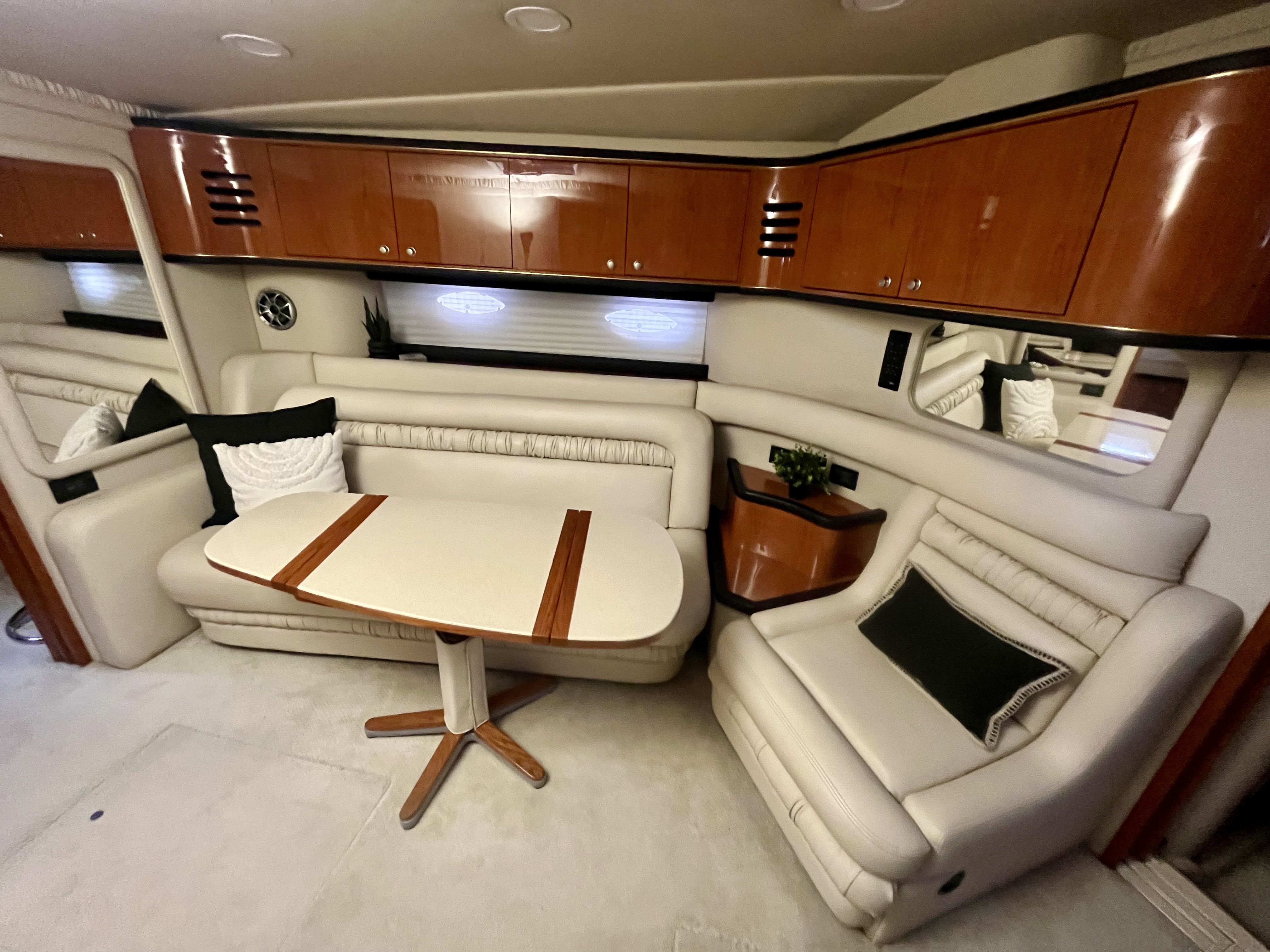 This 1999 Sea Ray 460 Sundancer is powered by the desirable twin Cummins 6CTA 8.3L diesels. The Cummins inline-six, low-RPM engines are known for smooth, confidence-inspiring performance and a more relaxed operating character underway. Compared with higher-rev alternatives commonly found on the market, the Cummins setup delivers a deeper, more yacht-like tone and excellent service access, which is why many buyers specifically seek out the Cummins-powered 460 Sundancers. This vessel presents in above average overall condition with a clean, detailed interior and strong mechanical spaces. Notable recent improvements include a modernized helm featuring an upgraded dash, steering wheel, gauges and lever controls, new batteries, updated lighting throughout to bright LED, brand new mattress, upgraded modern light switches covers, upgraded galley cabinet hardware, a new fridge and new main air conditioner. The canvas windows have all just been replaced. Recent exterior improvements include a new anchor, new shore power cable, underwater lights, solar panels repositioned to the canvas using magnets, and the davit system is currently removed but is also included making this vessel a true turn key package. With all the right options and upgrades, and exuding pride of ownership, this is a unique opportunity to acquire a truly exceptional example of the Sea Ray Sundancer 460.