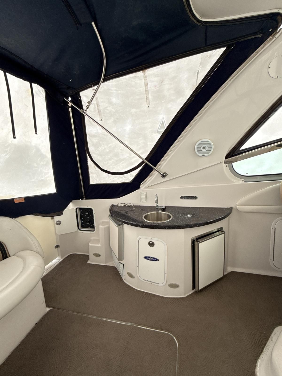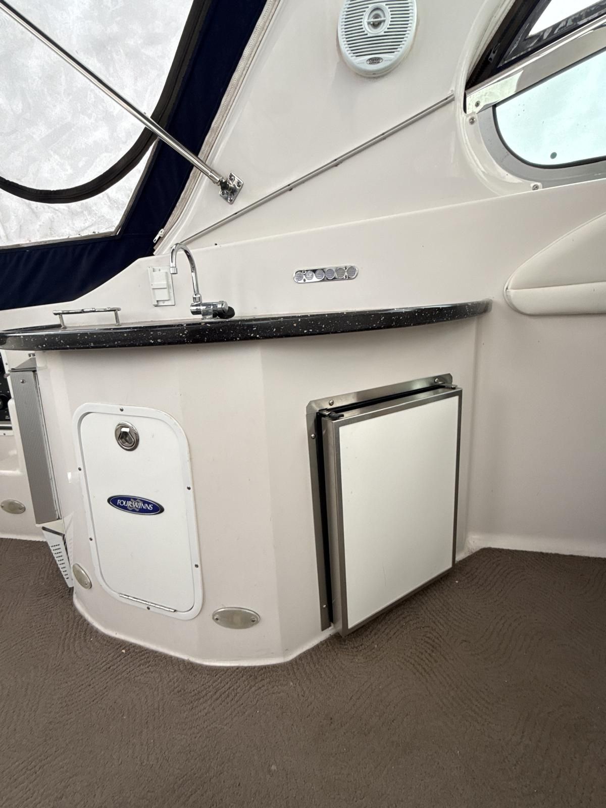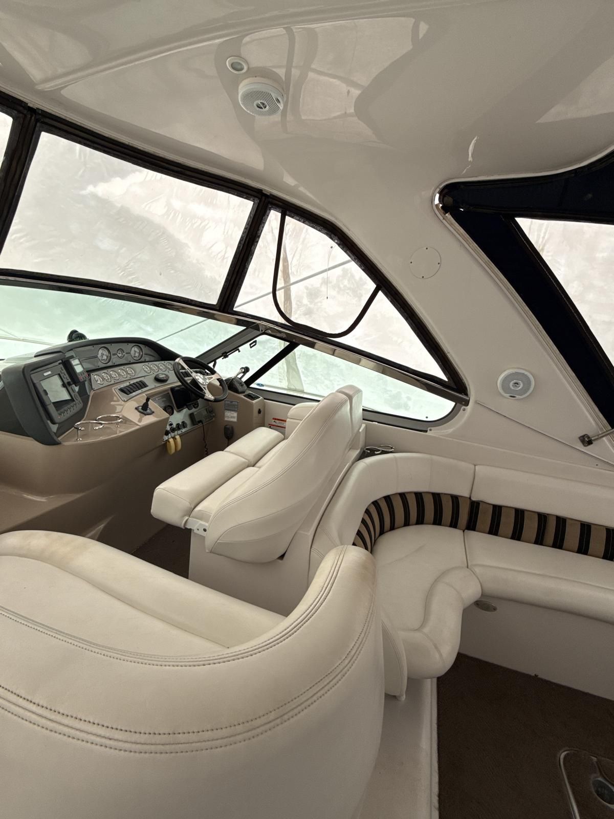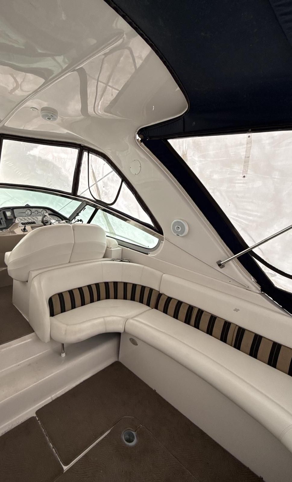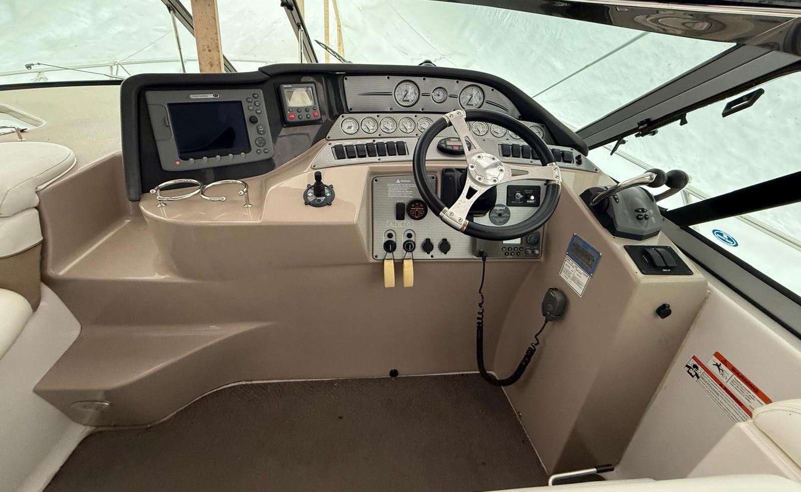 Look out for this sleek Four Winns 378 Vista, a stylish express cruiser that turns heads at the dock and delivers a smooth, confident ride. With her wide beam and deep-V hull, she offers excellent performance while providing a spacious cockpit and comfortable cabin designed for entertaining and extended weekends on the water. This vessel has been very well maintained by an exceptionally meticulous owner. The interior presents beautifully and feels far newer than the model year, with minimal use of the head. The boat has recently been polished and detailed, and with its many features and updates, the next owner could easily have this cruiser feeling like a near-new boat.