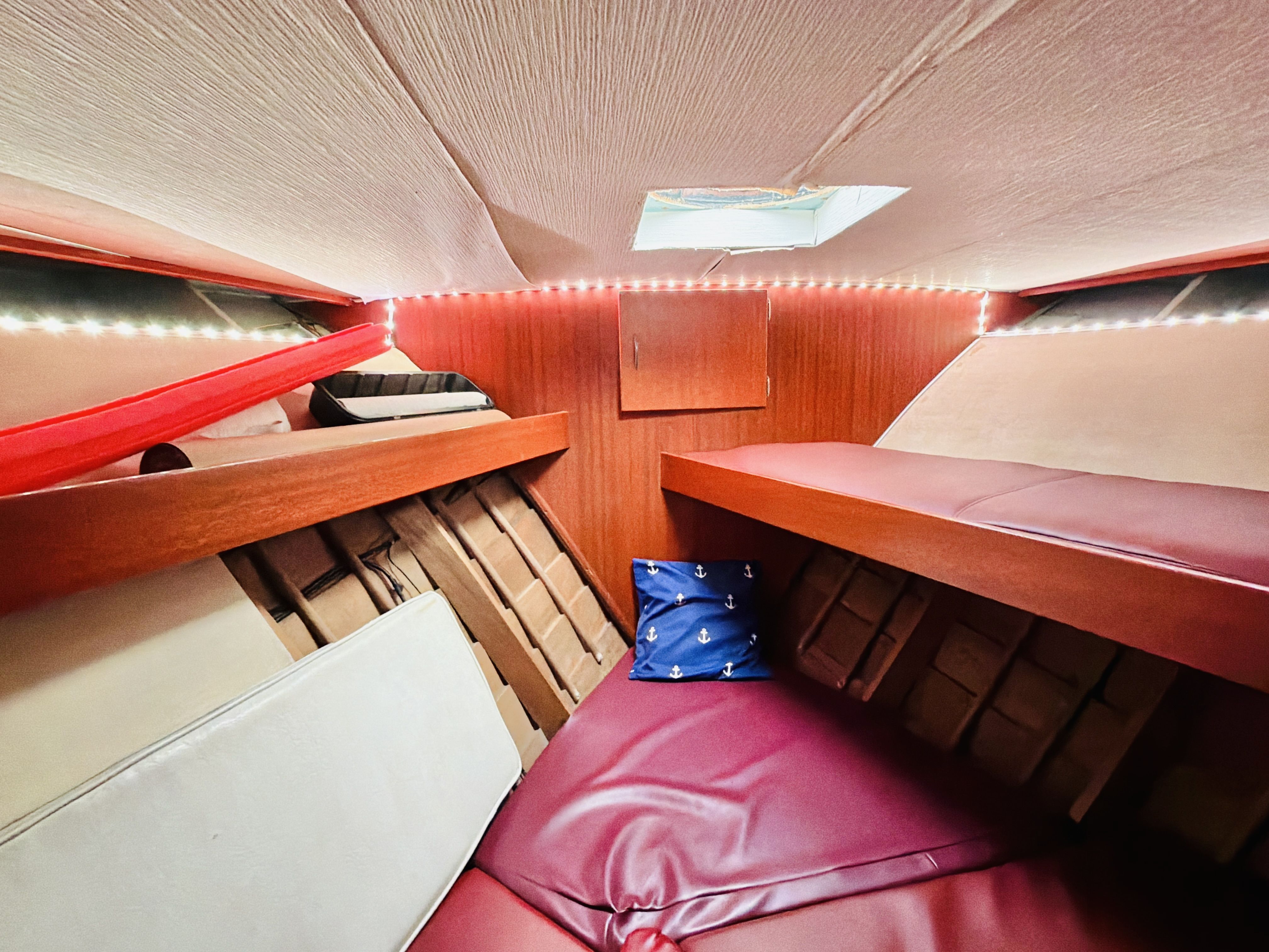 Forward cabin with upper/lower berths and storage