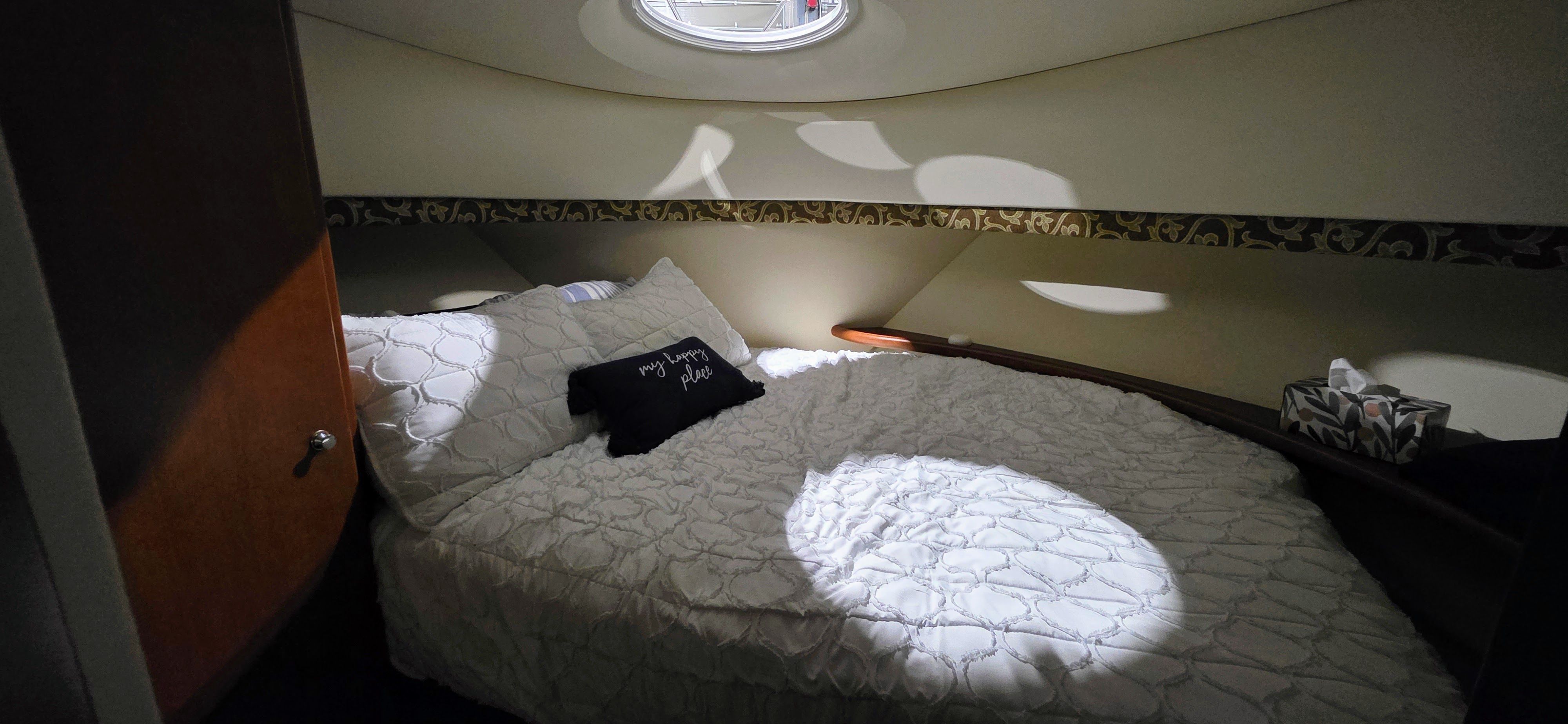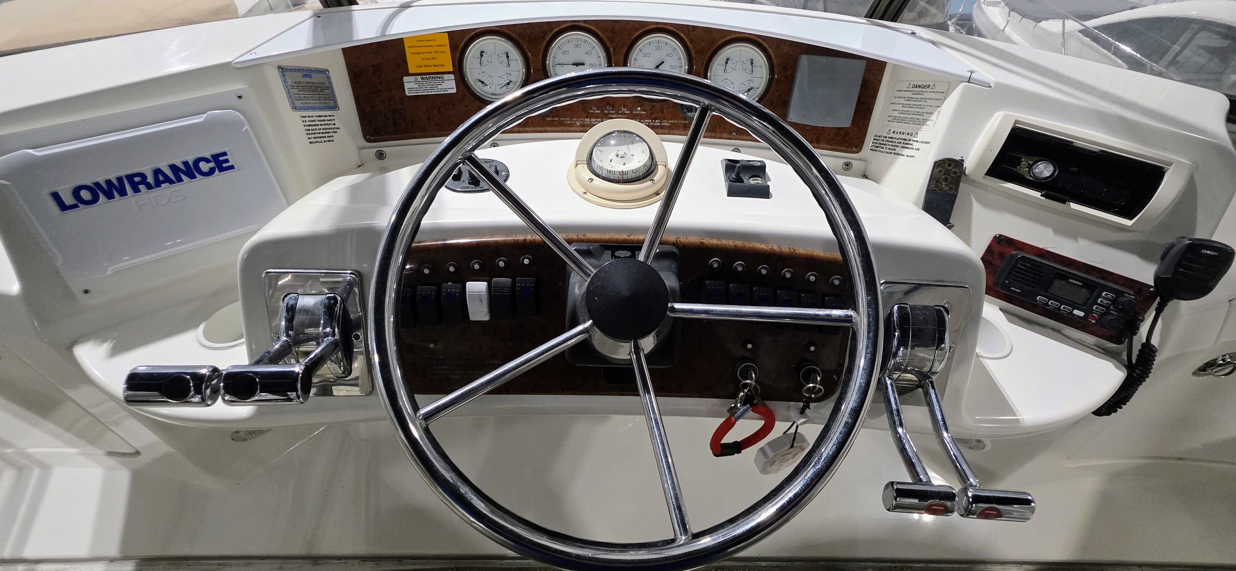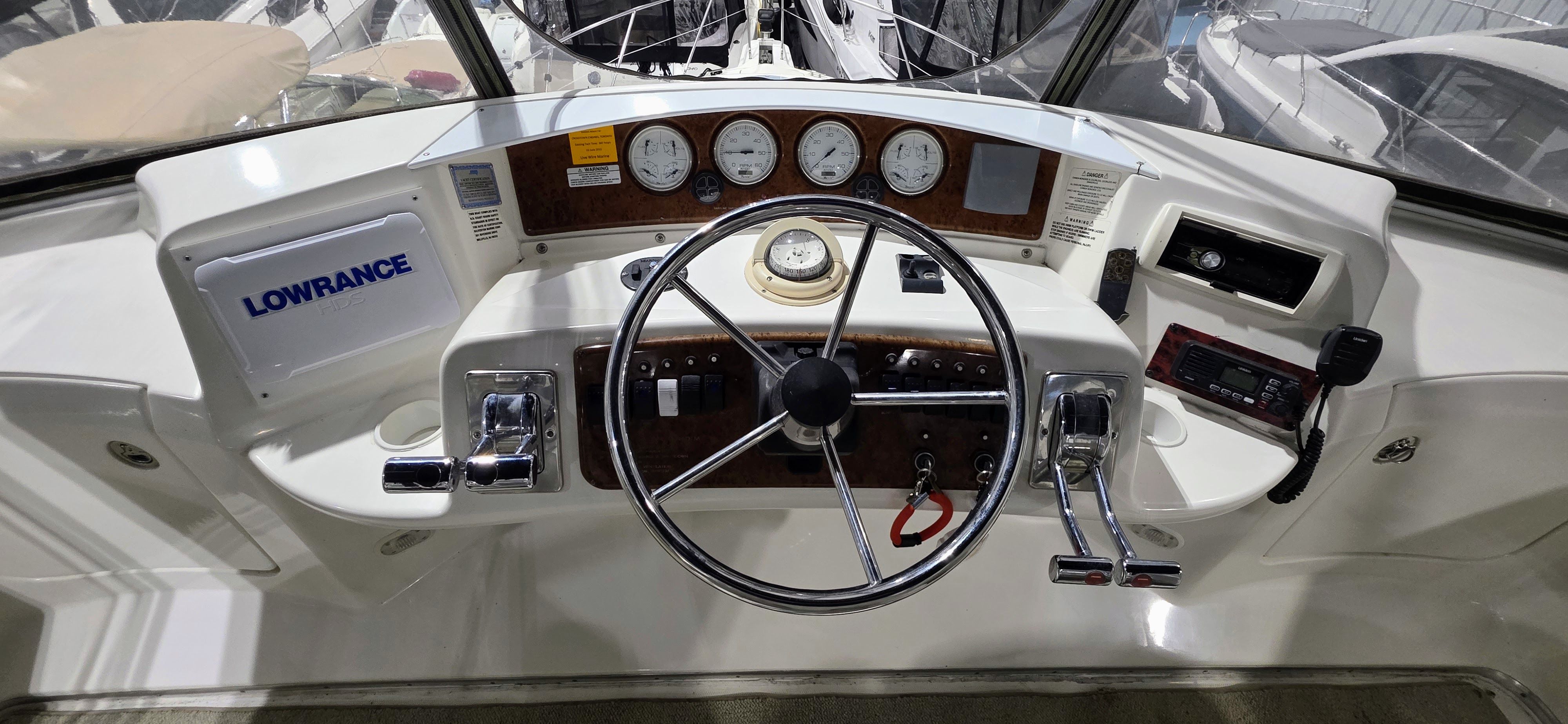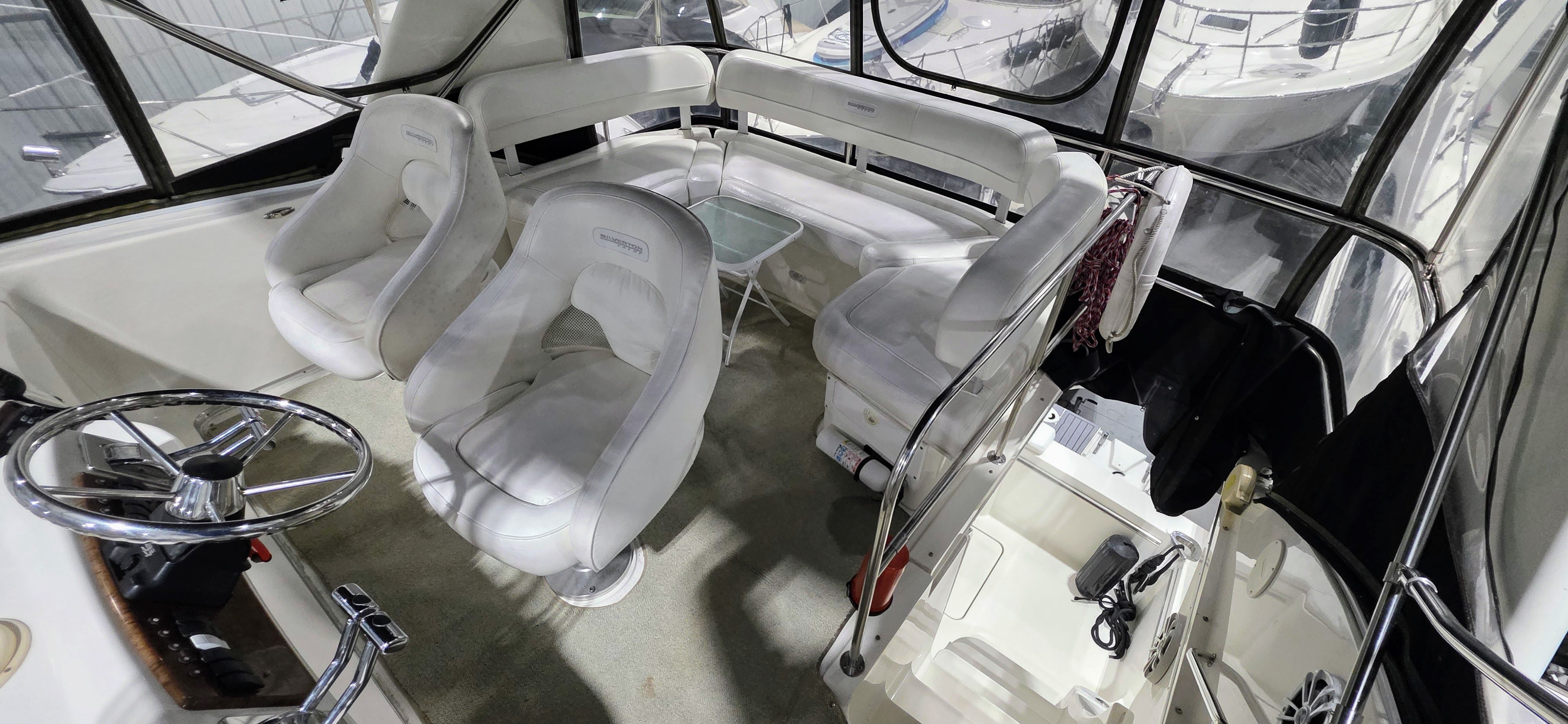 This 2005 Silverton 34 Convertible is a straightforward, easy-to-run flybridge cruiser with twin inboard power and a layout that makes weekends aboard comfortable. The salon feels open and bright thanks to large windows, the galley is well positioned for entertaining, and the split head with separate shower is a feature not commonly found in boats this size. The cockpit remains open and functional, giving owners plenty of flexibility for cruising or fishing.