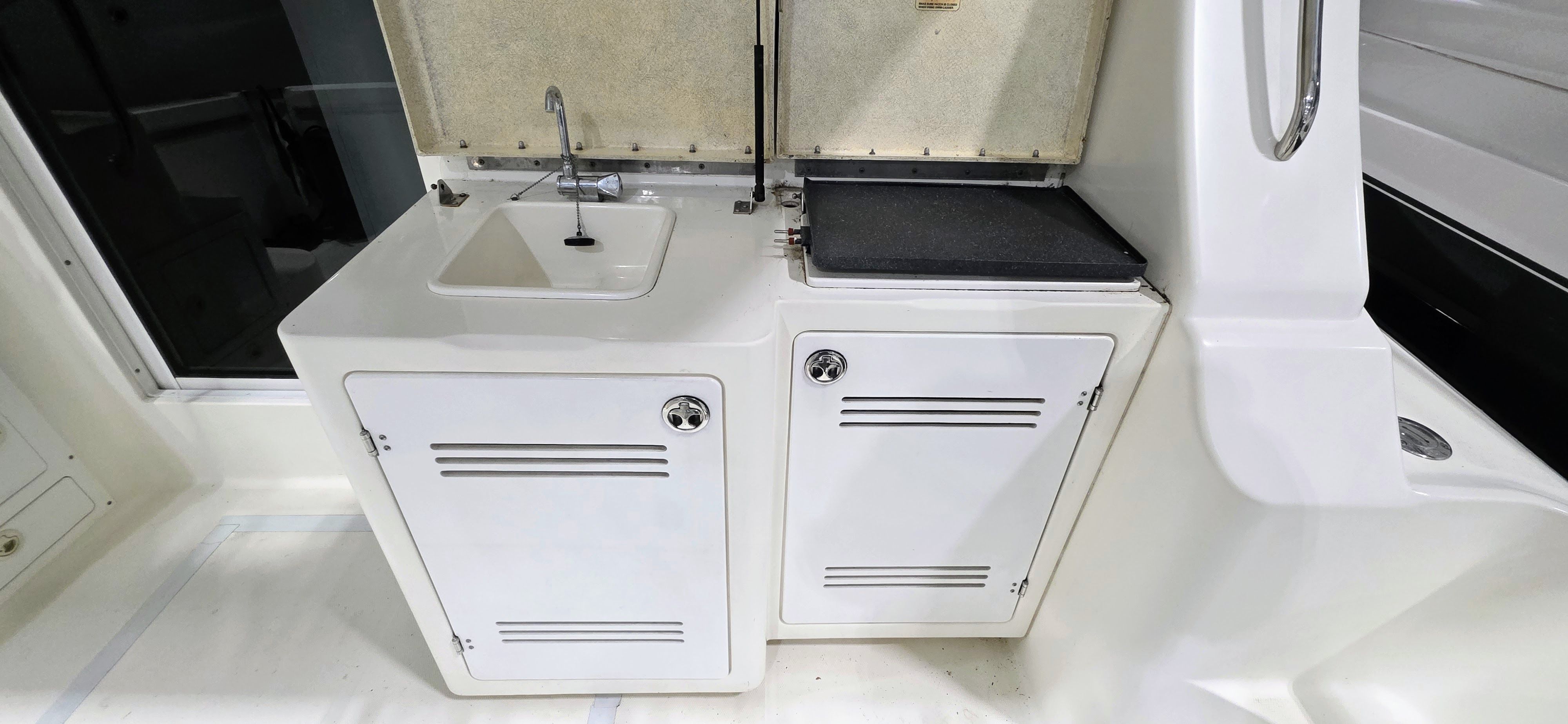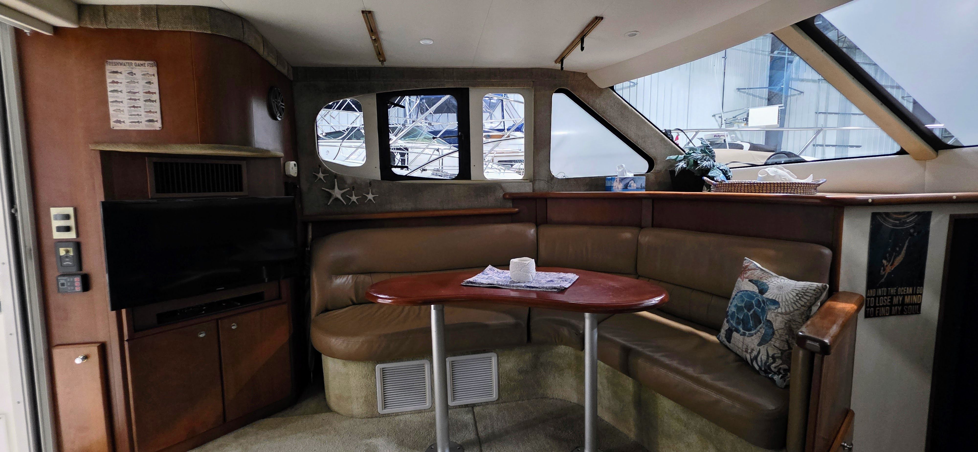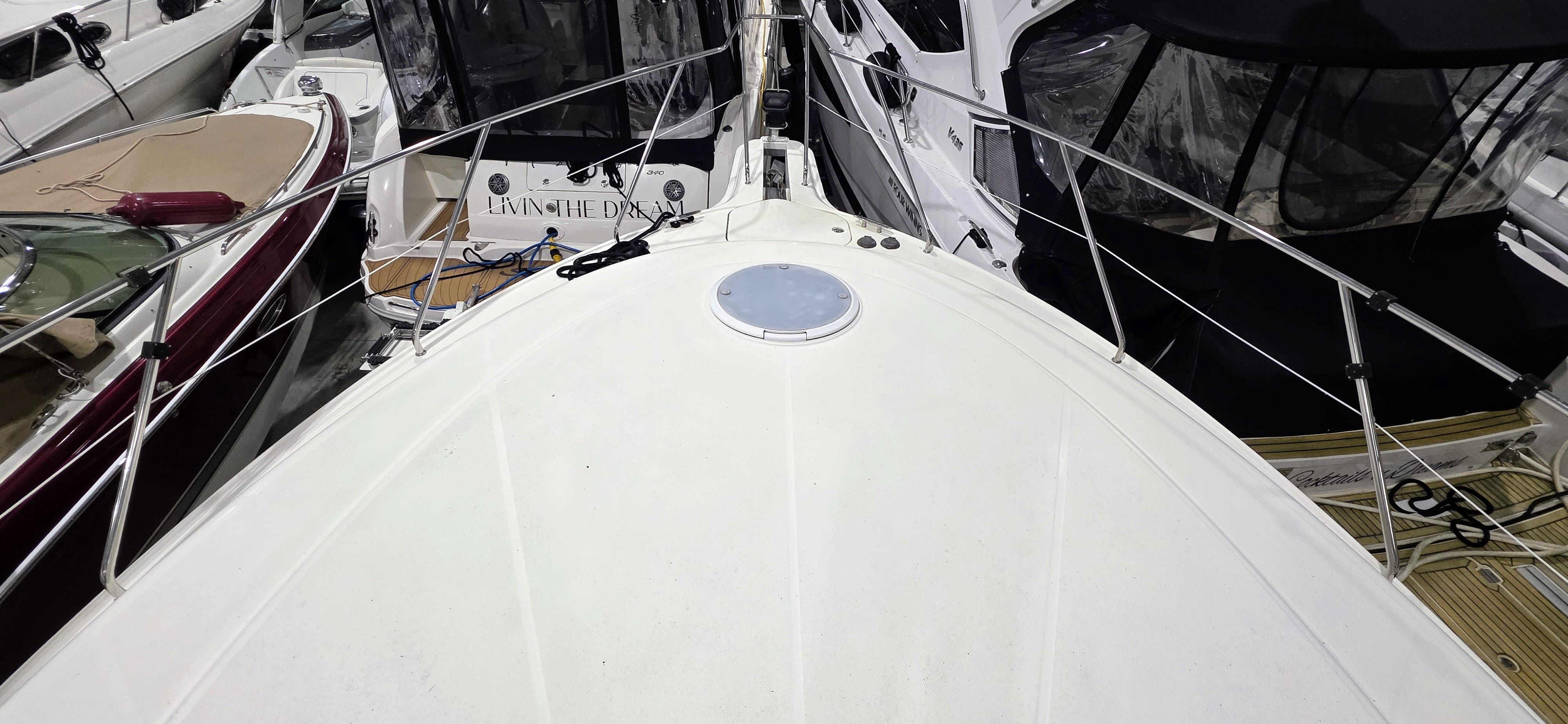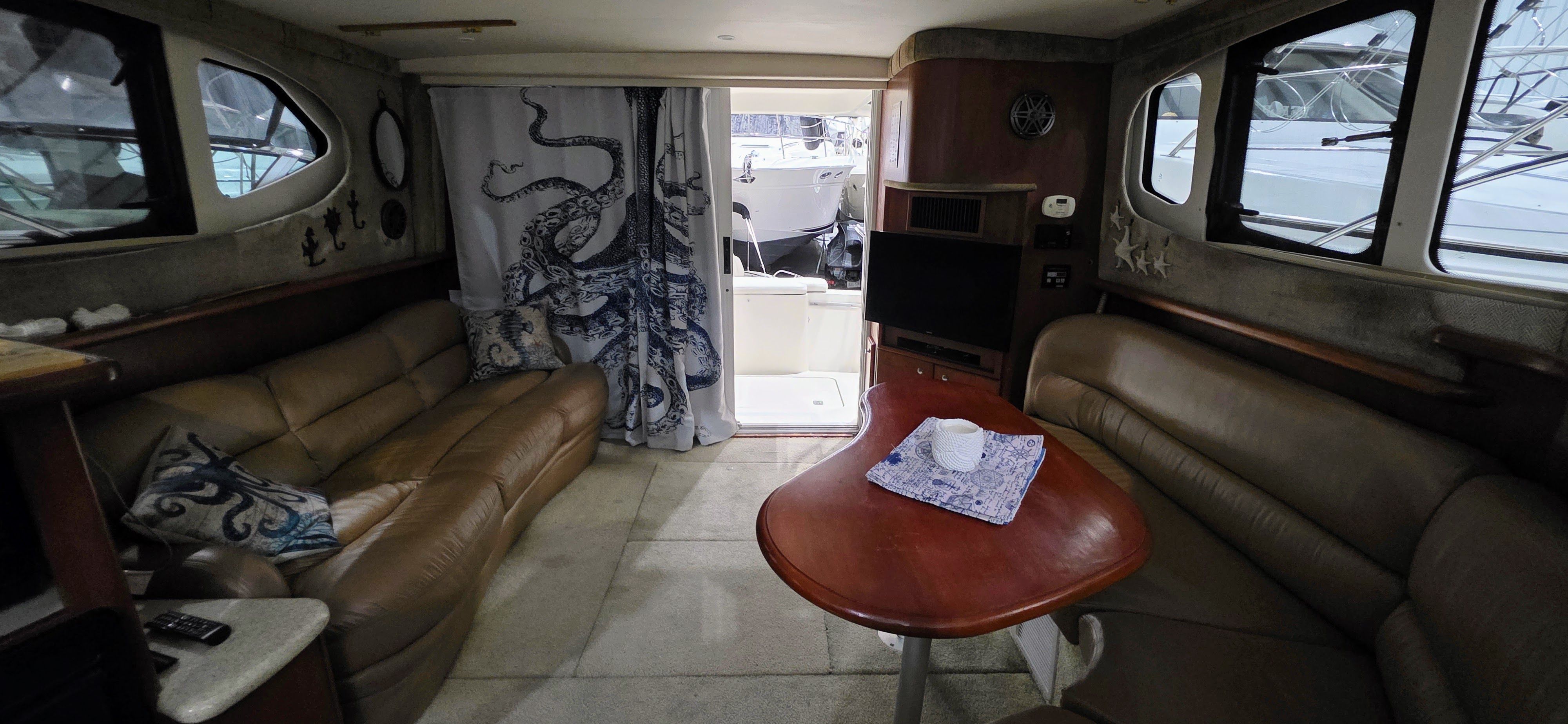This 2005 Silverton 34 Convertible is a straightforward, easy-to-run flybridge cruiser with twin inboard power and a layout that makes weekends aboard comfortable. The salon feels open and bright thanks to large windows, the galley is well positioned for entertaining, and the split head with separate shower is a feature not commonly found in boats this size. The cockpit remains open and functional, giving owners plenty of flexibility for cruising or fishing.