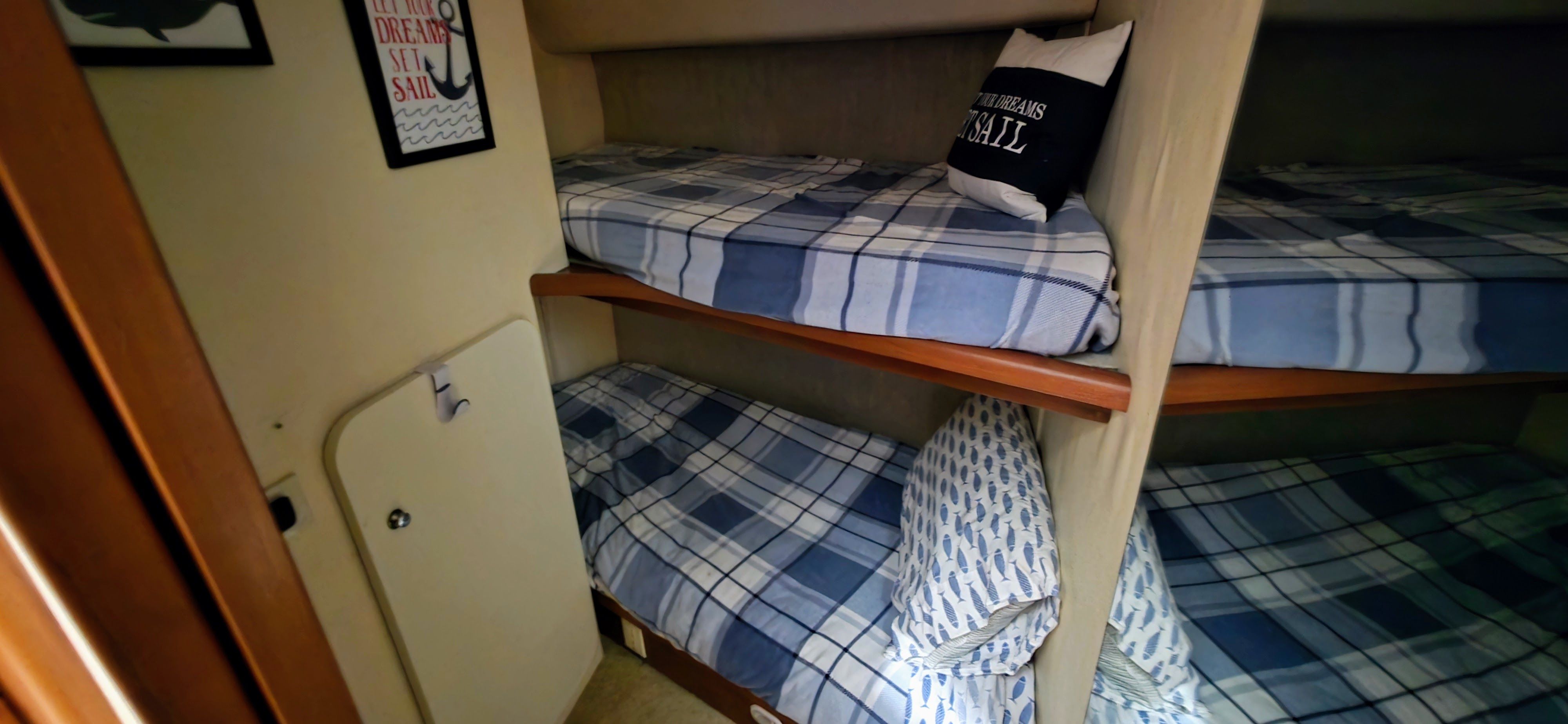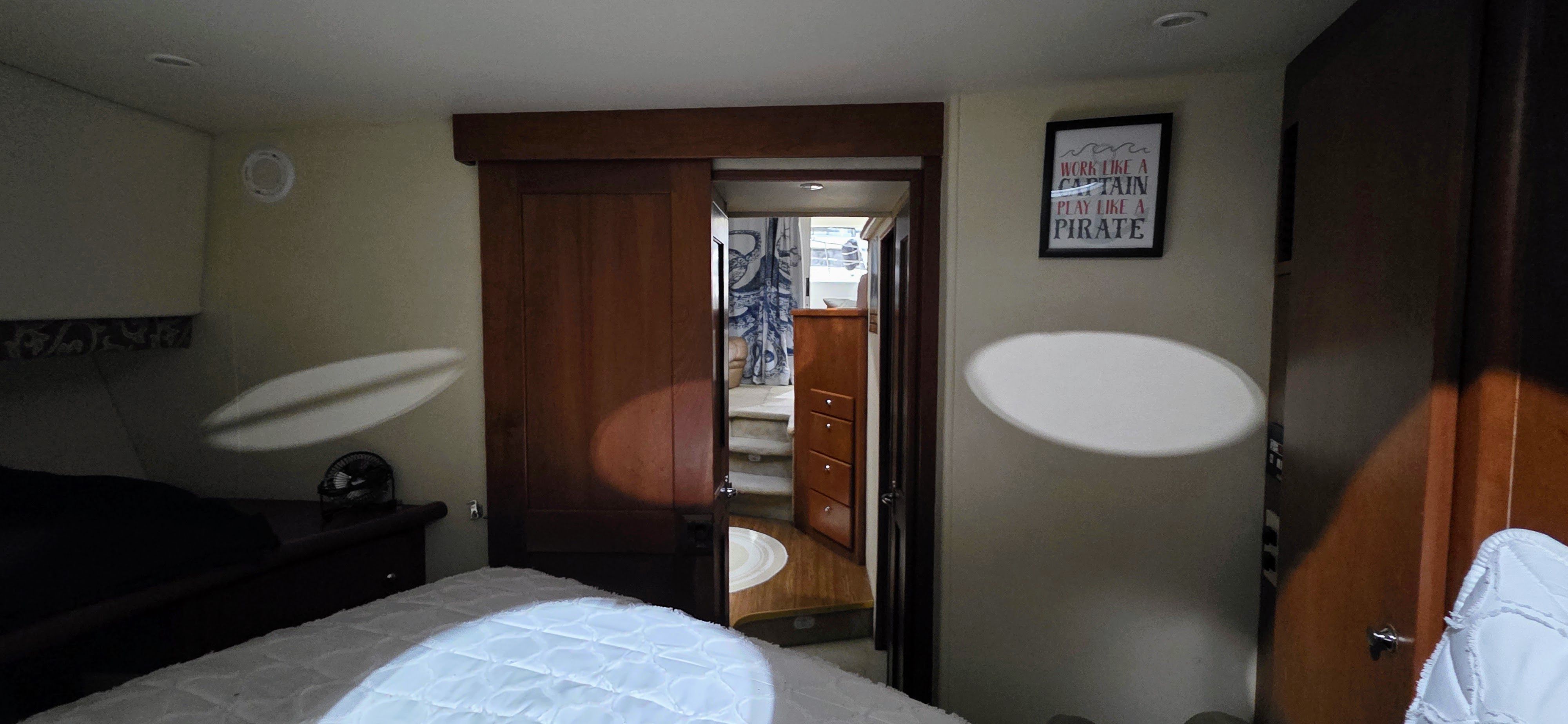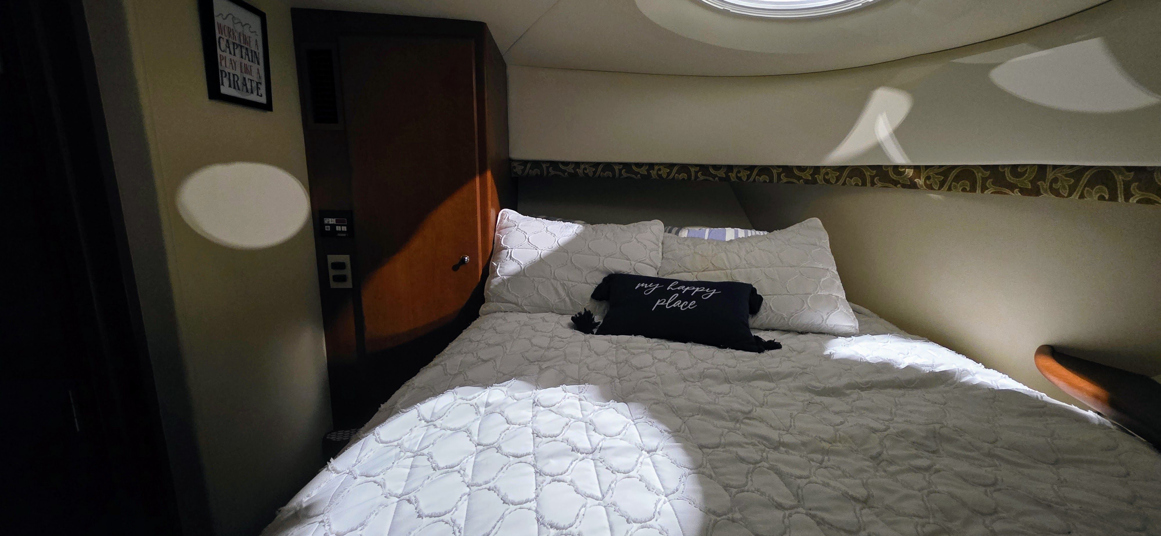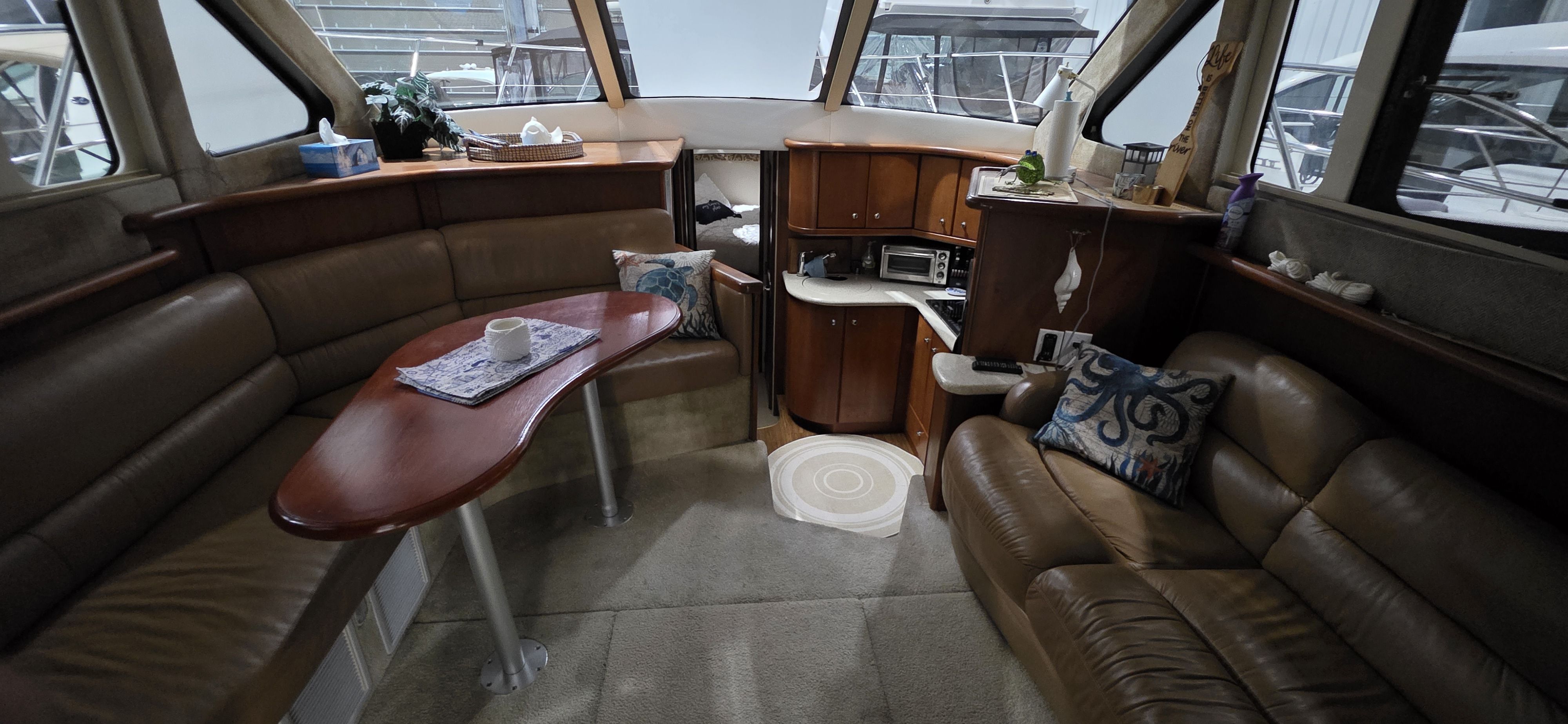 This 2005 Silverton 34 Convertible is a straightforward, easy-to-run flybridge cruiser with twin inboard power and a layout that makes weekends aboard comfortable. The salon feels open and bright thanks to large windows, the galley is well positioned for entertaining, and the split head with separate shower is a feature not commonly found in boats this size. The cockpit remains open and functional, giving owners plenty of flexibility for cruising or fishing.