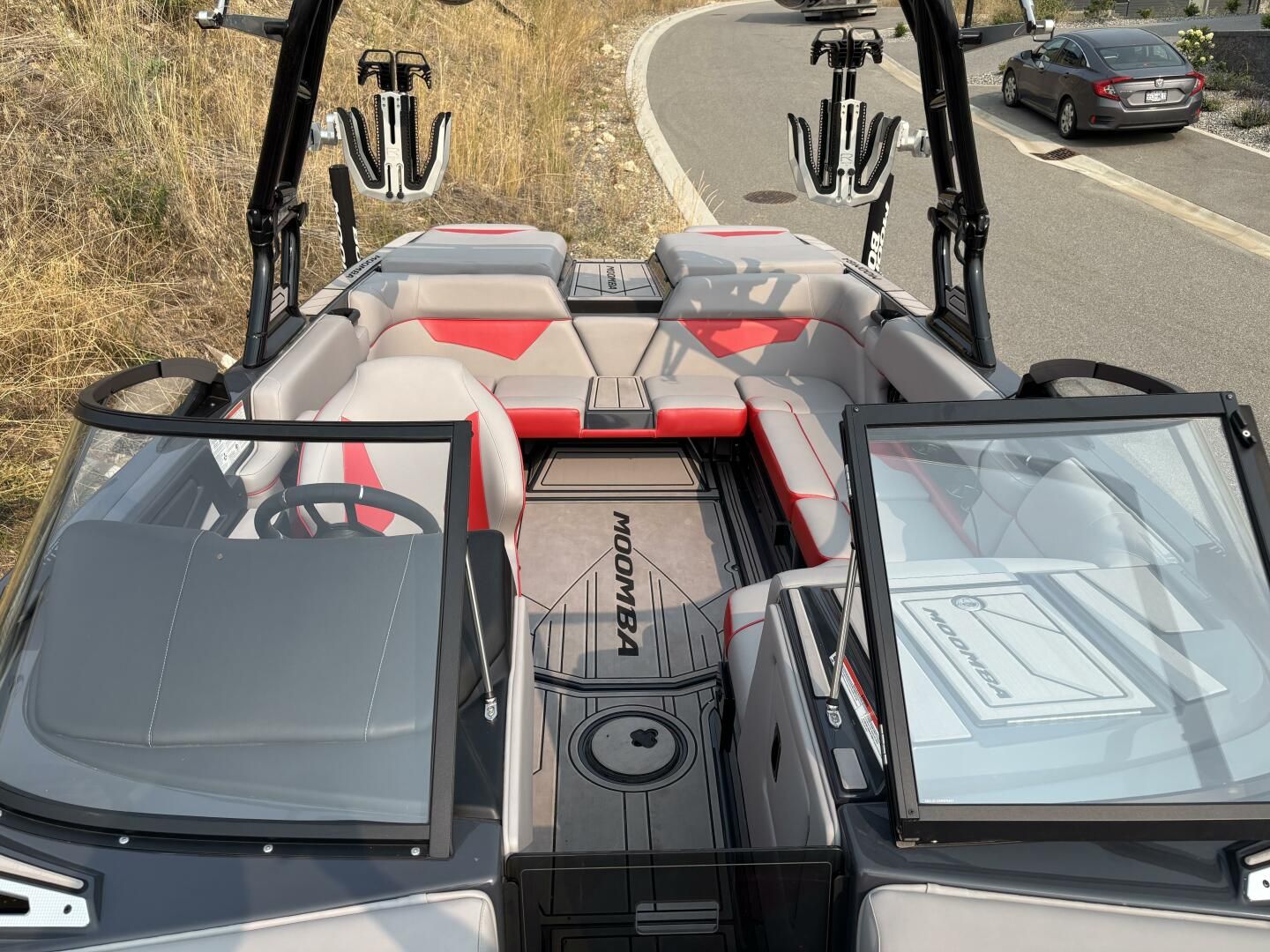 The 2023 Moomba Kaiyen is a striking 21’ surf and wake boat that combines cutting-edge performance with everyday reliability, making it the ideal choice for riders and families alike. Powered by the Indmar Ford Raptor 6.2L V8, it delivers smooth, responsive power, while Moomba’s AutoWake® multi-sensor technology and 3,700 lb G6 ballast system ensure consistent, customizable wakes for every skill level. With the Flow Surf System, the Kaiyen produces long, clean surf waves that can be dialed in for both beginners and seasoned riders.