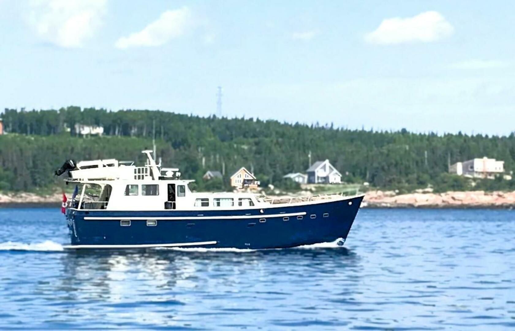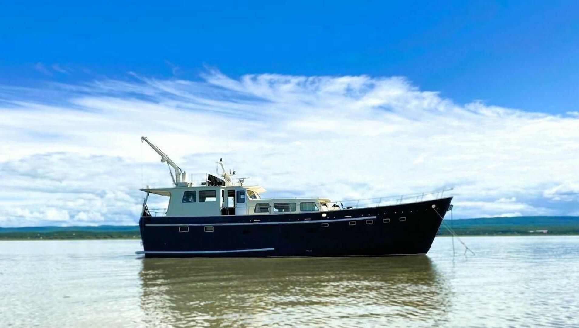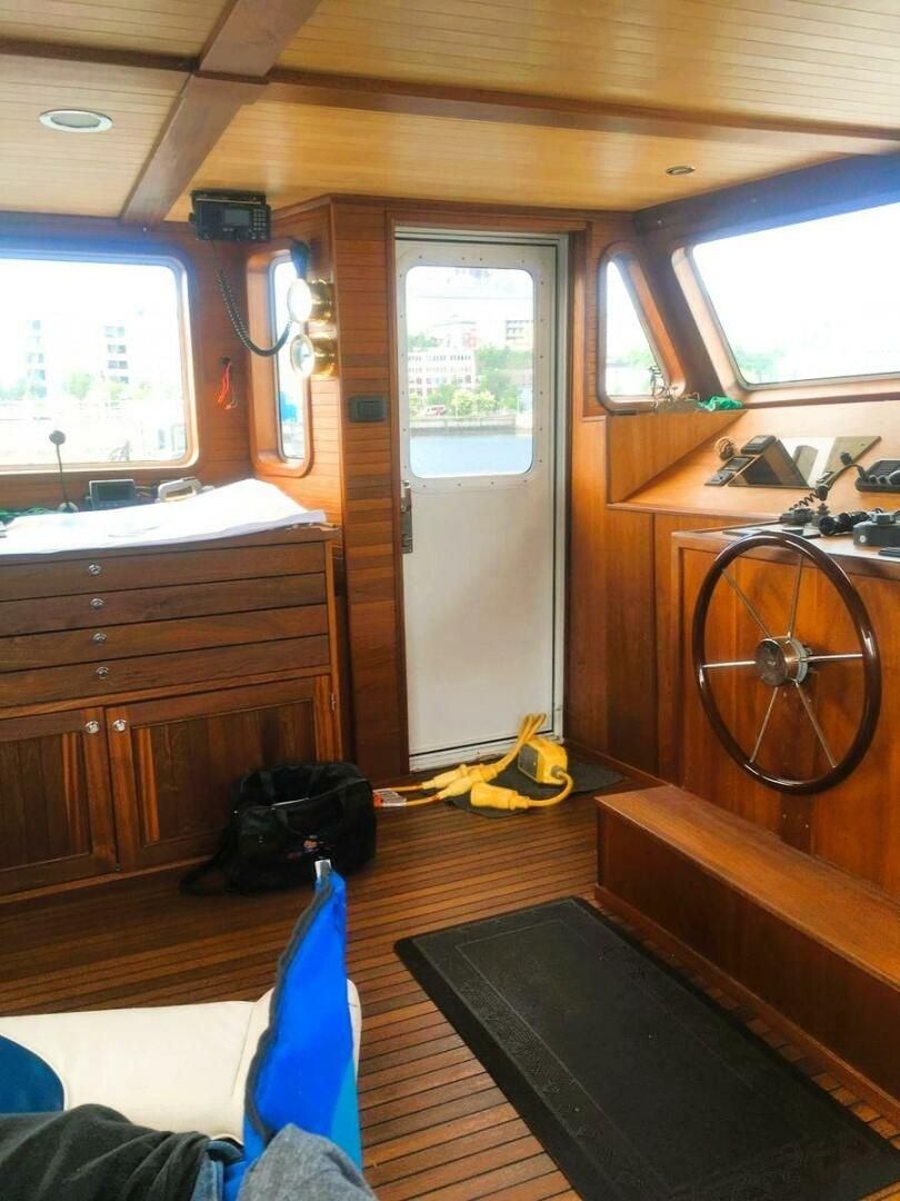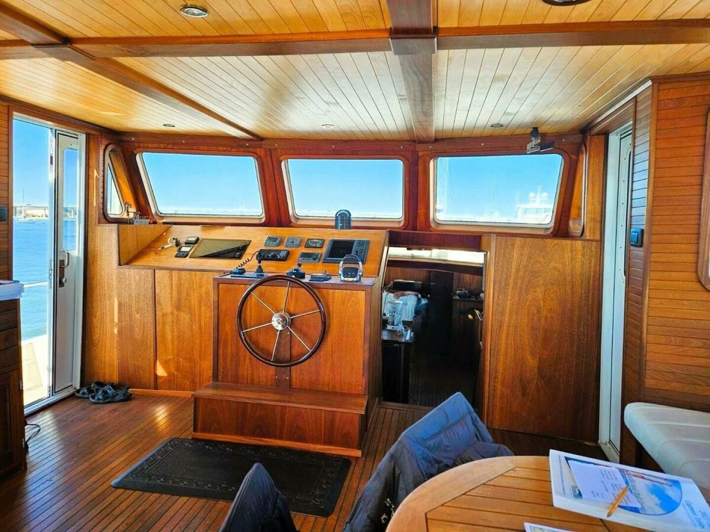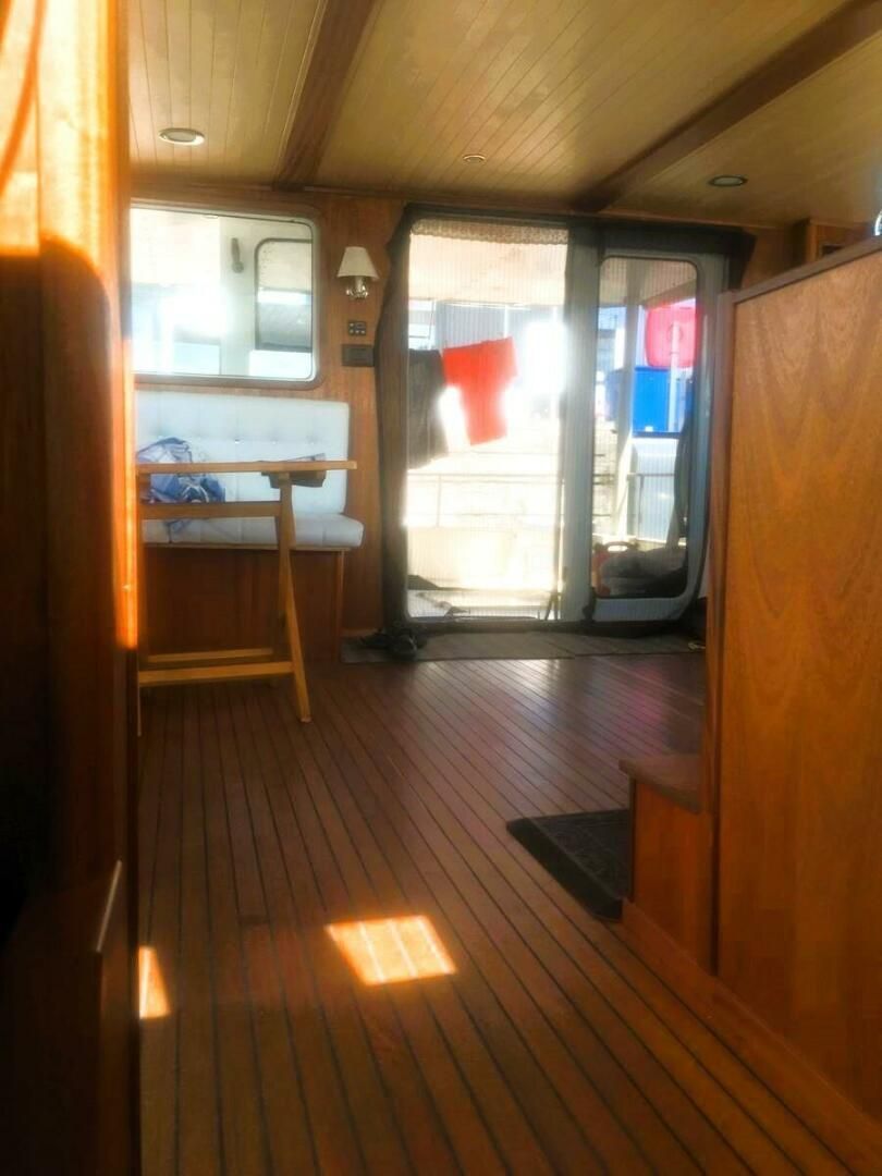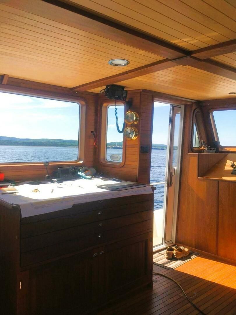 This aluminum trawler was originally built by designer John Stubbs (1971) in a canadian shipyard, KITHY-P purchased in 2004 by it's current owner was completely custom rebuilt and refitted in 2017 and is ready to go again at sea. Nice sheltered aft deck and a 20 ft long forward deck Incredible teak and mahogany wood craftsmanship inside. Well positioned wheelhouse with a true chart table for serious navigation