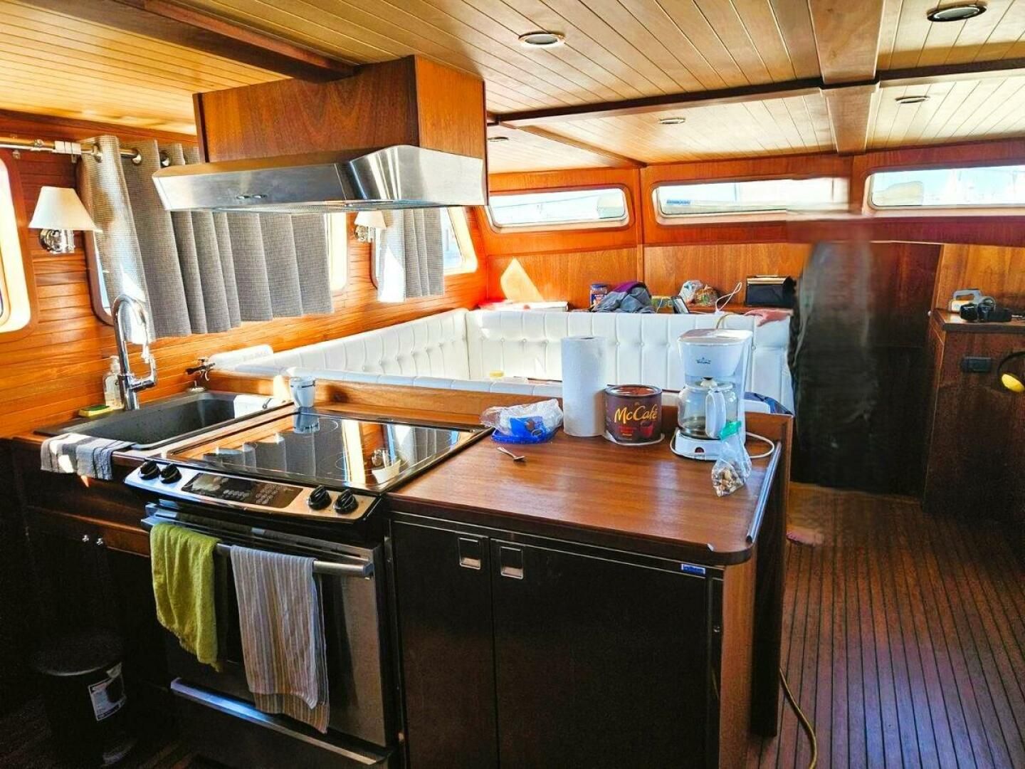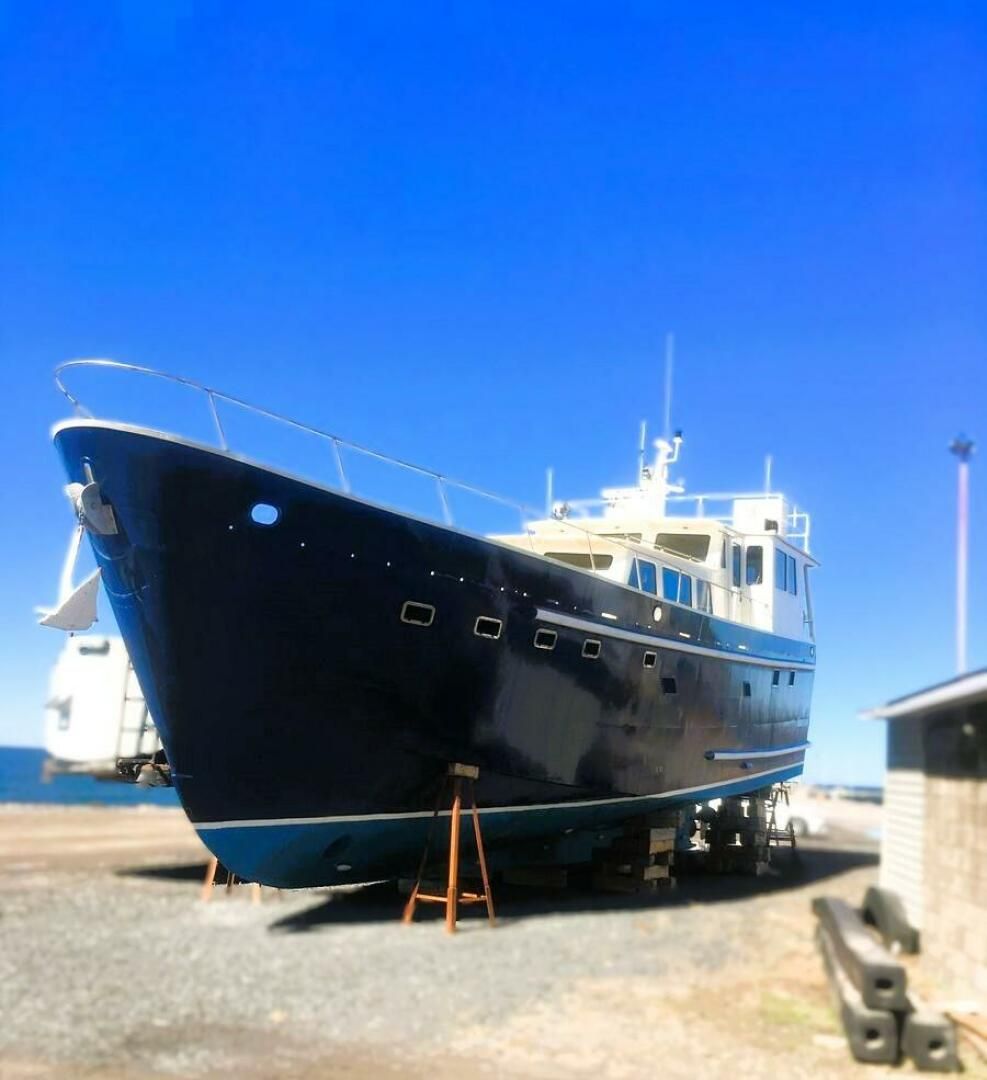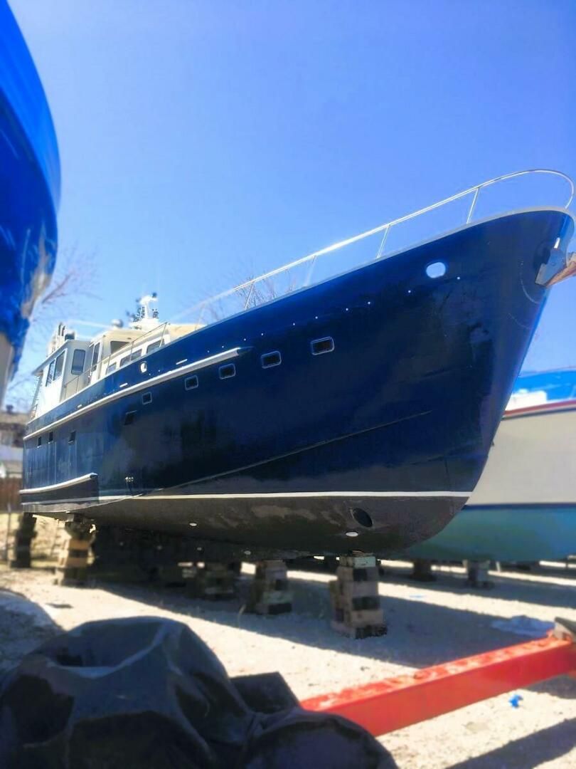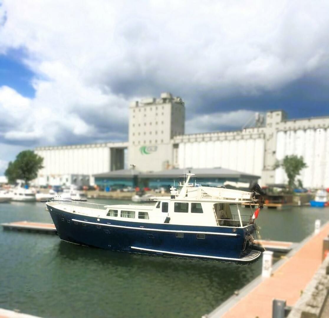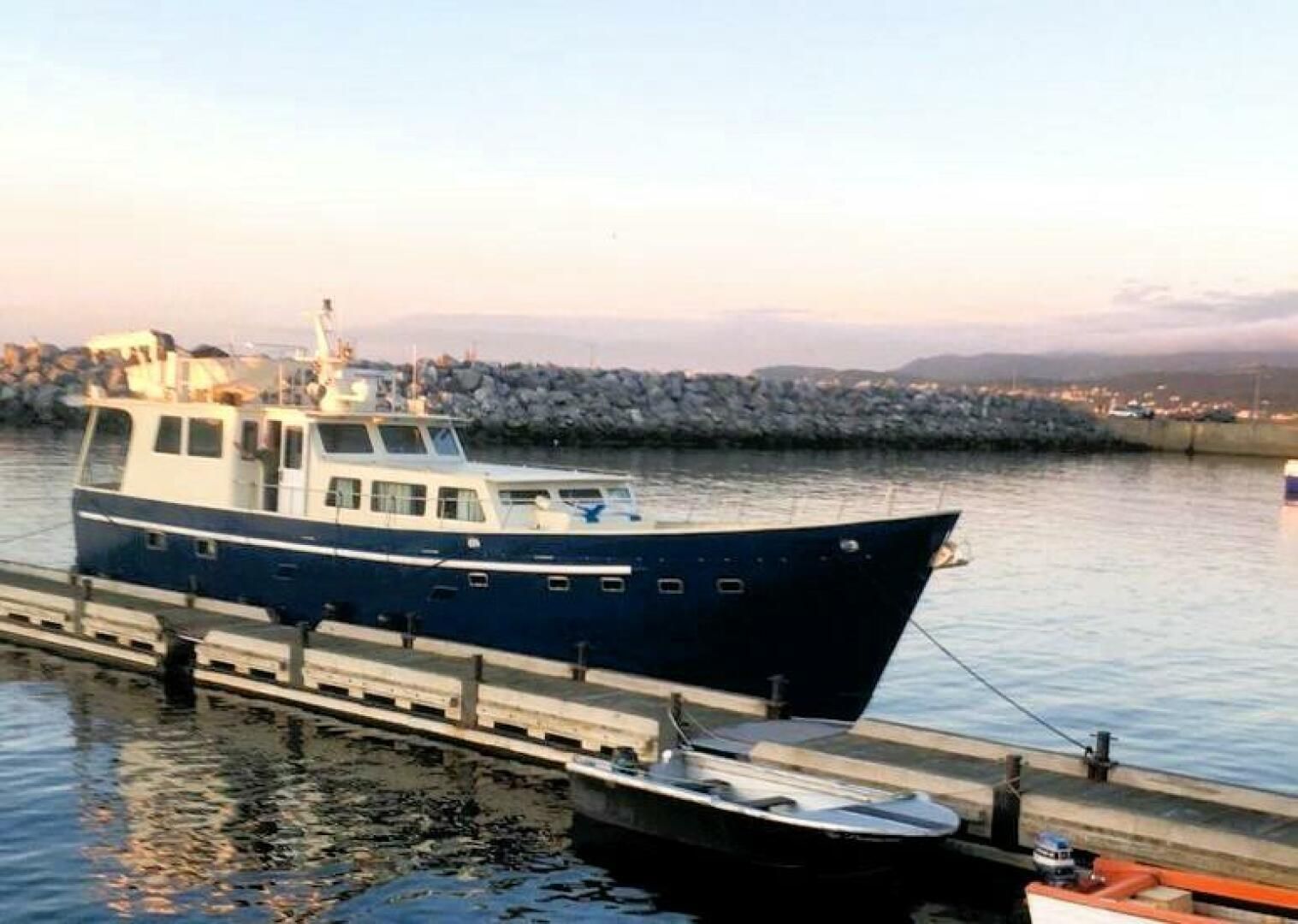 This aluminum trawler was originally built by designer John Stubbs (1971) in a canadian shipyard, KITHY-P purchased in 2004 by it's current owner was completely custom rebuilt and refitted in 2017 and is ready to go again at sea. Nice sheltered aft deck and a 20 ft long forward deck Incredible teak and mahogany wood craftsmanship inside. Well positioned wheelhouse with a true chart table for serious navigation