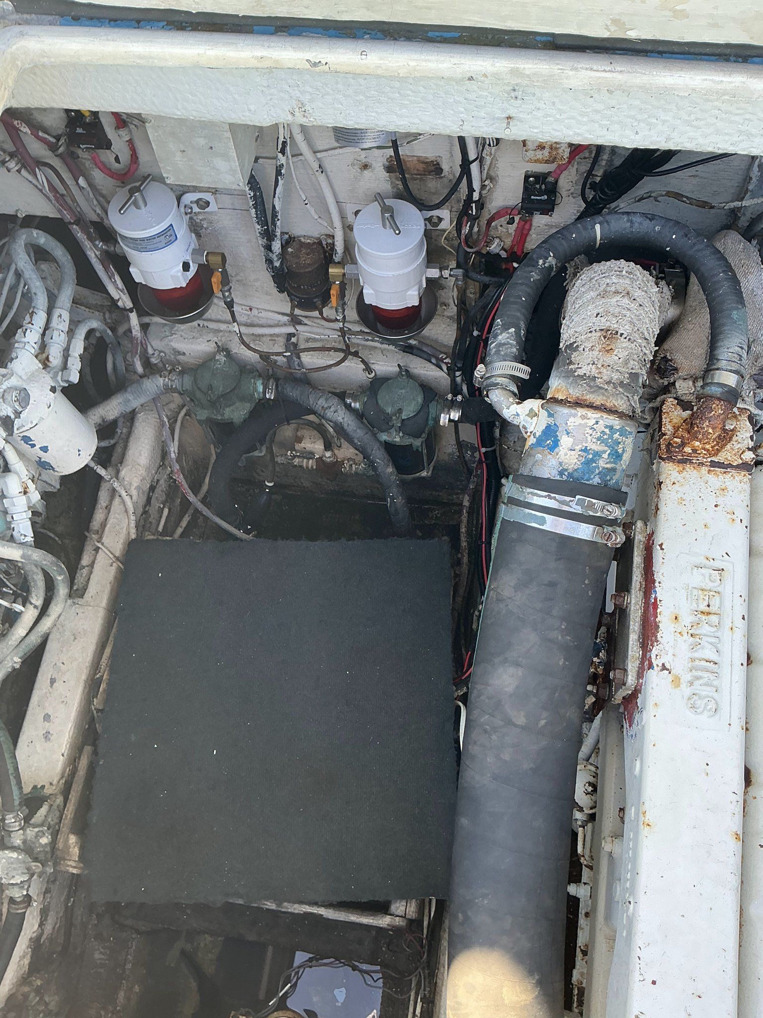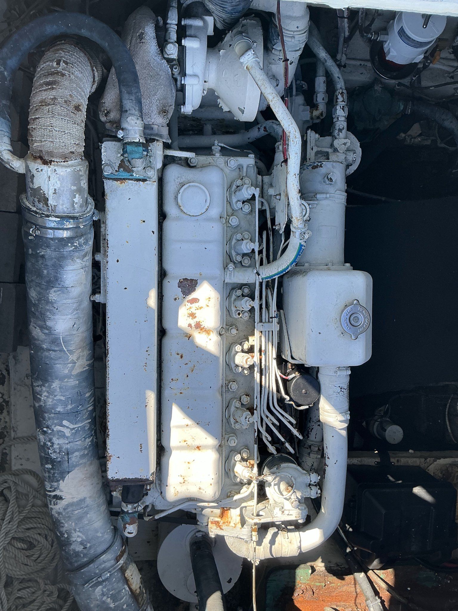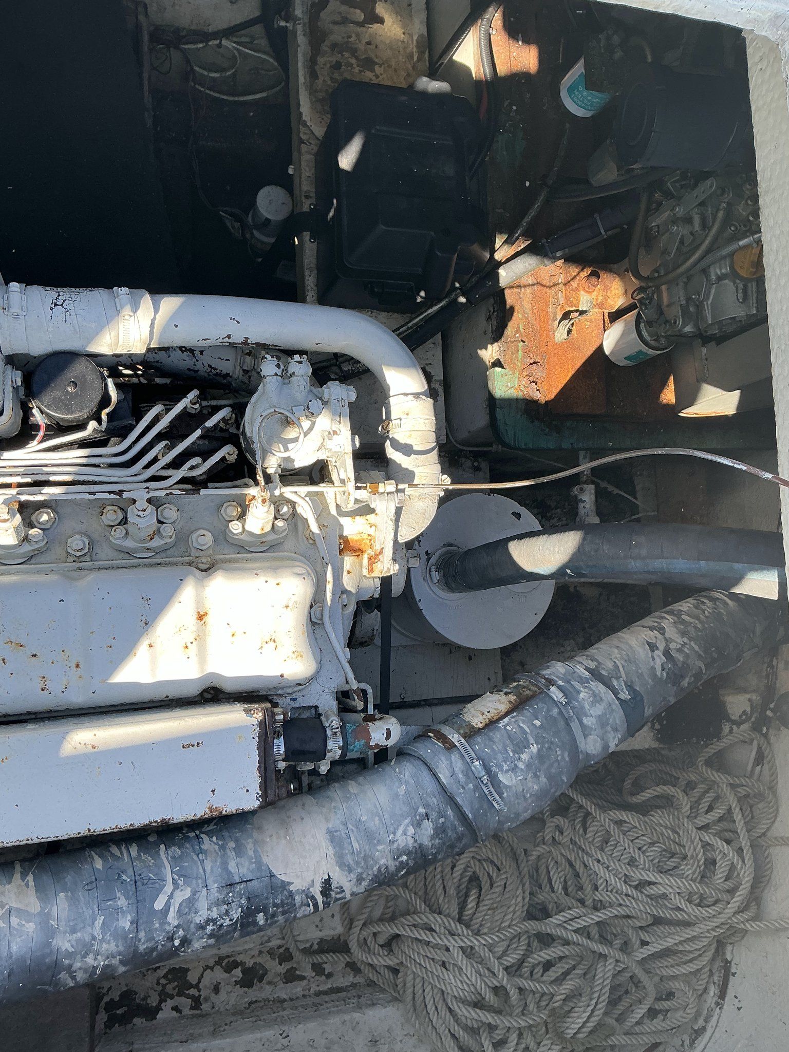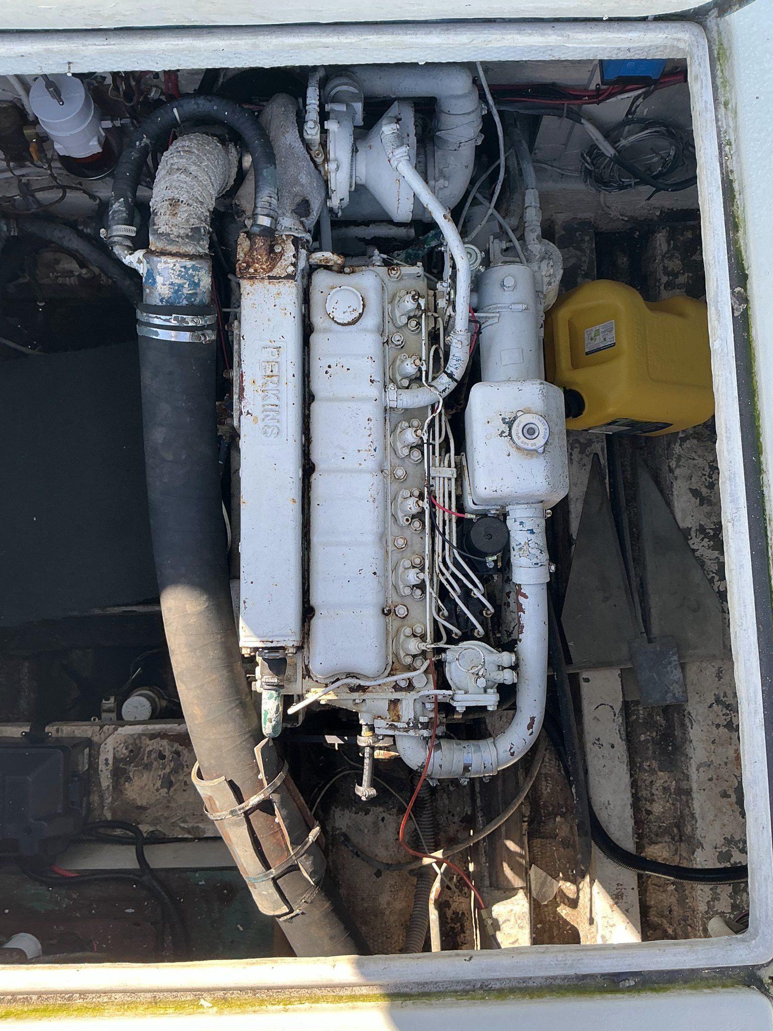 Whitcraft Hatteras models are equipped with twin inboard diesel engines, chosen for their durability, efficiency, and long service life. Turbocharged Perkins 6.354, 5.8 Liter, 6 in line cylinders with 160 engine horsepower.